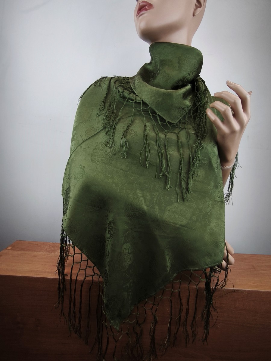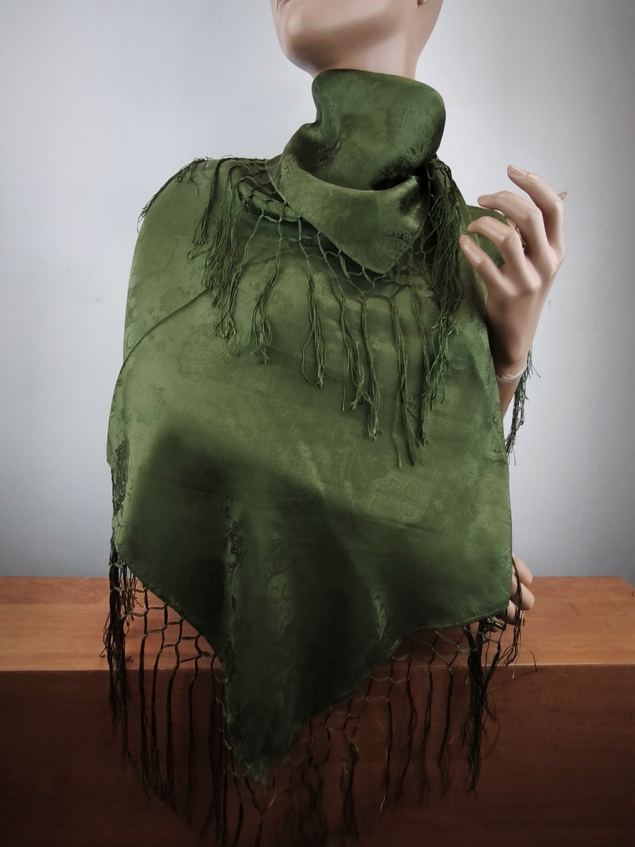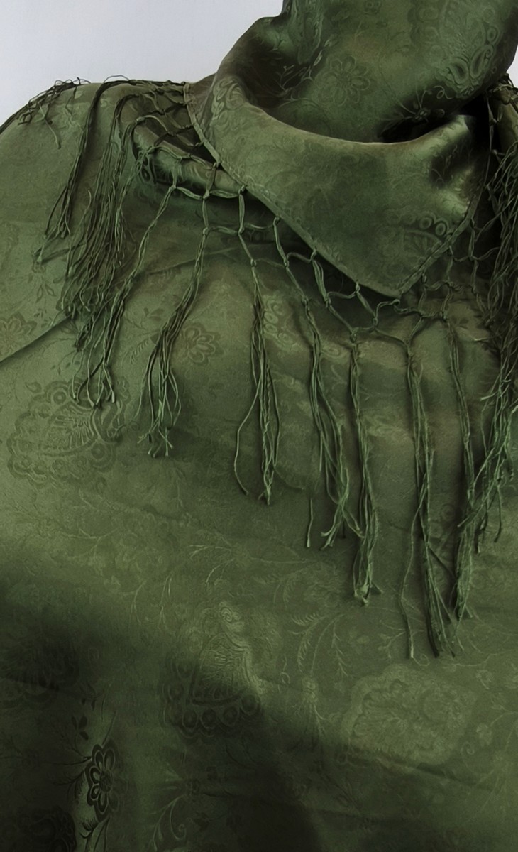 apaszka chustka jedwabna żakardowa z frędzlami 75x75 cm/ 003055 zieleń leśna