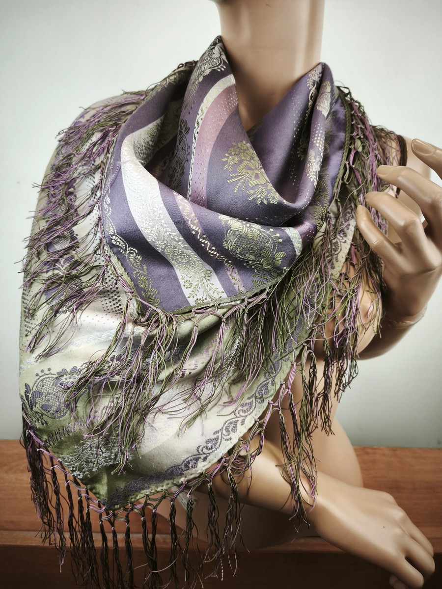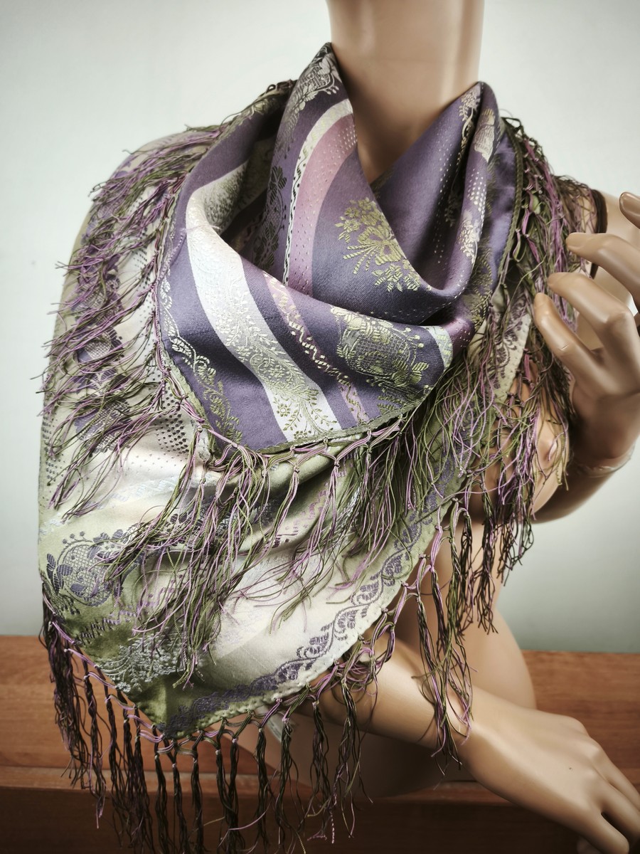 apaszka chustka jedwabna żakardowa z frędzlami 75x75 cm/ 0033040