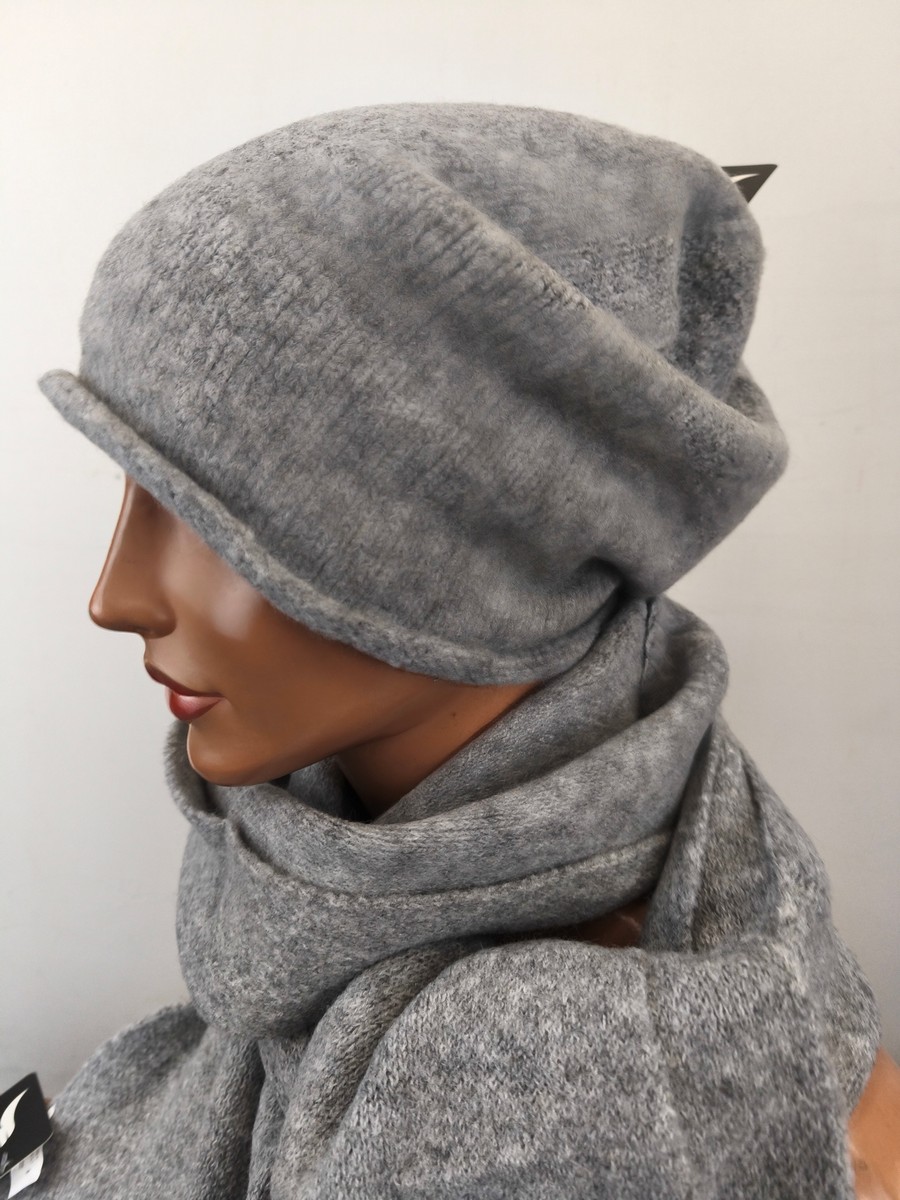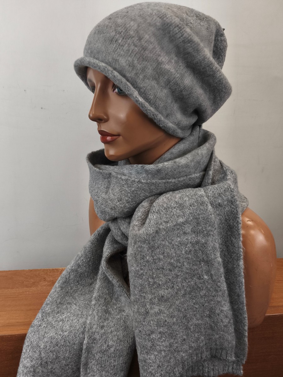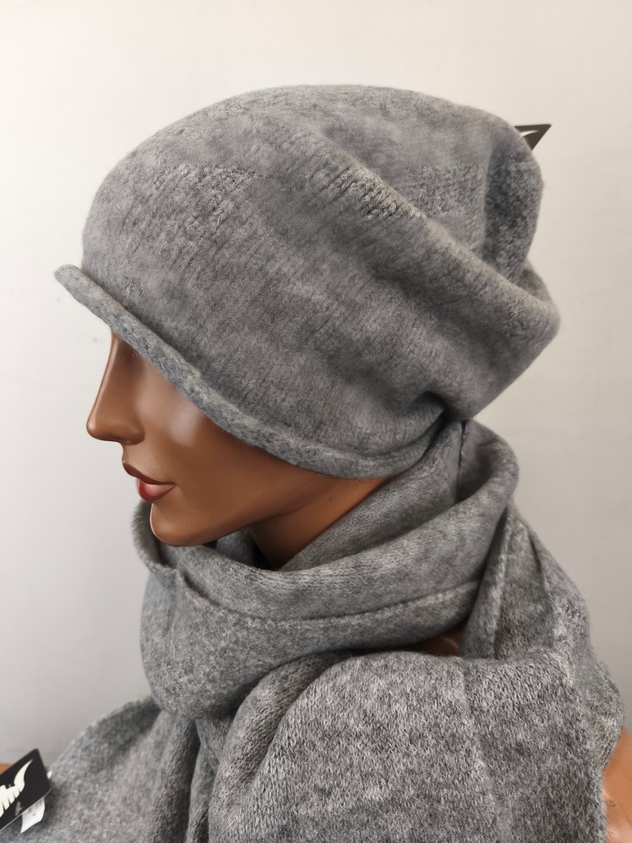 komplet czapka i szal / ciepły luźna obszerna czapka / 0088501 popiel