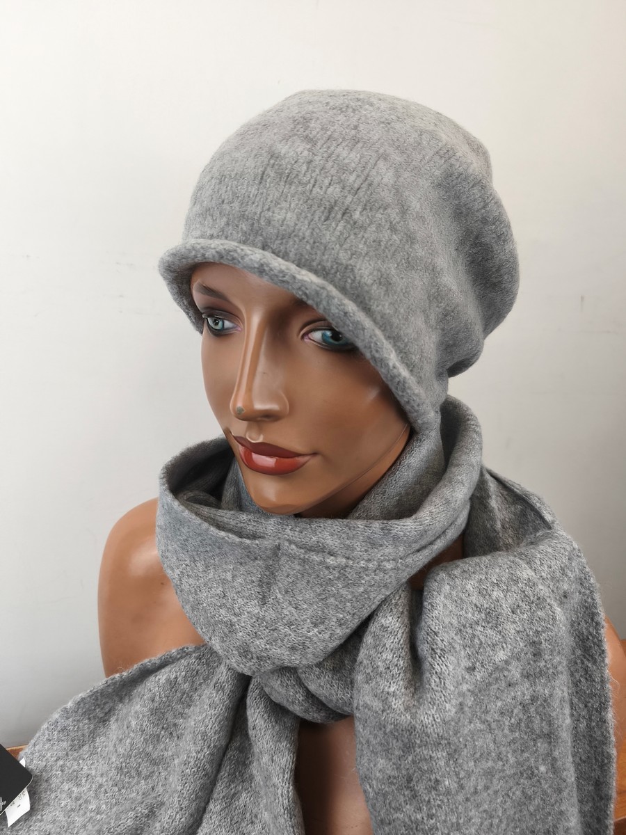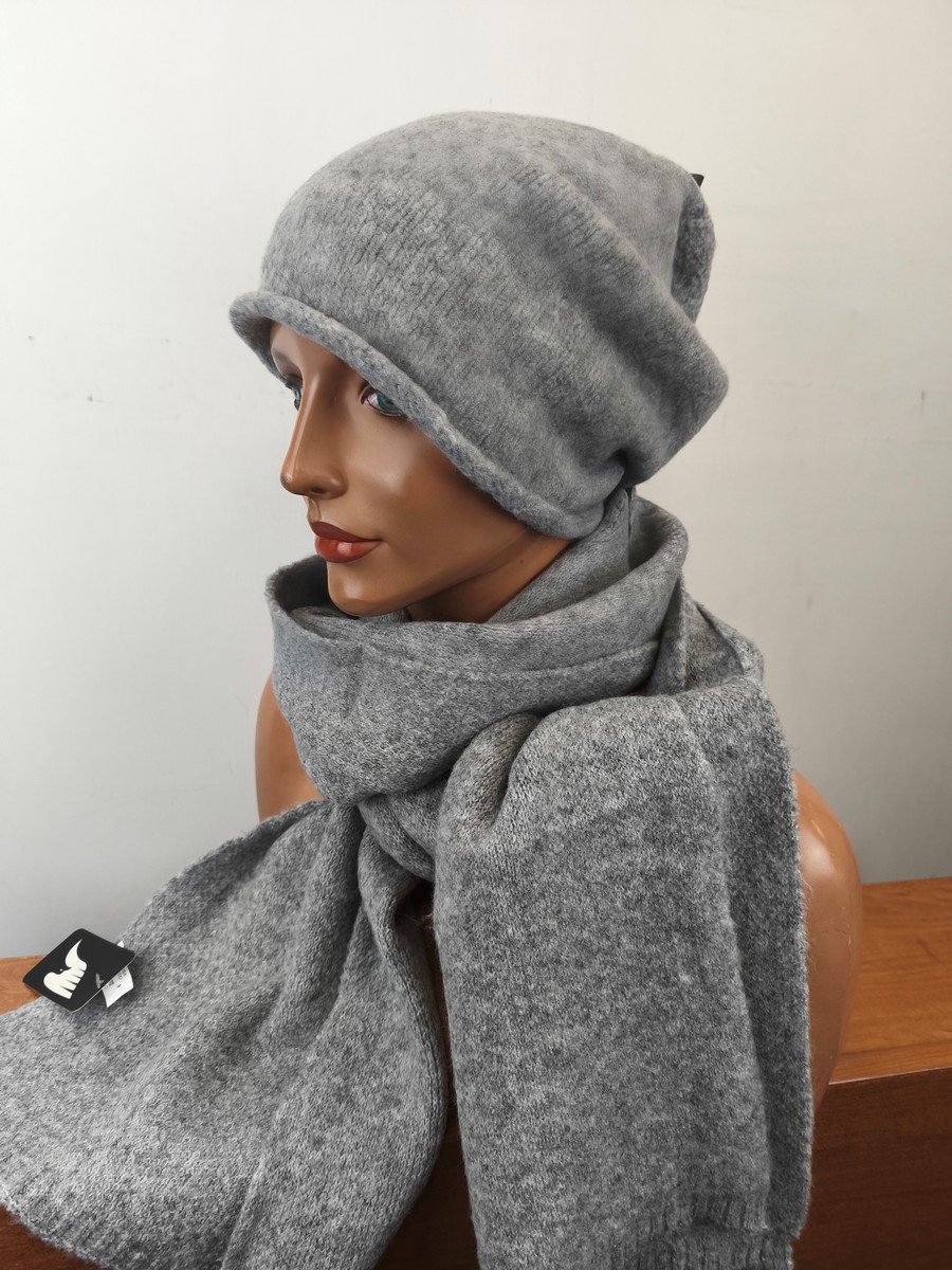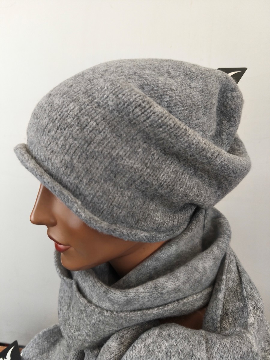 komplet czapka i szal / ciepły luźna obszerna czapka / 0088501 popiel