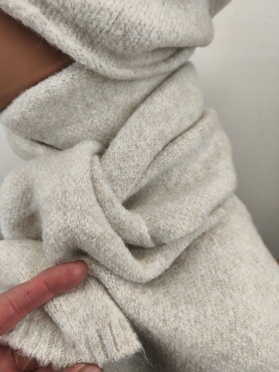 komplet czapka i szal / ciepły luźna obszerna czapka / 0088503 jasny beż kredowy