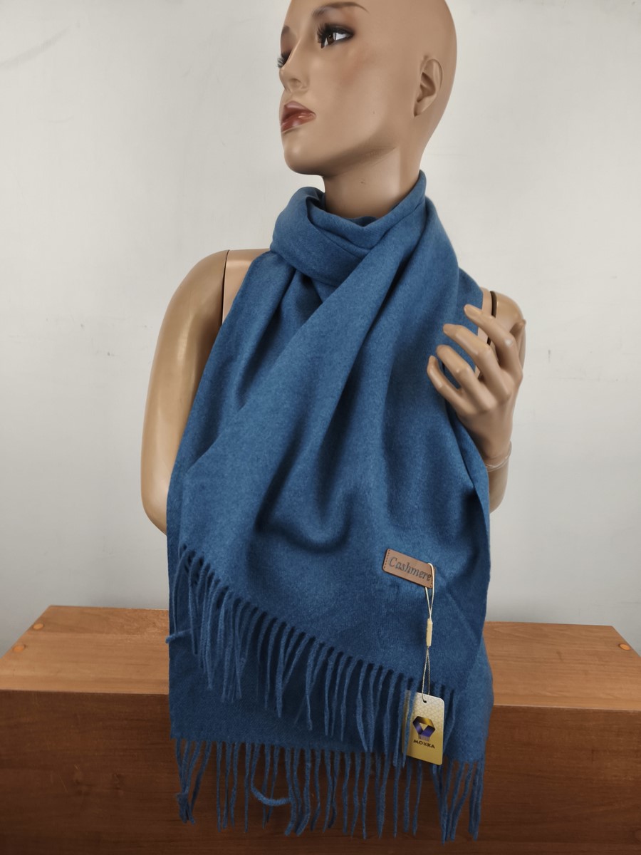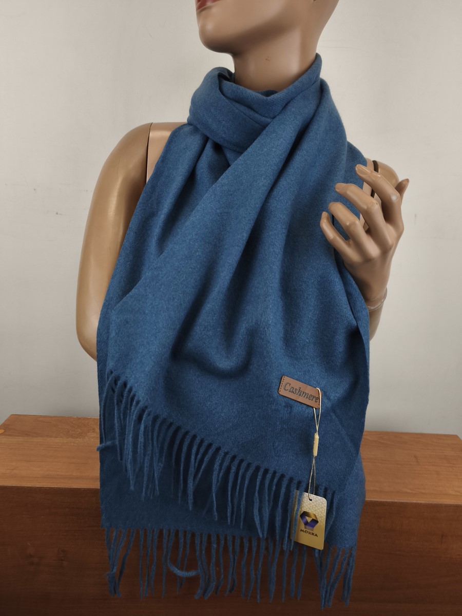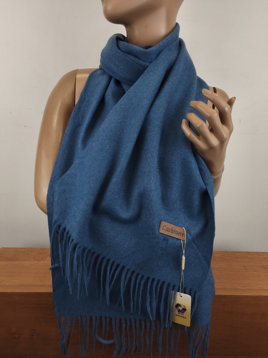 miękki szal szalik klasyczny z kaszmirem 0008921 niebieski jeans