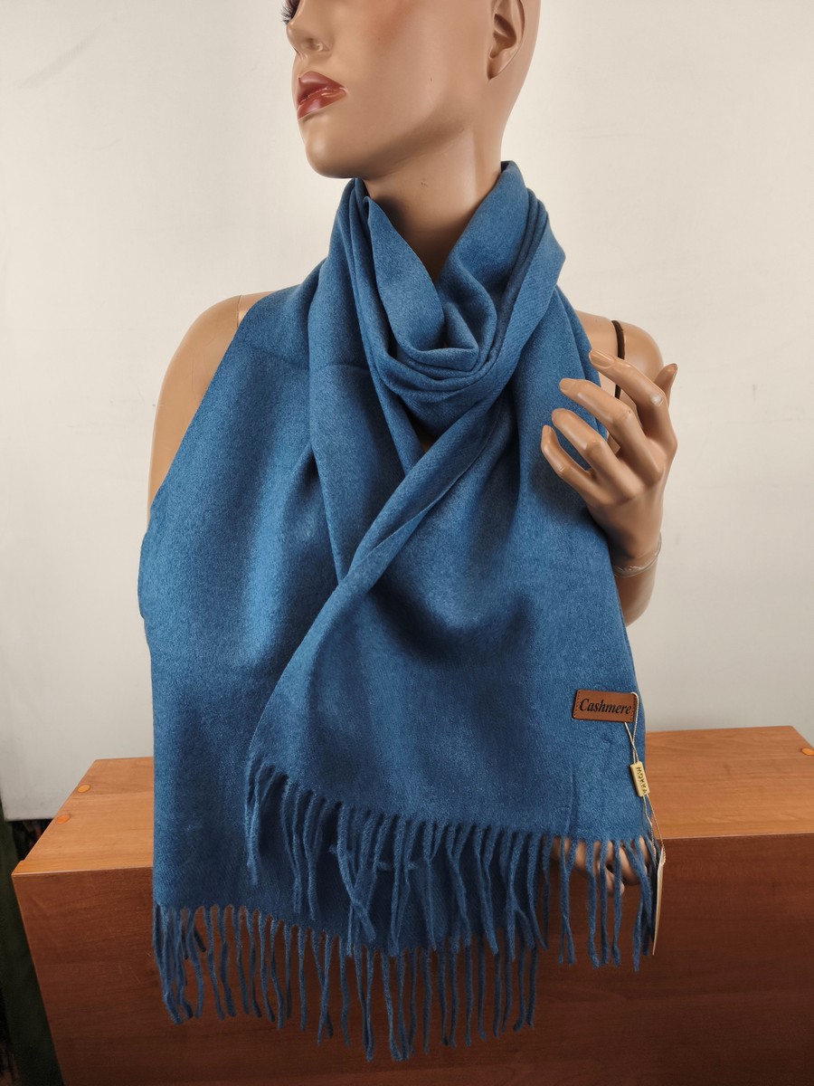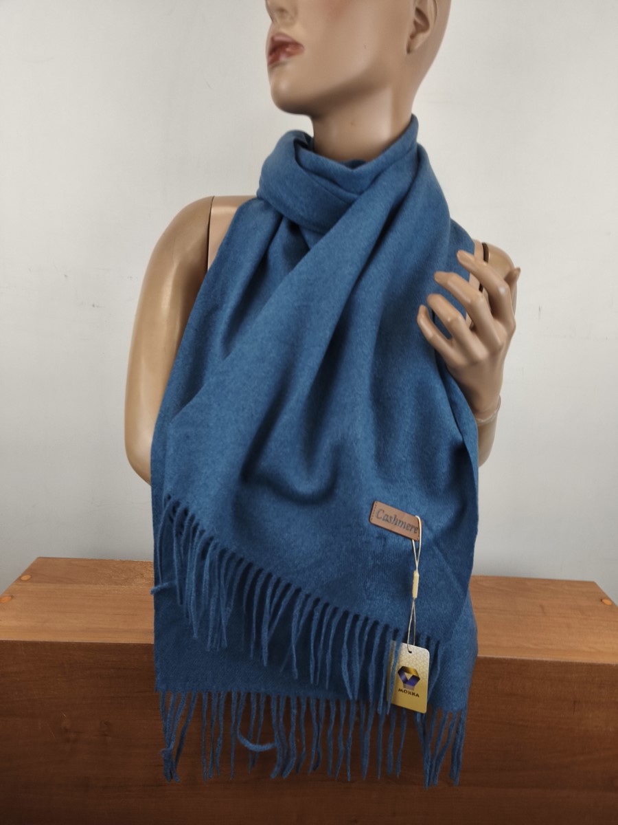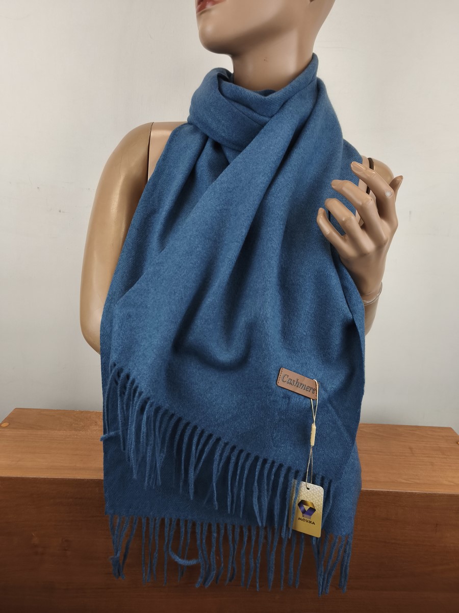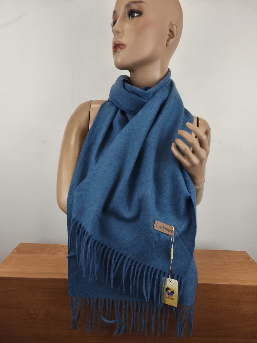 miękki szal szalik klasyczny z kaszmirem 0008921 niebieski jeans