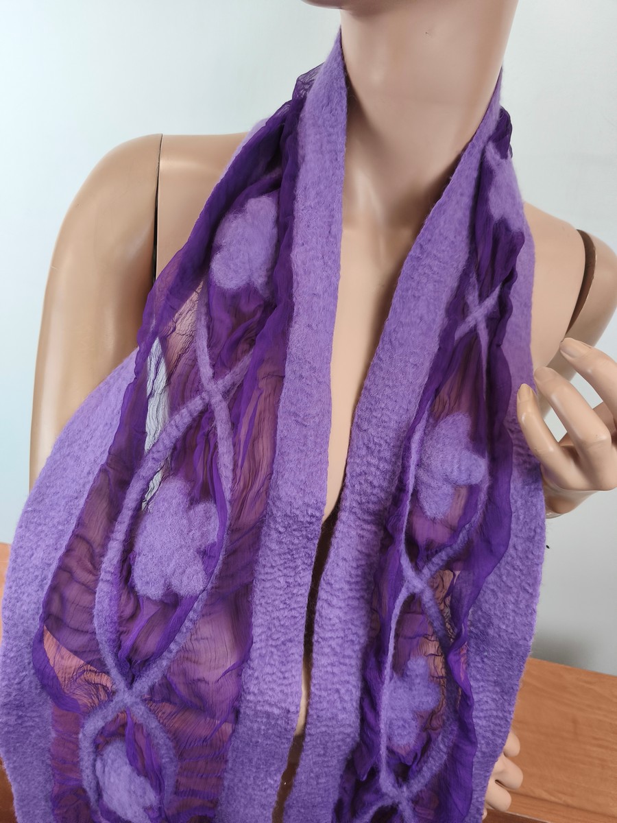 szalik jedwab naturalny i merino wełna filcowany - 0055104 fiolet