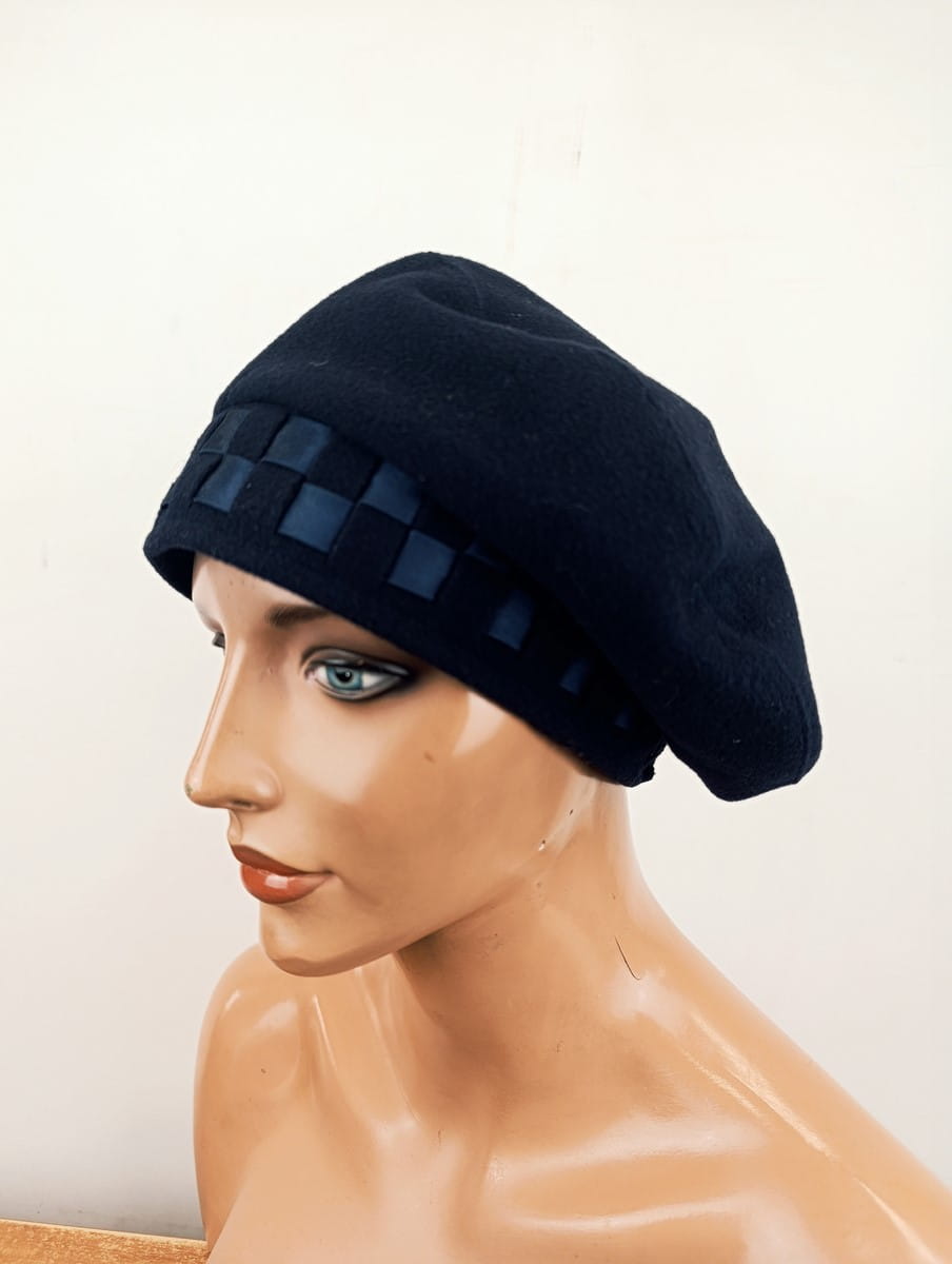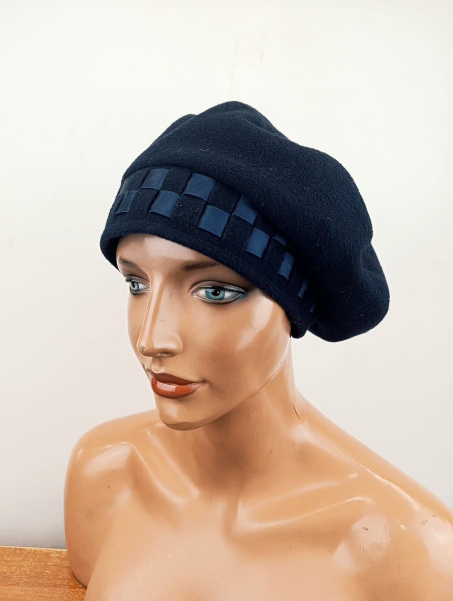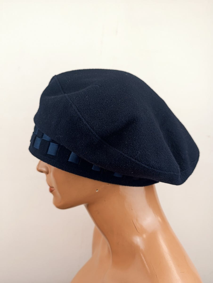 Beret wełniany   100% wełna granatowy r.53-56 cm  /  00366332
