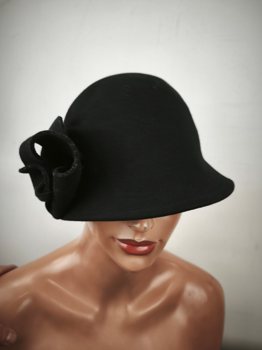 artystyczny kapelusik filcowy wełna od modniarki hand made / r.54-56 cm / 0058760 czarny