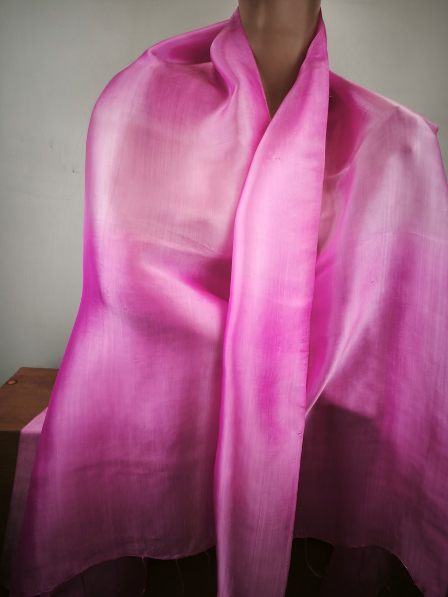 bardzo duży szal jedwabny lejący JLS 0060225 opalizujący róż 90x160 cm