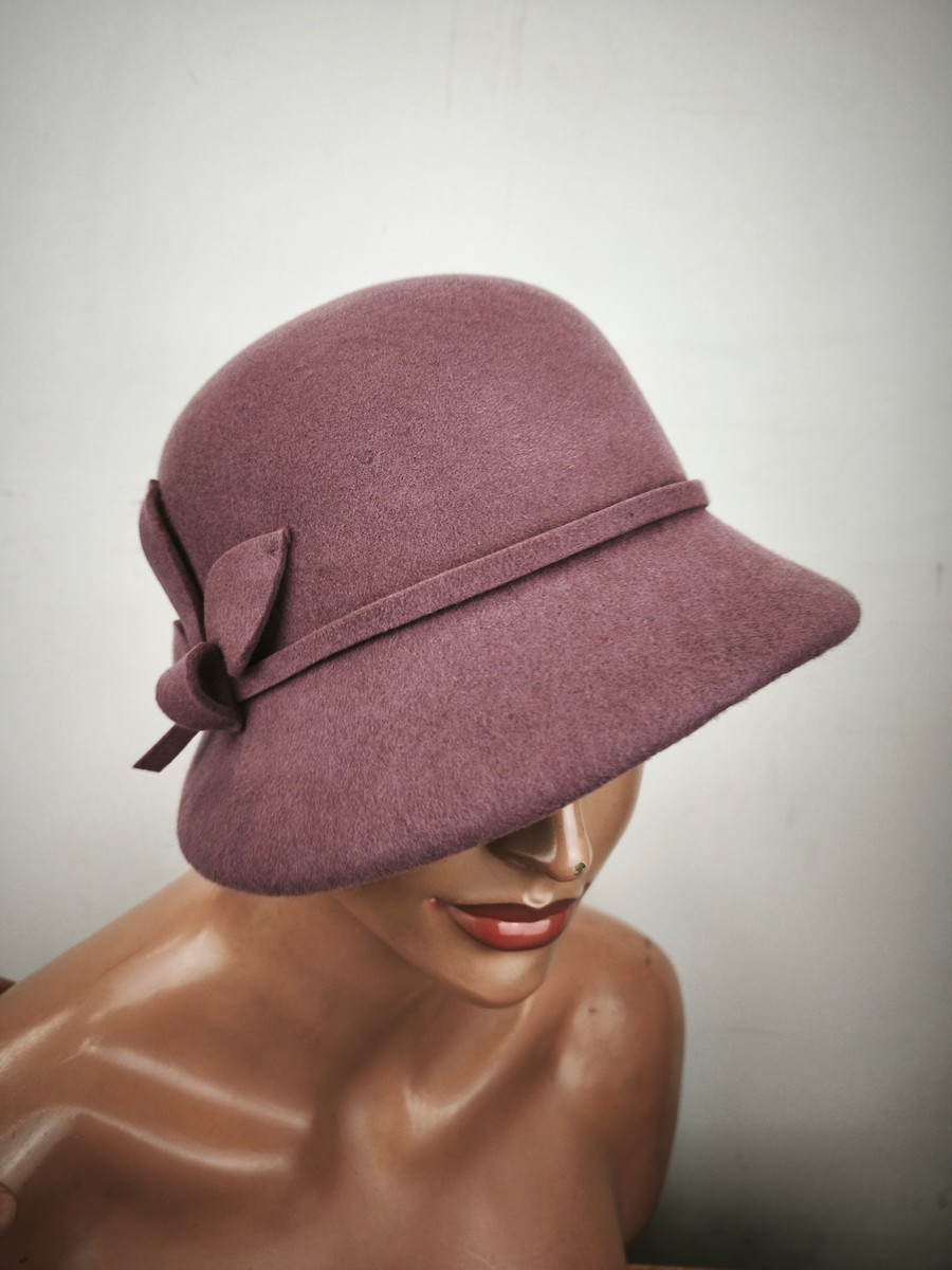 czapka - kapelusik filcowy wełniany LOLA / r.53-56,5 cm / 0032503 brudny róż