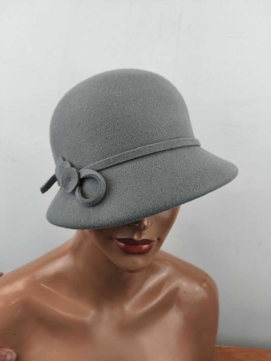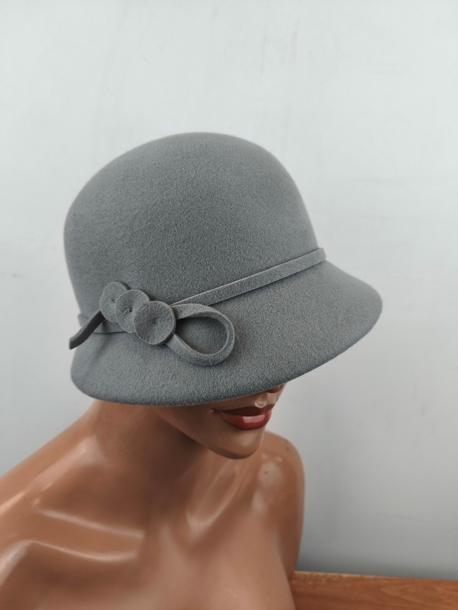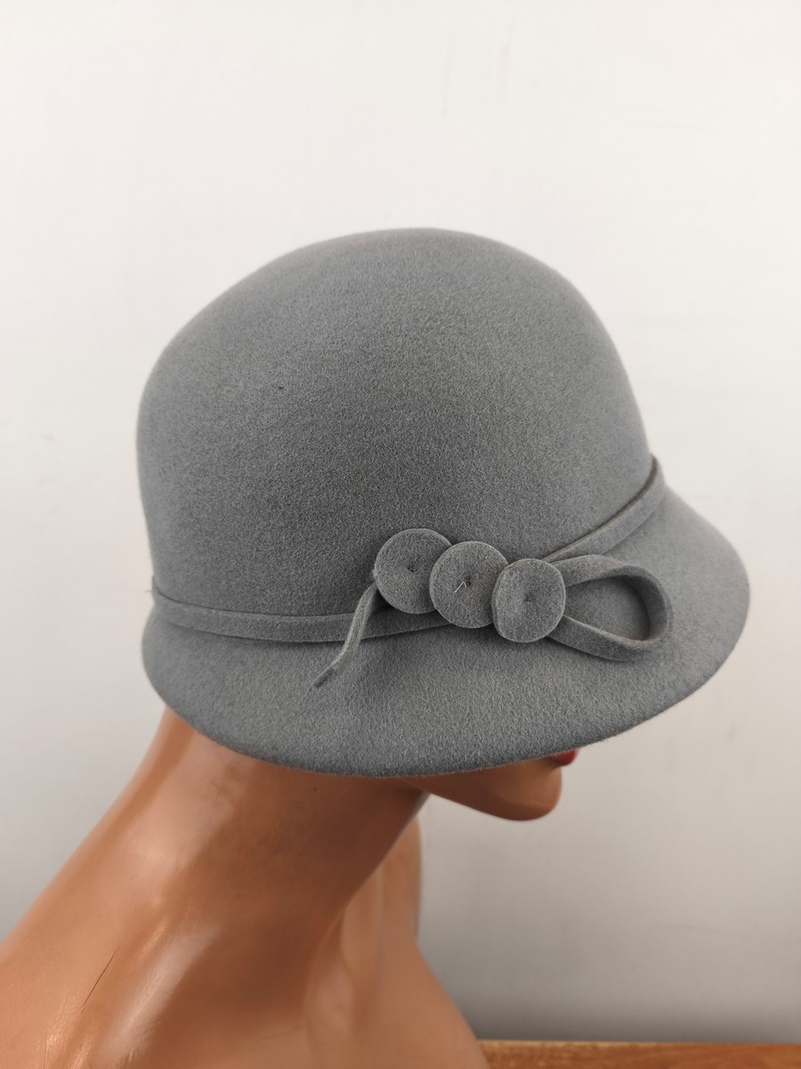 czapka - kapelusik filcowy wełniany LOLA / r.53-57 cm / 0044405 niebieska popiel