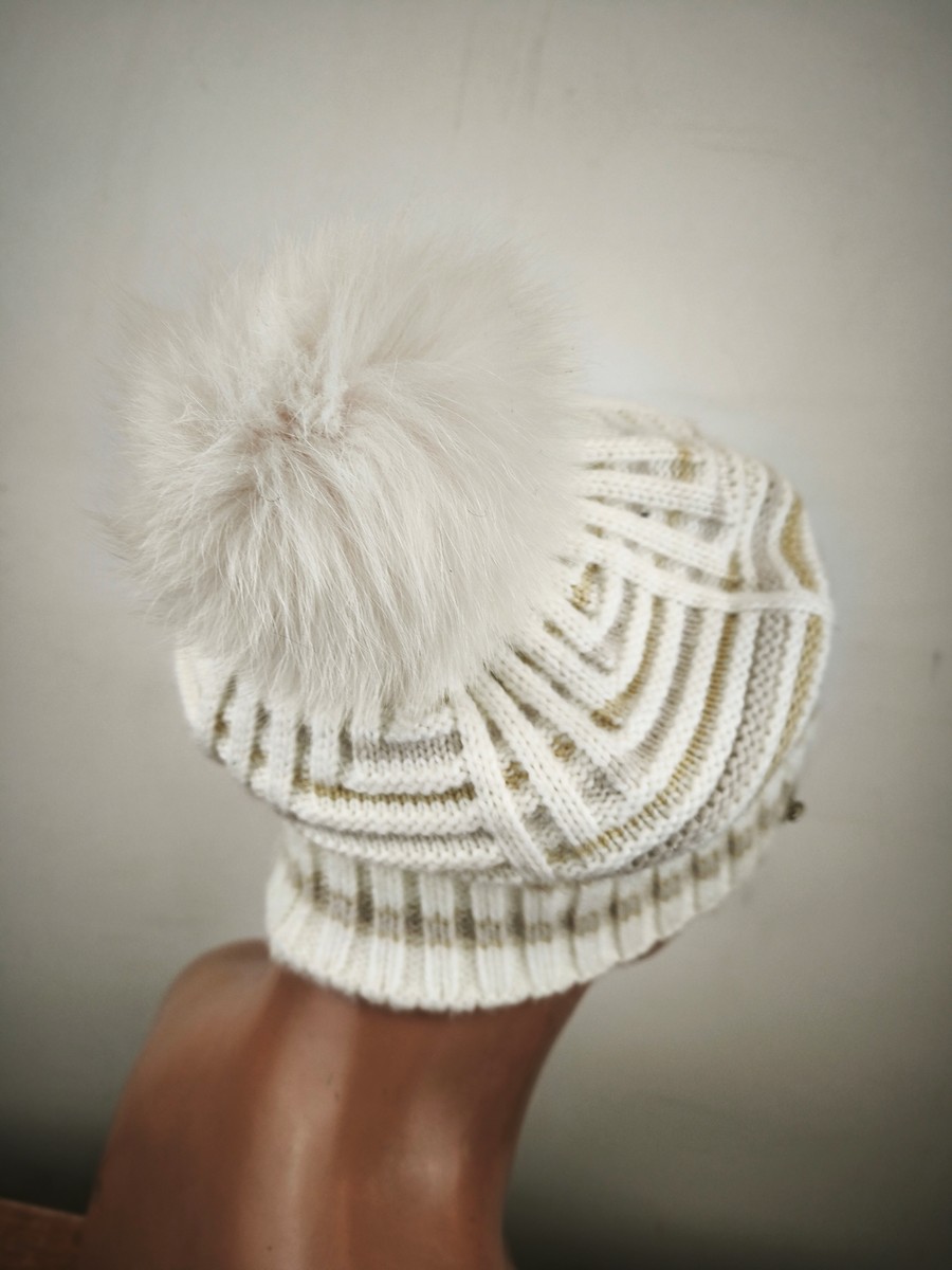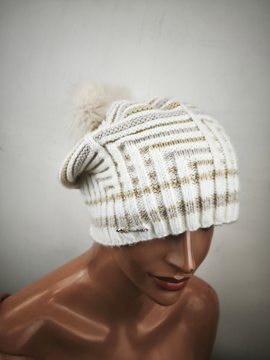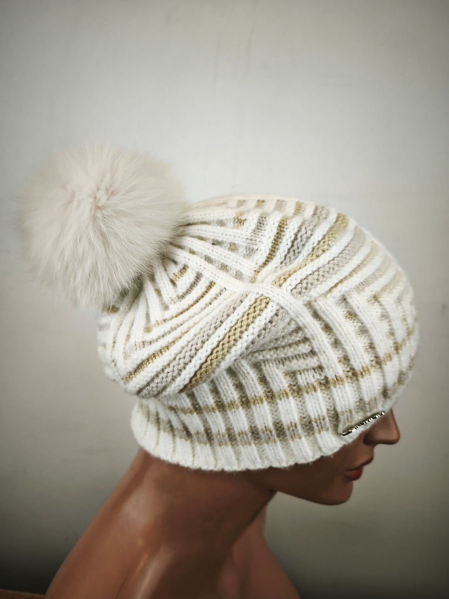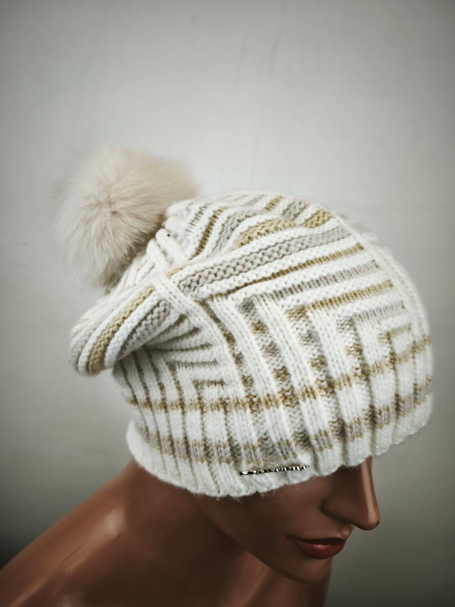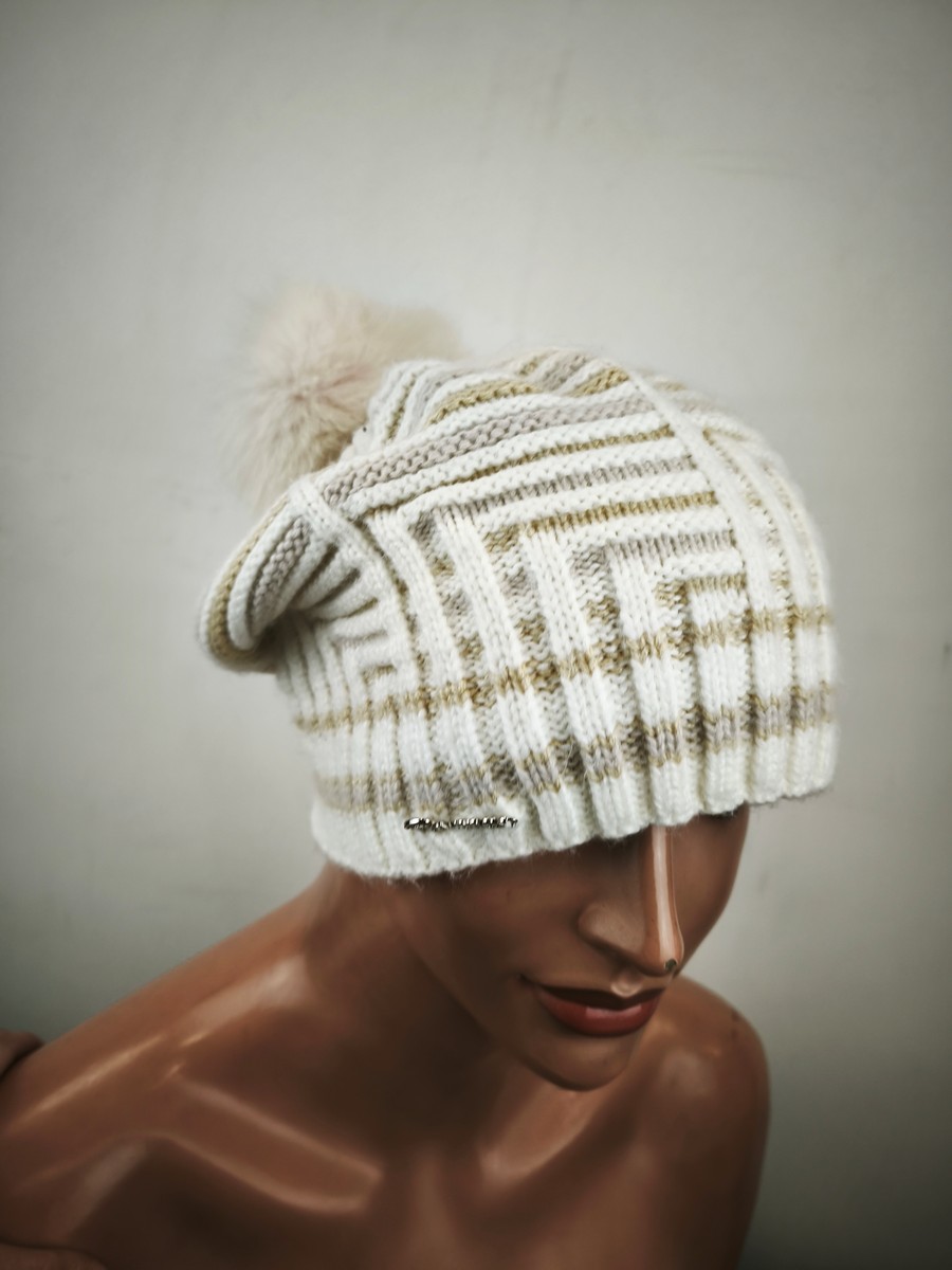 czapka wełniana z angorką pompon naturalny / 071604