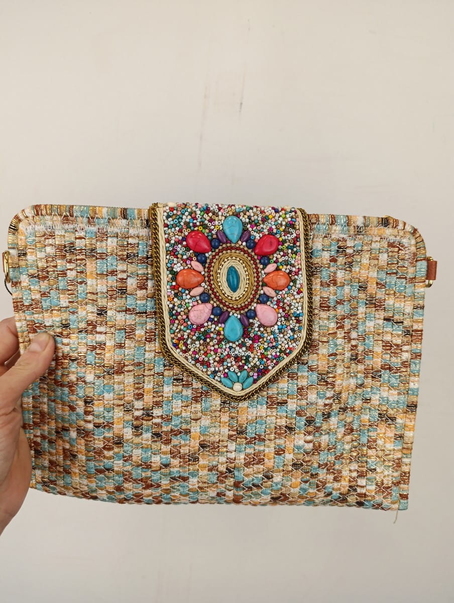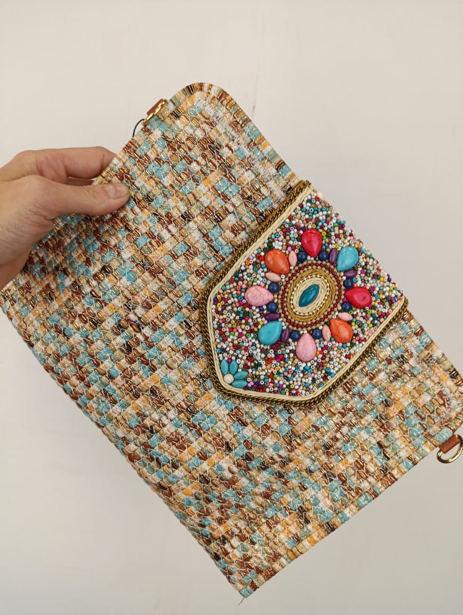 duża kopertówka torebka bawełniana z kamieniami 0052220