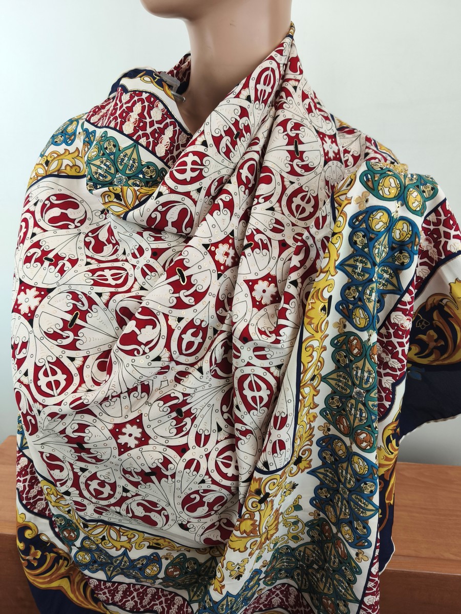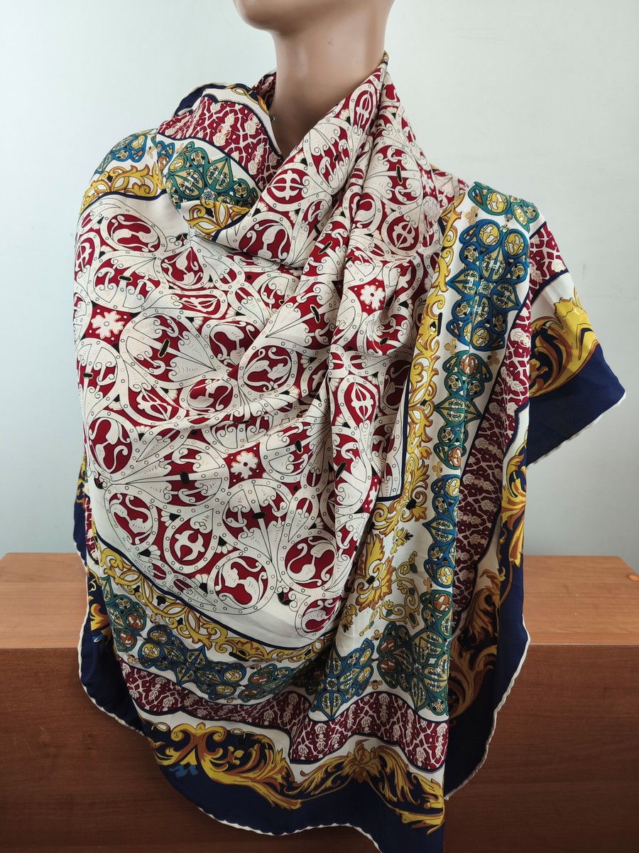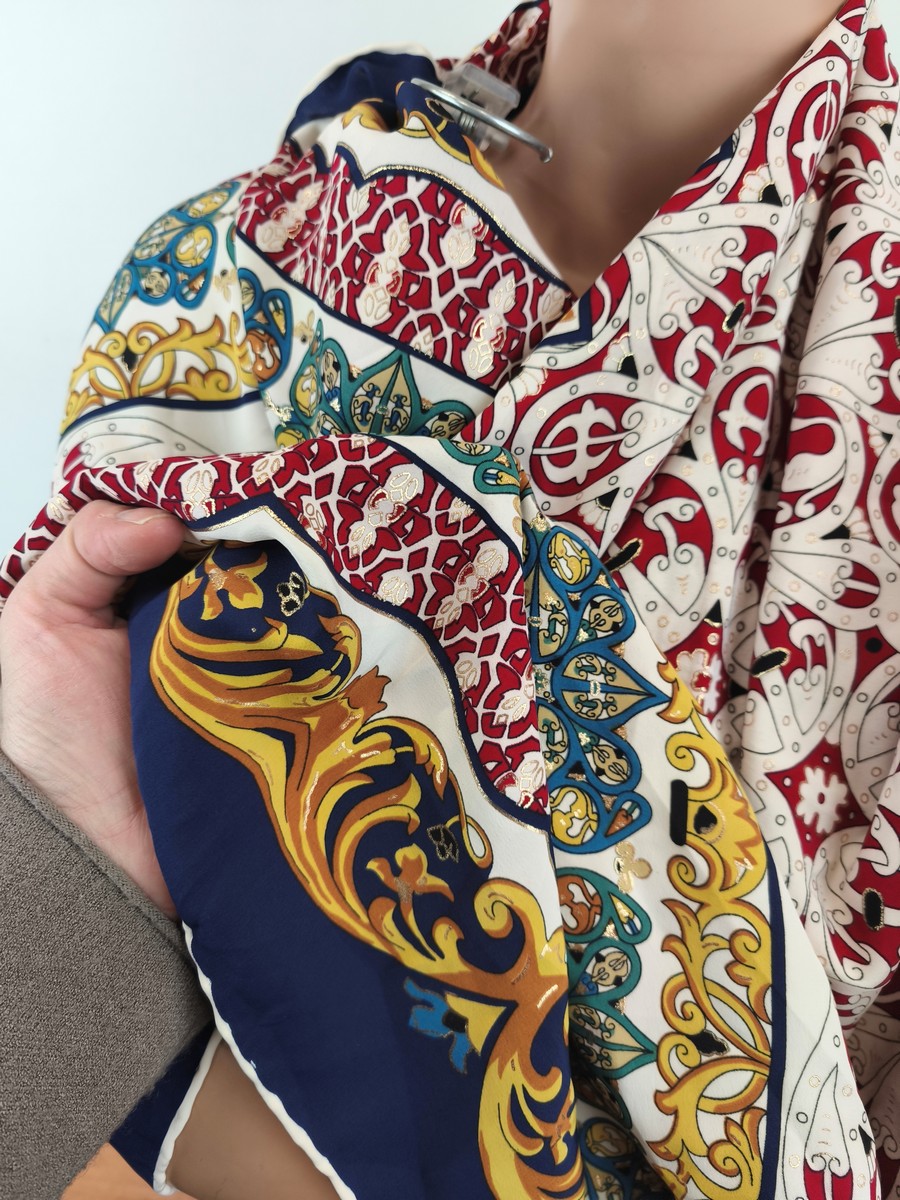 włoska jedwabna duża chusta apaszka żakard elegancka ITALIA
