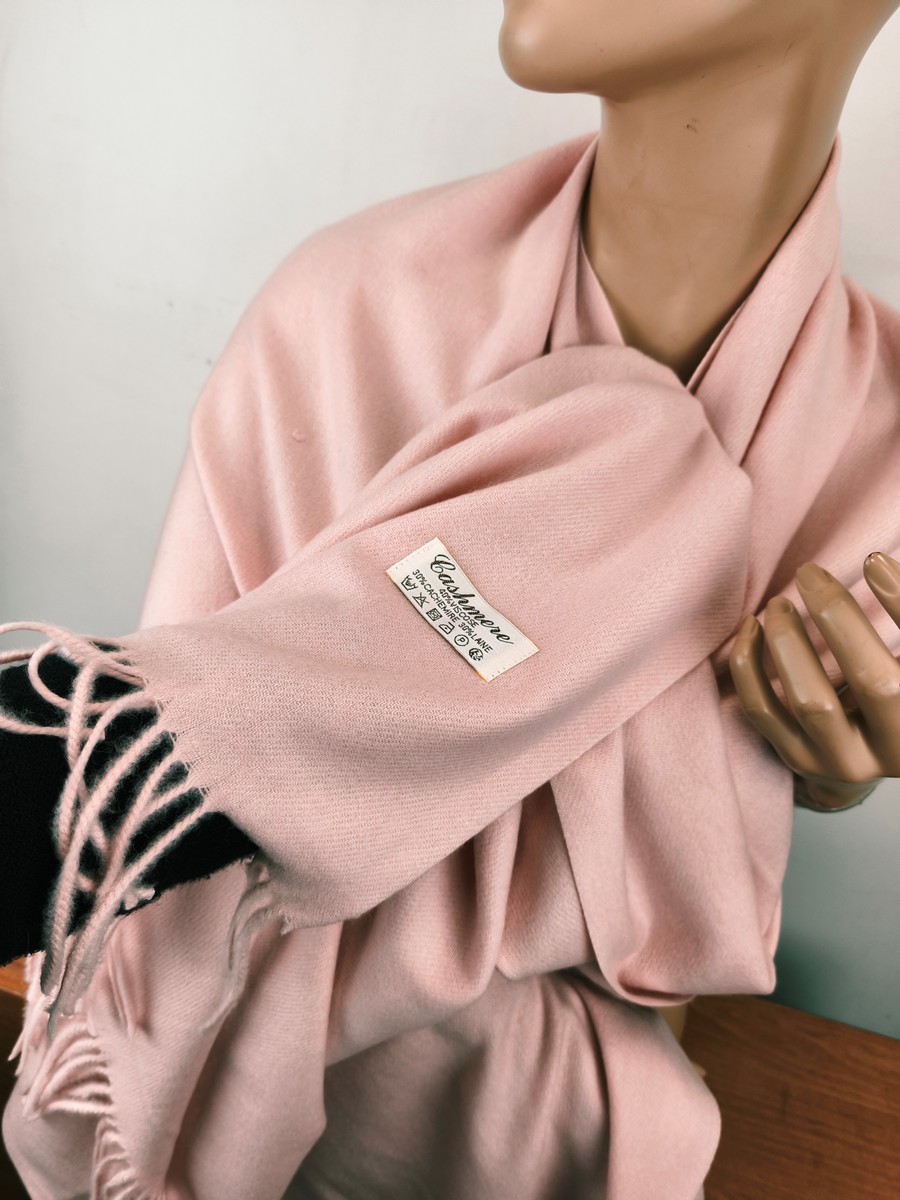 duży miękki szal ciepły z kaszmirem 00086050 delikatny róż pastelowy