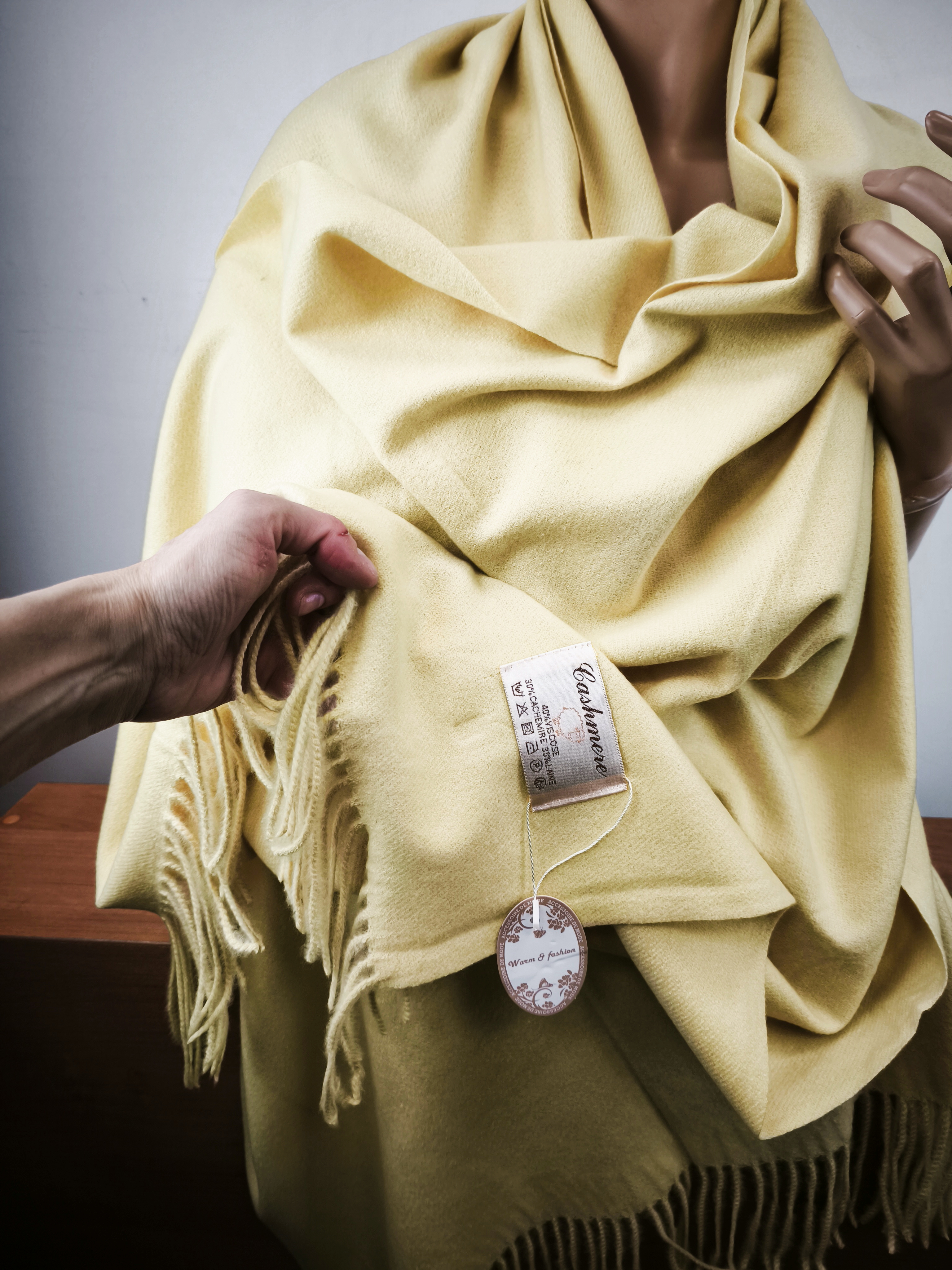 duży miękki szal ciepły z kaszmirem 0008694 żółty