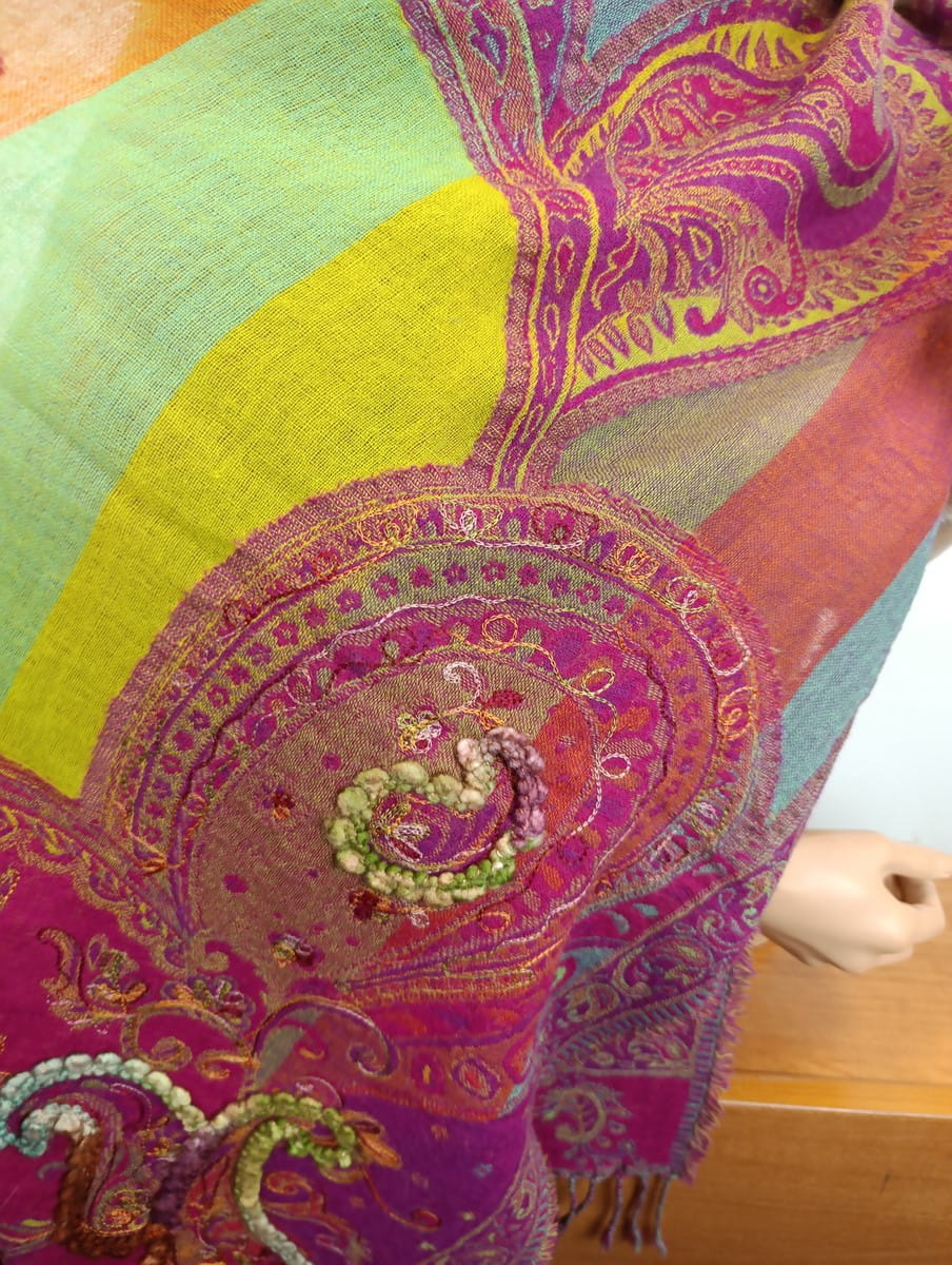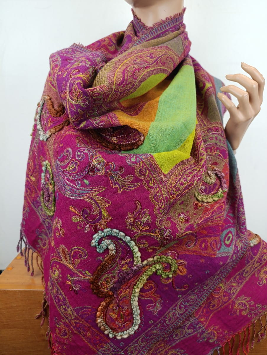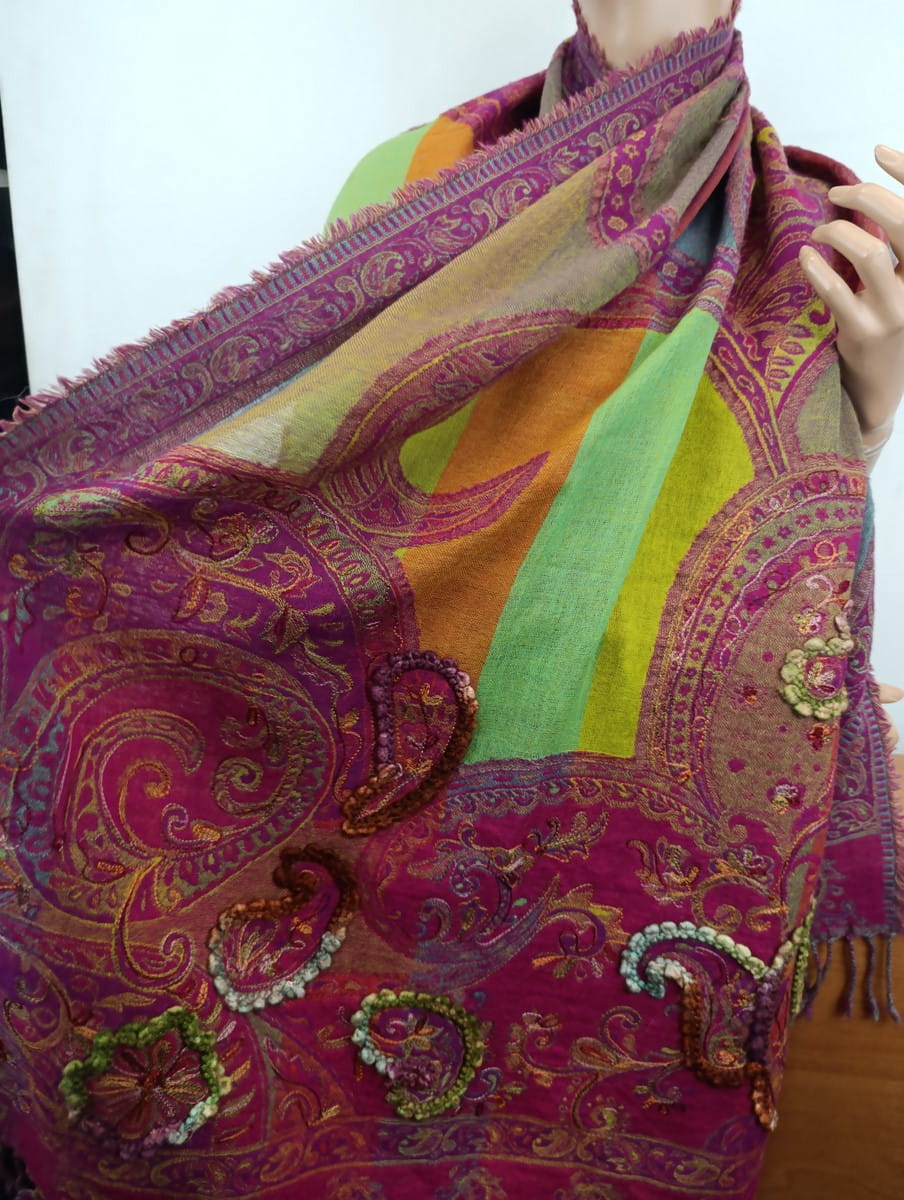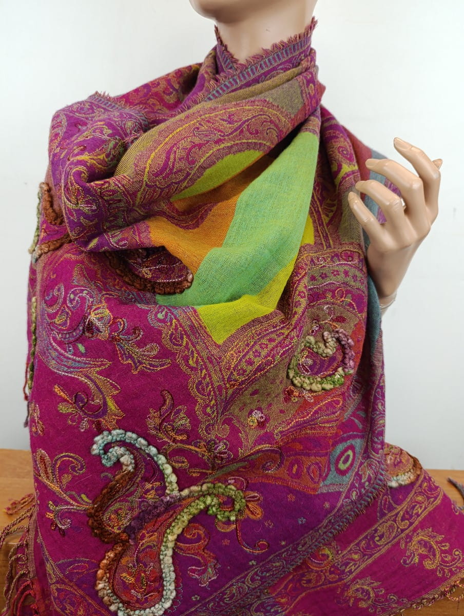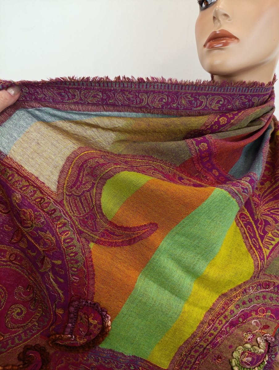duży szal 100% wełna we wzory kolorowy PASSIGATTI 05955060 ITALIA