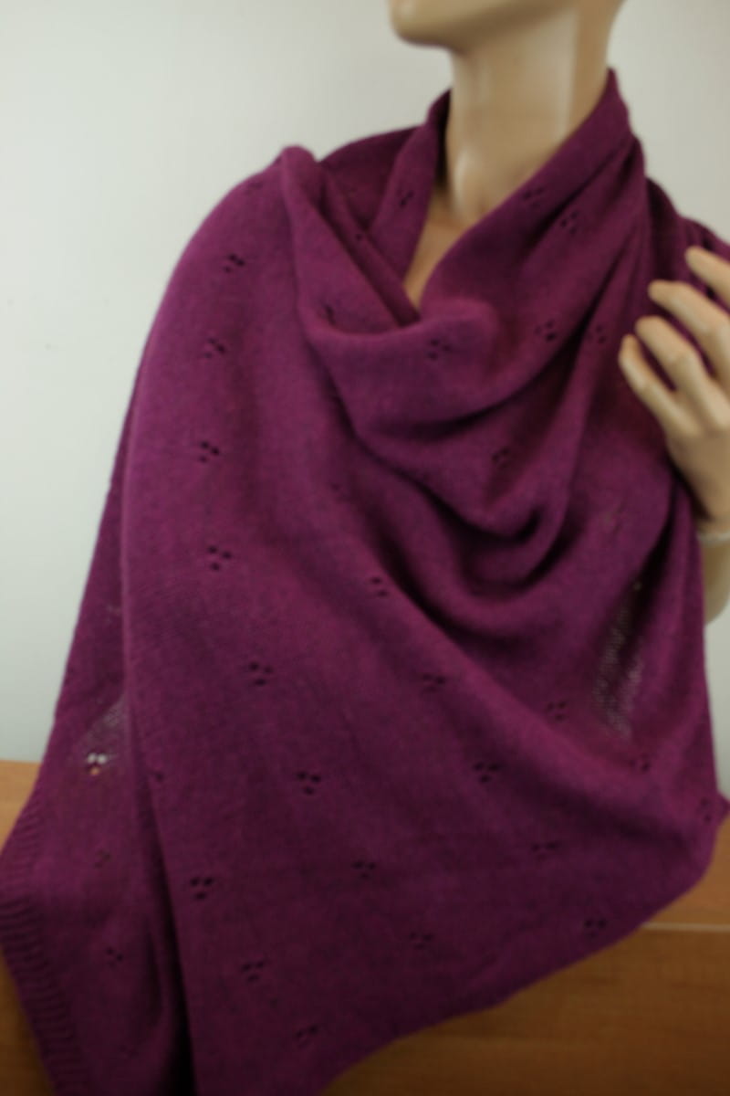 duży szal dzianina wełenka sweterkowy 00551160 fiolet
