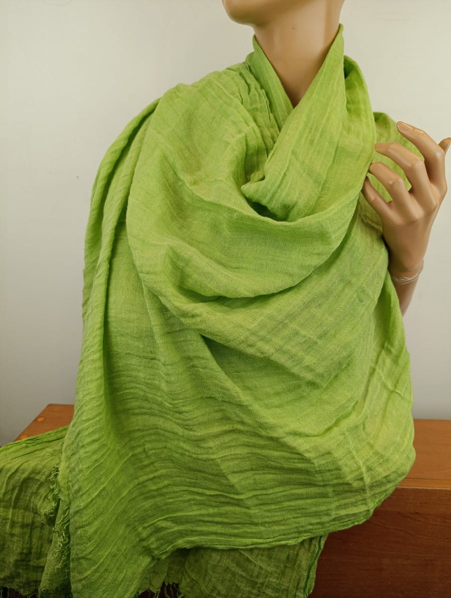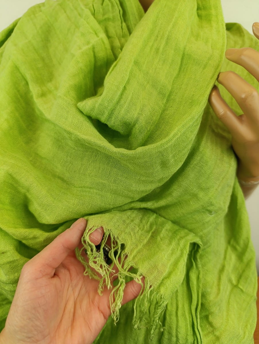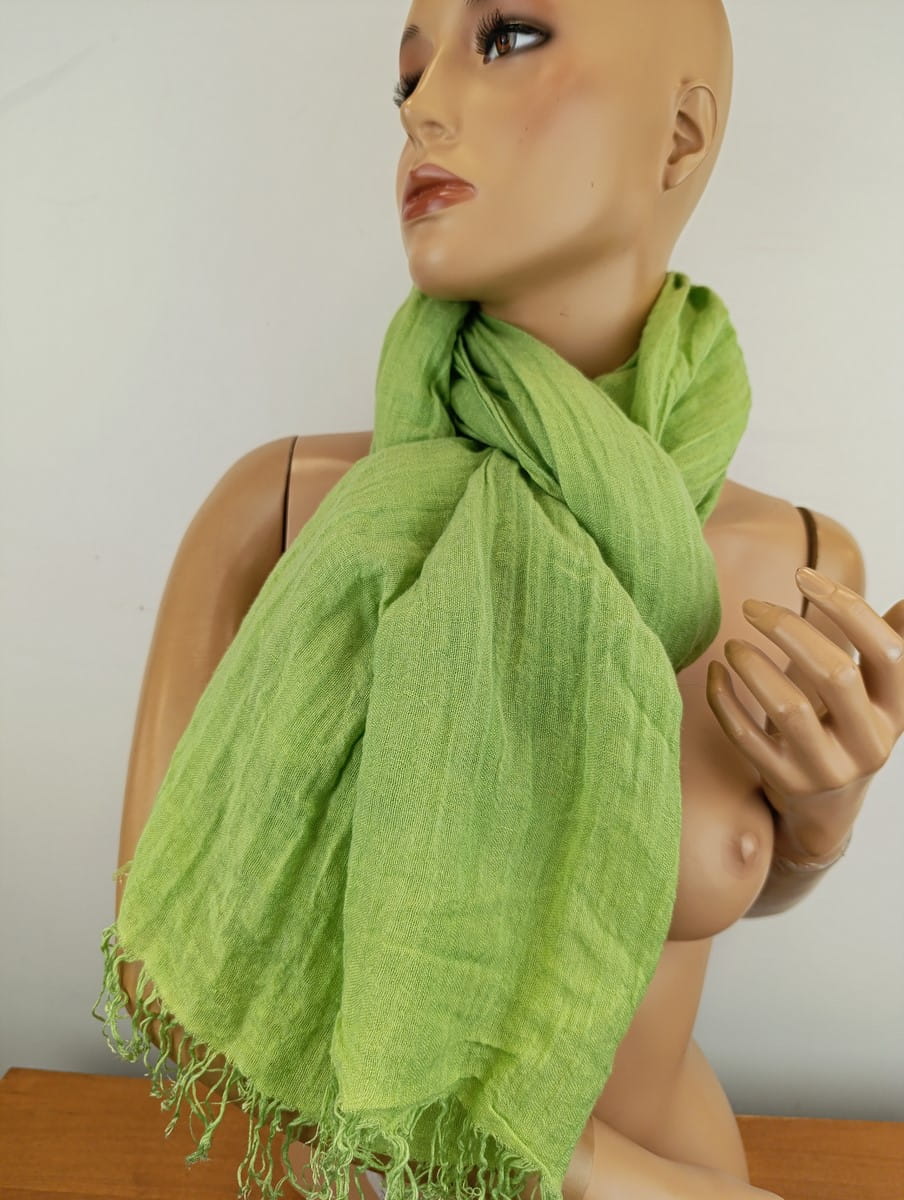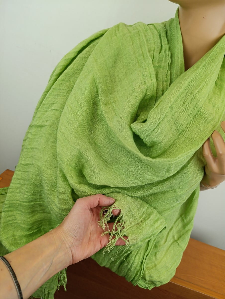 duży szal len naturalny 0056022 zieleń / 70x200 cm
