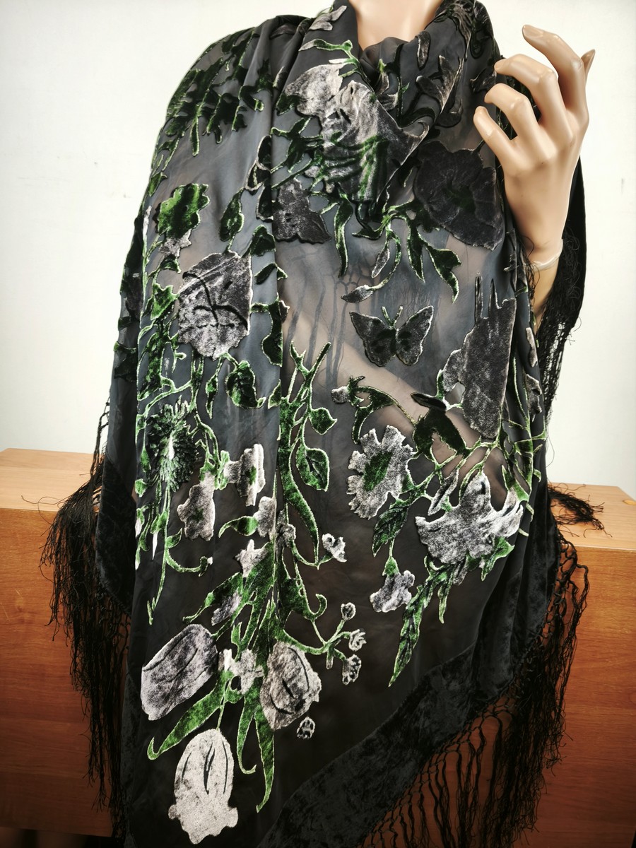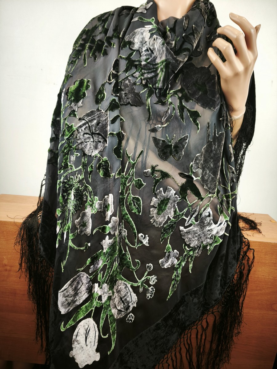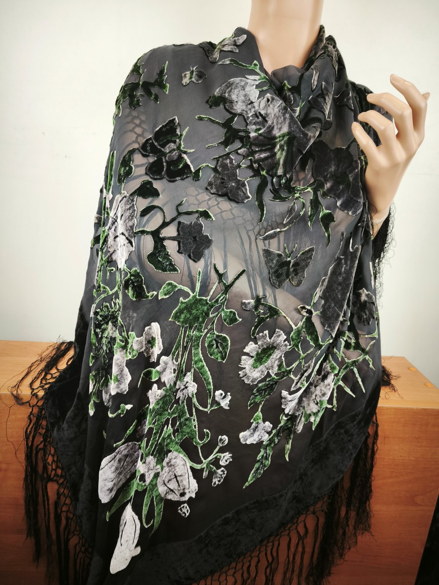 ekskluzywna włoska chusta jedwab z welurem aksamitem 110x110 cm ITALIA 0410095