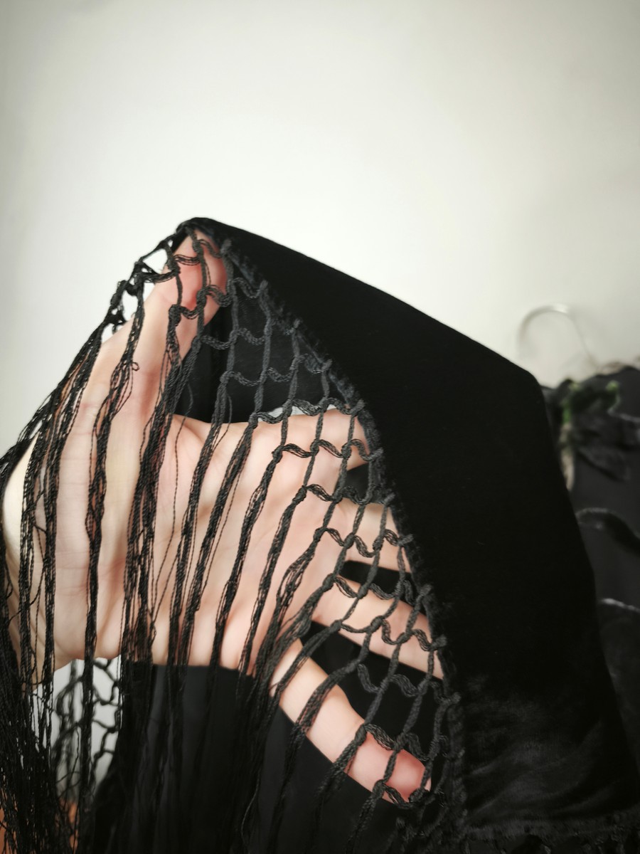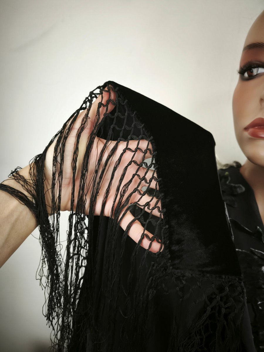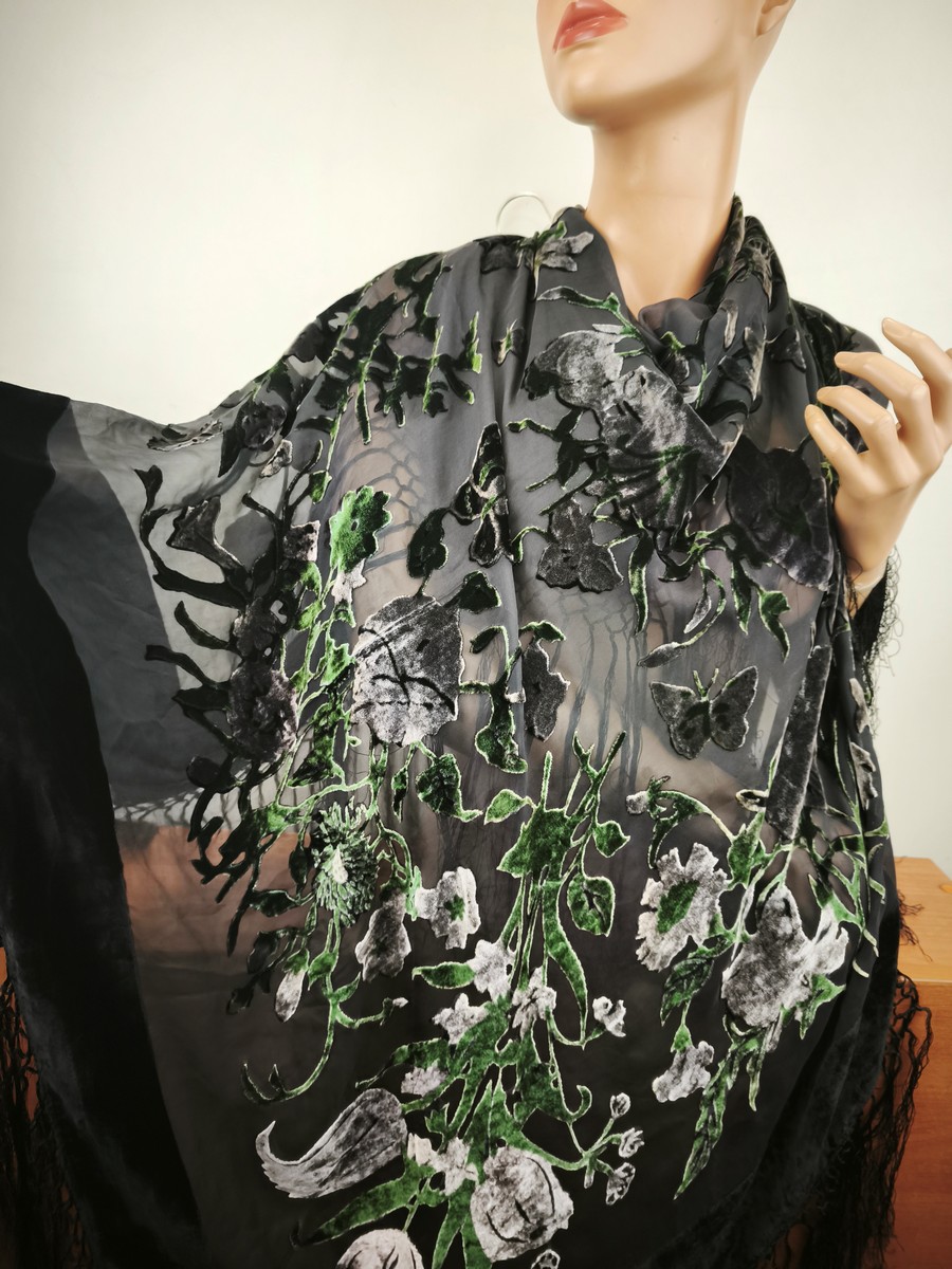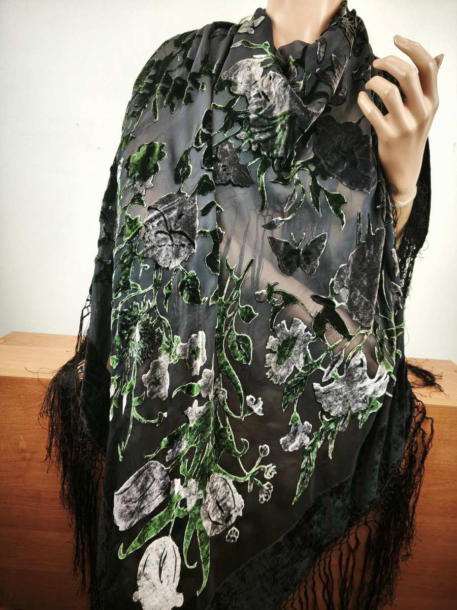 ekskluzywna włoska chusta jedwab z welurem aksamitem 110x110 cm ITALIA 0410095