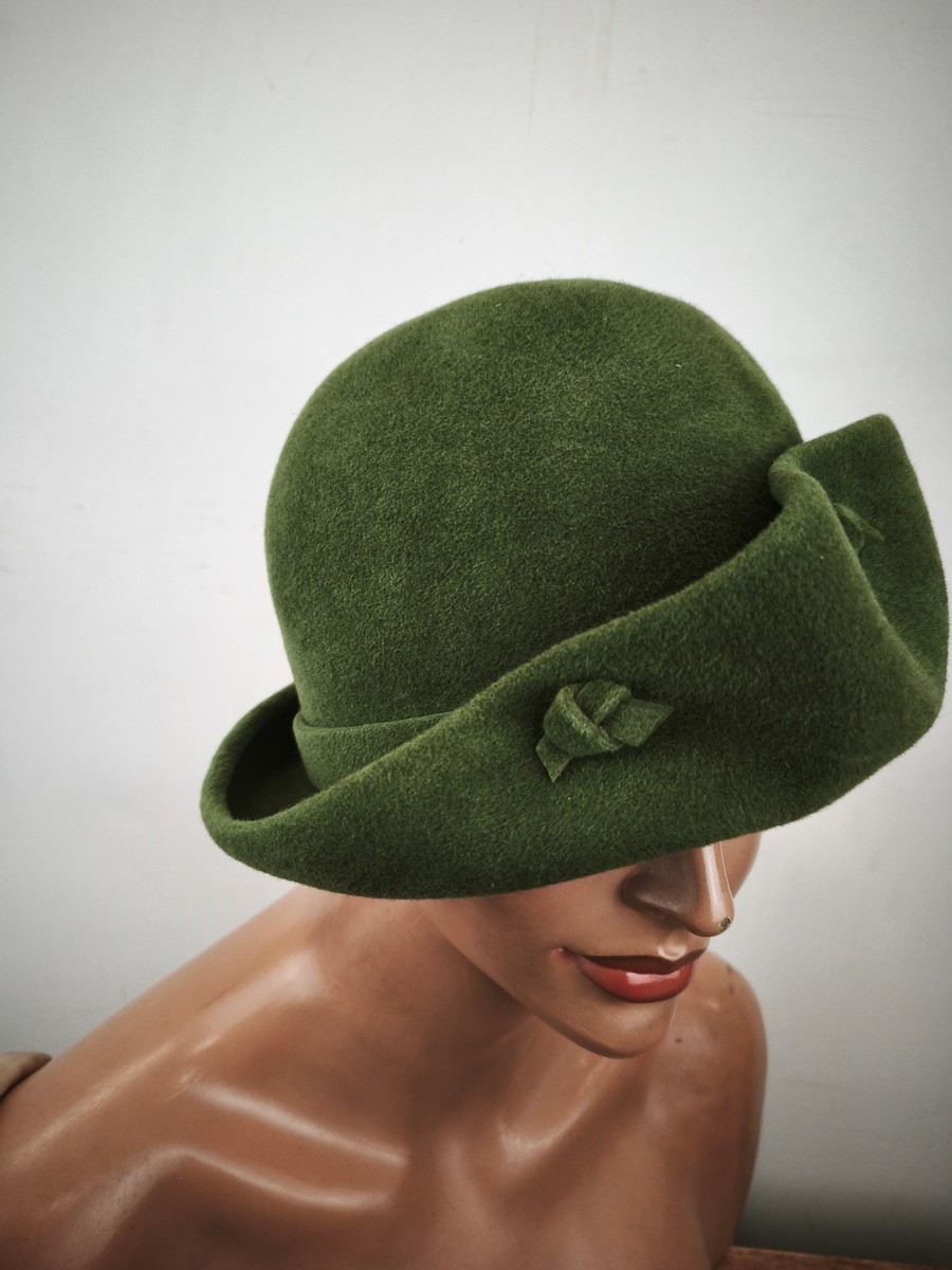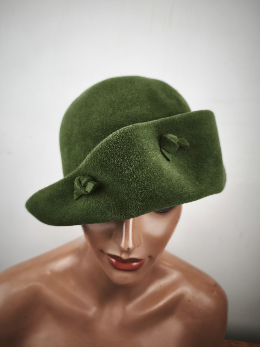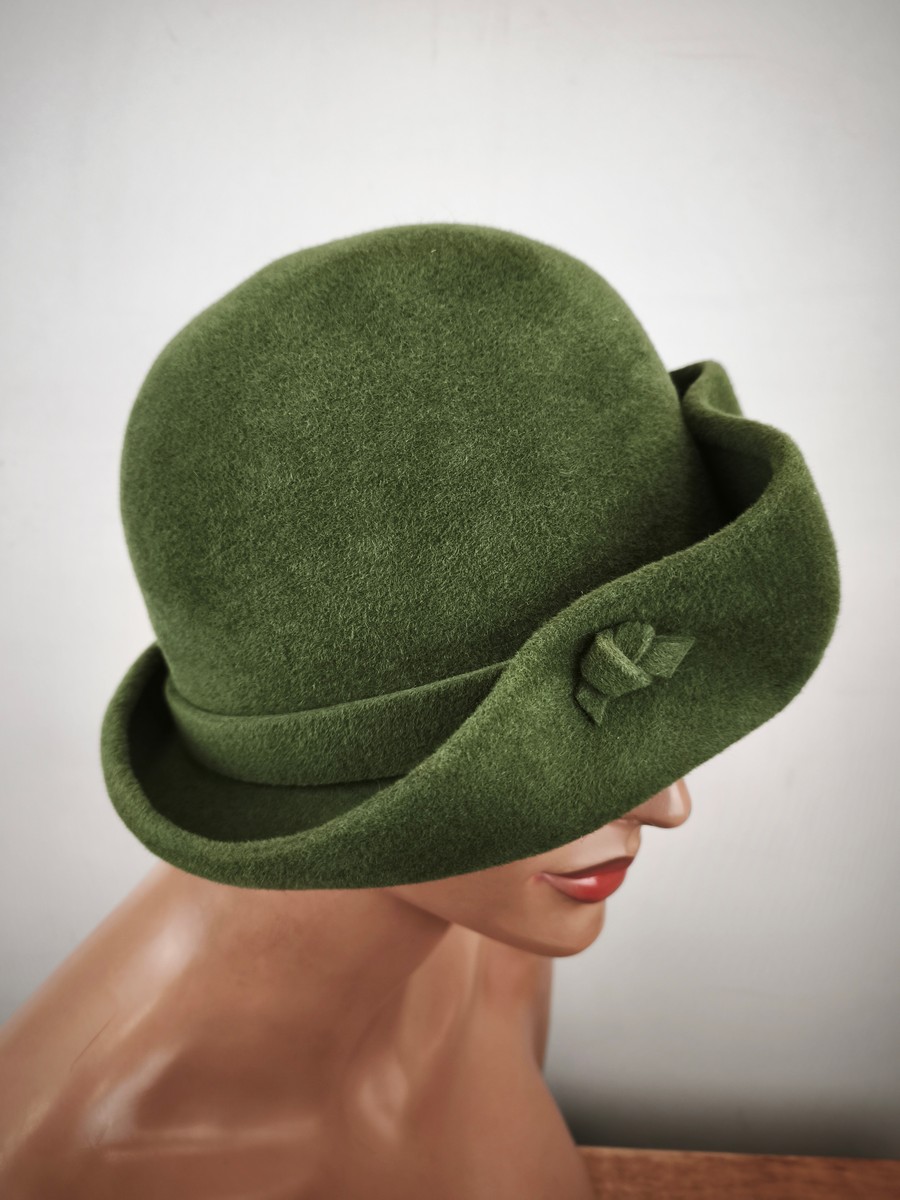 kapelusz damski sierść królicza od modniarki hand made / r.54-56 cm / 0885007 zieleń zgaszona elegancka