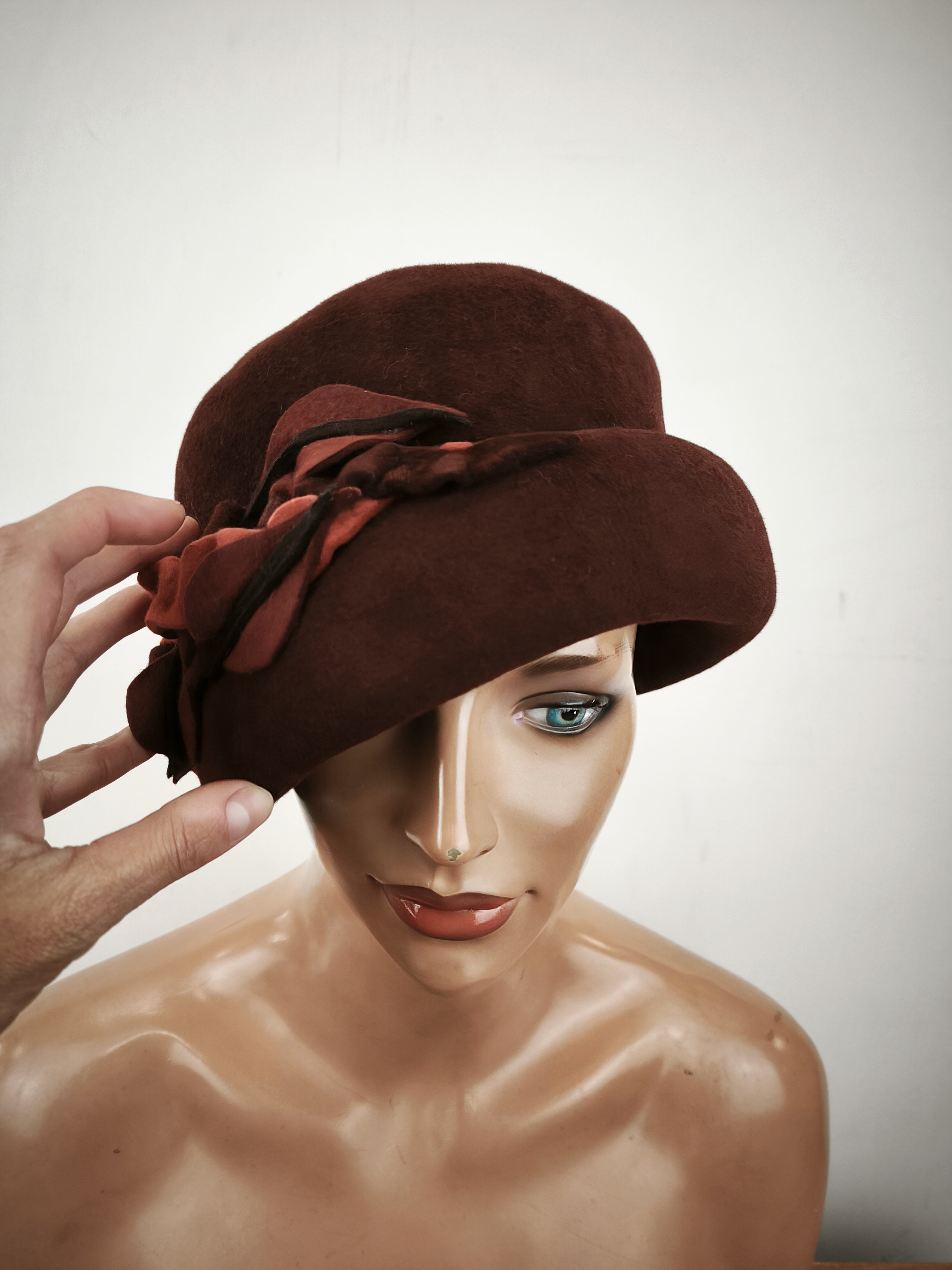 kapelusz damski sierść królicza od modniarki hand made / r.55-57 cm / 0885025 brąz