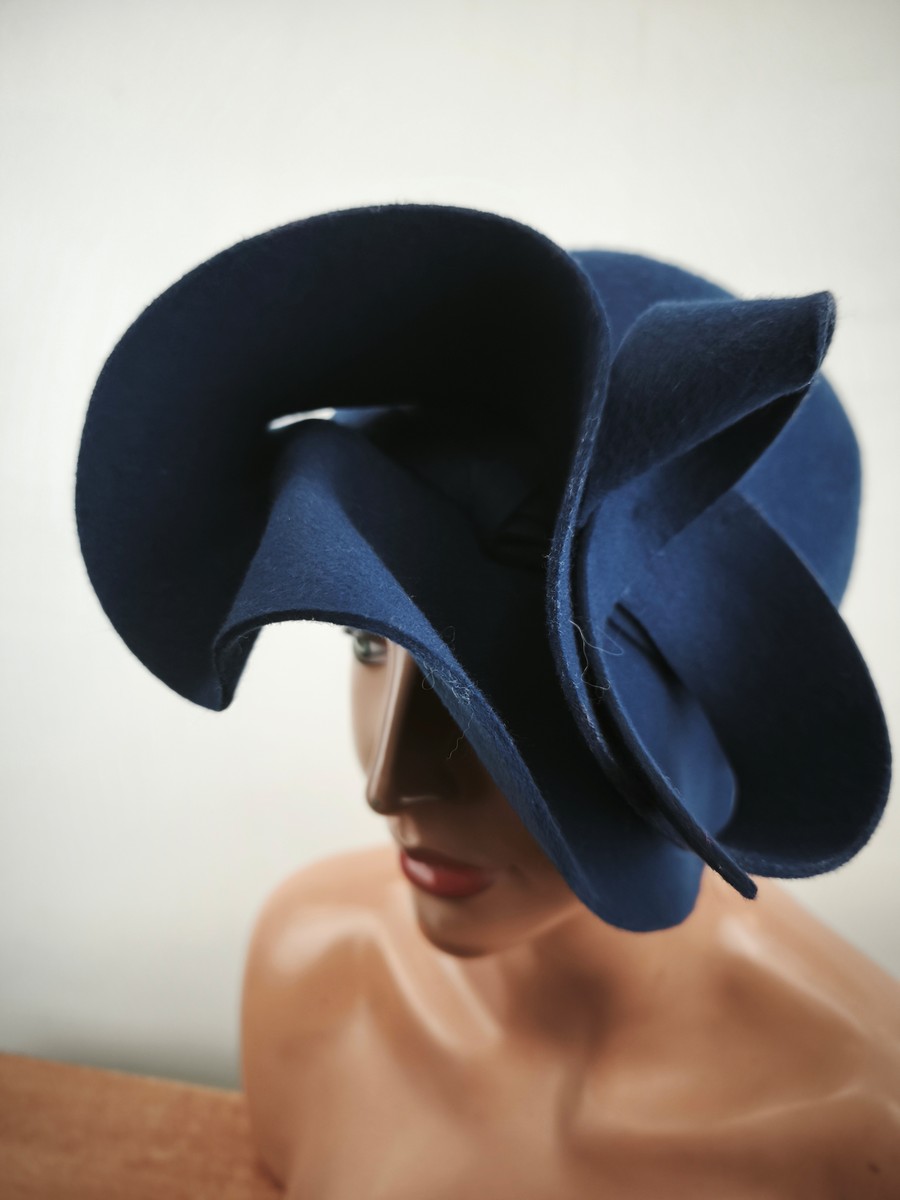 kapelusz wełniany filcowy artystyczny r.53-56 / MJZ 2063608 granat jasny