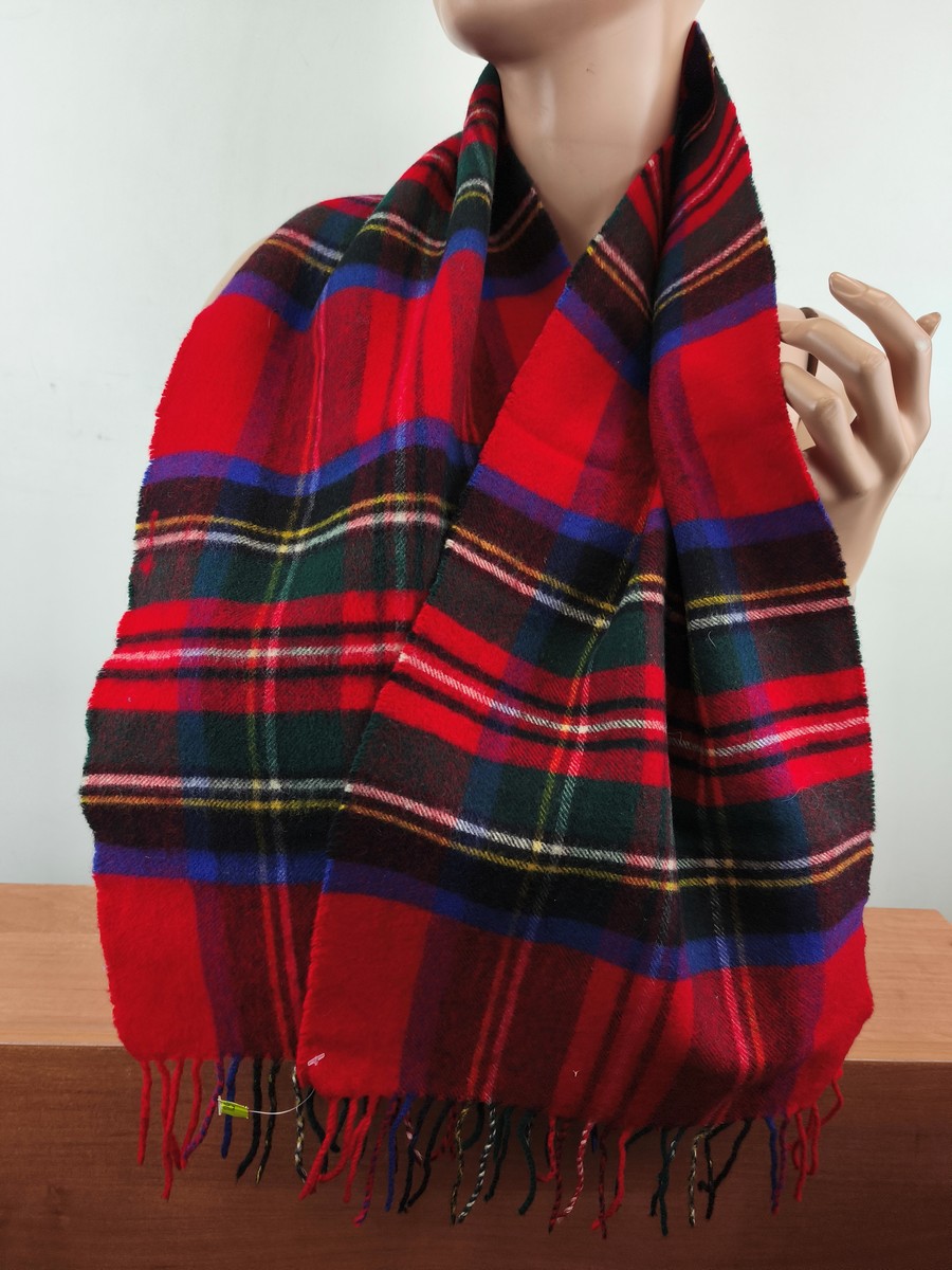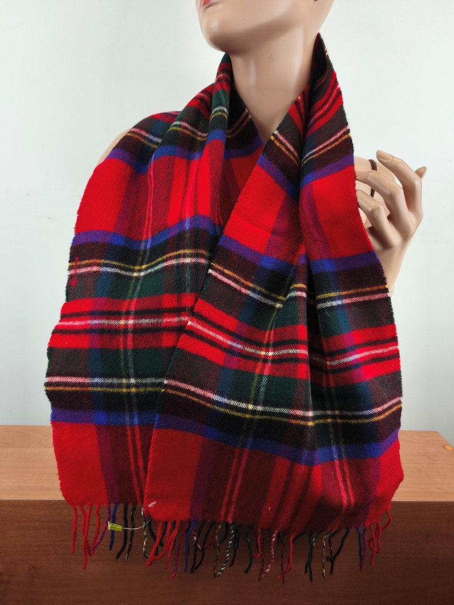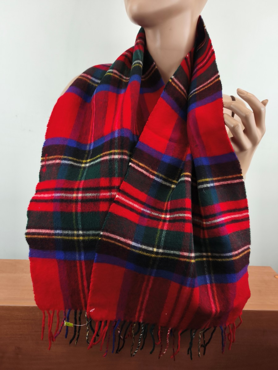 klasyczny szalik welna 100% pure new wool 0700014 krata czerwony z zielenią