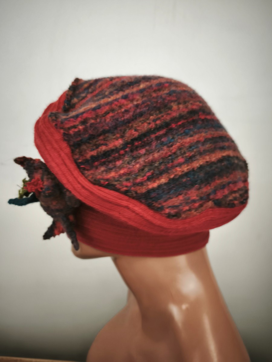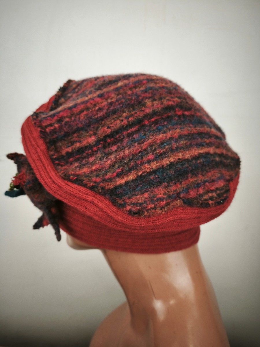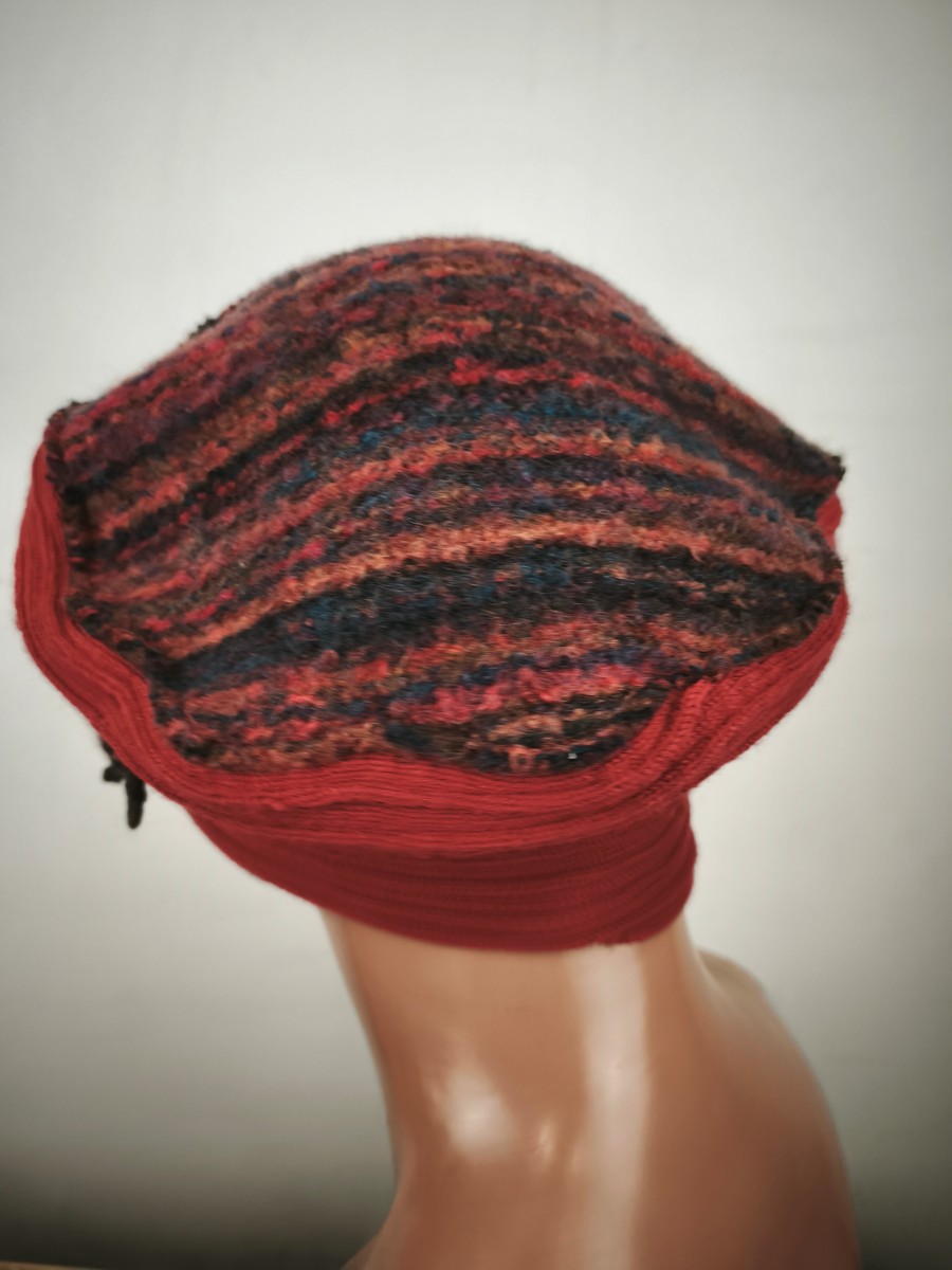 czapka damska - wełna parzona -gotowana lekka plus dzianina wełniana