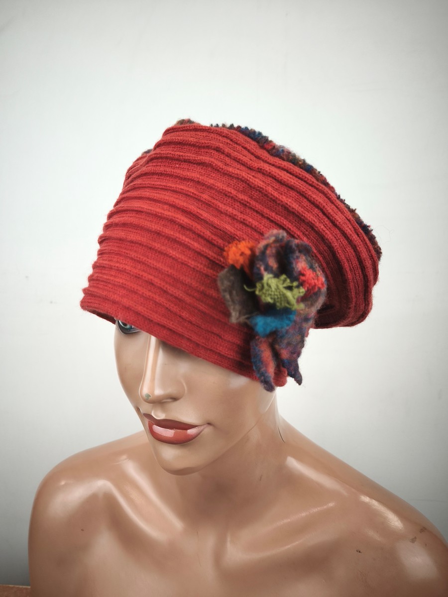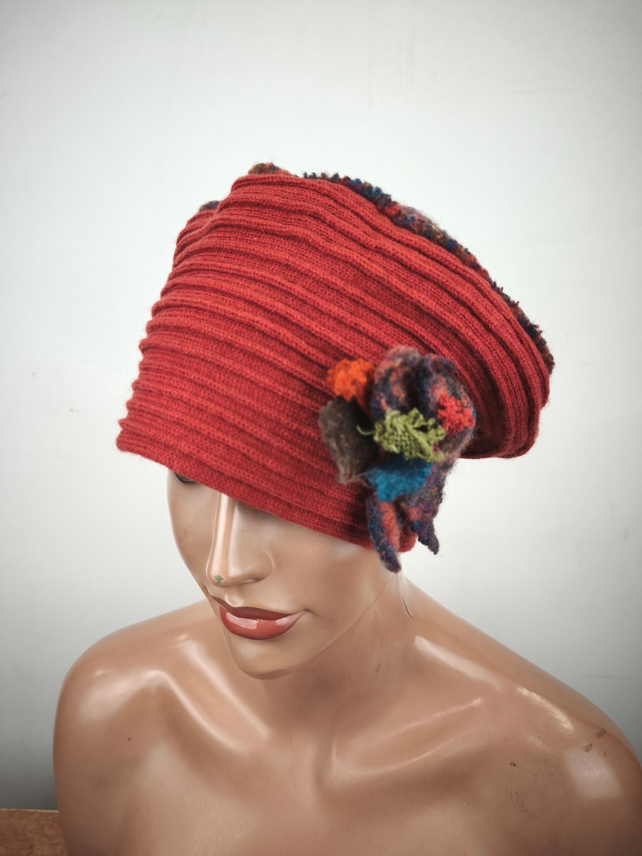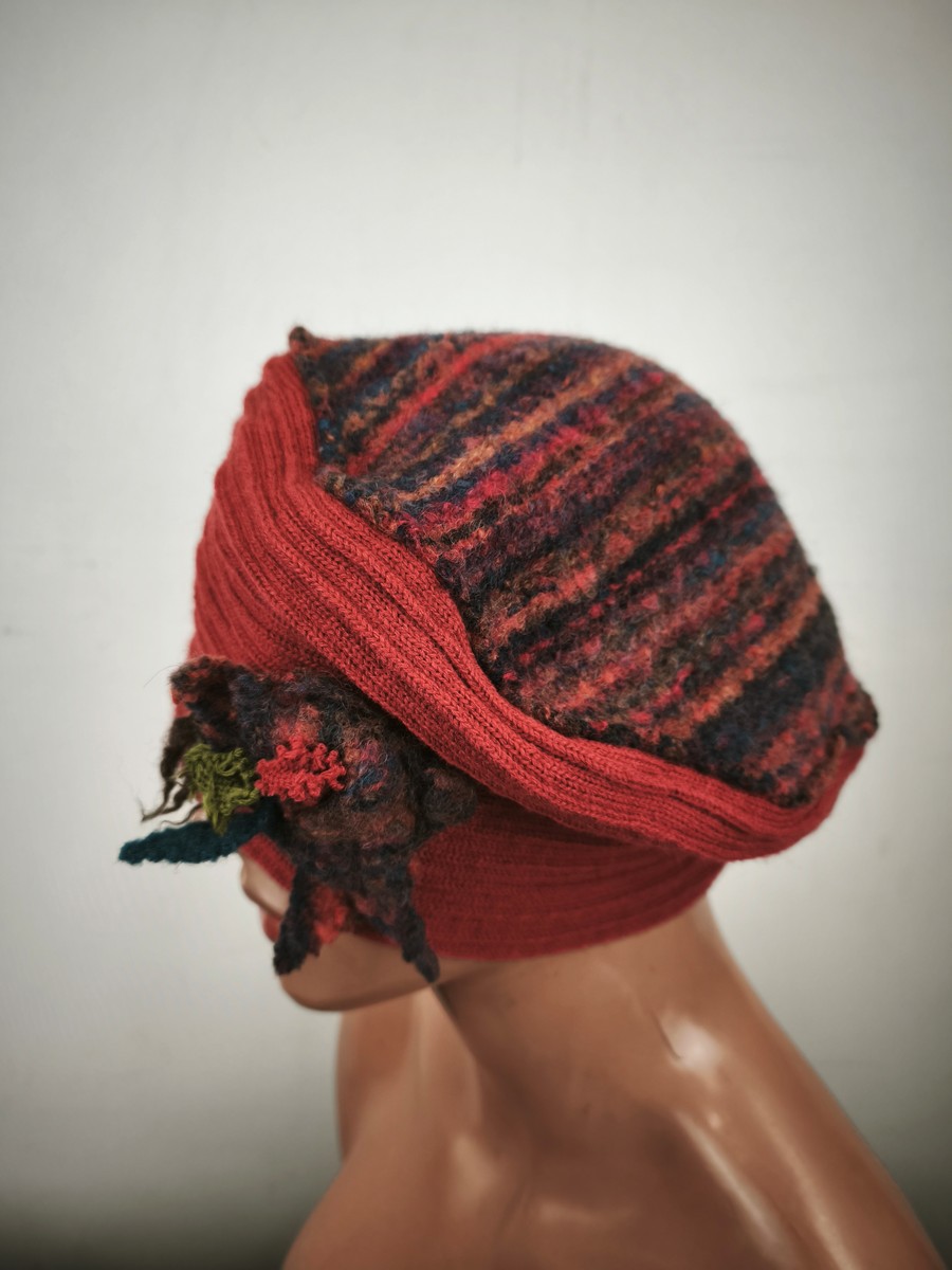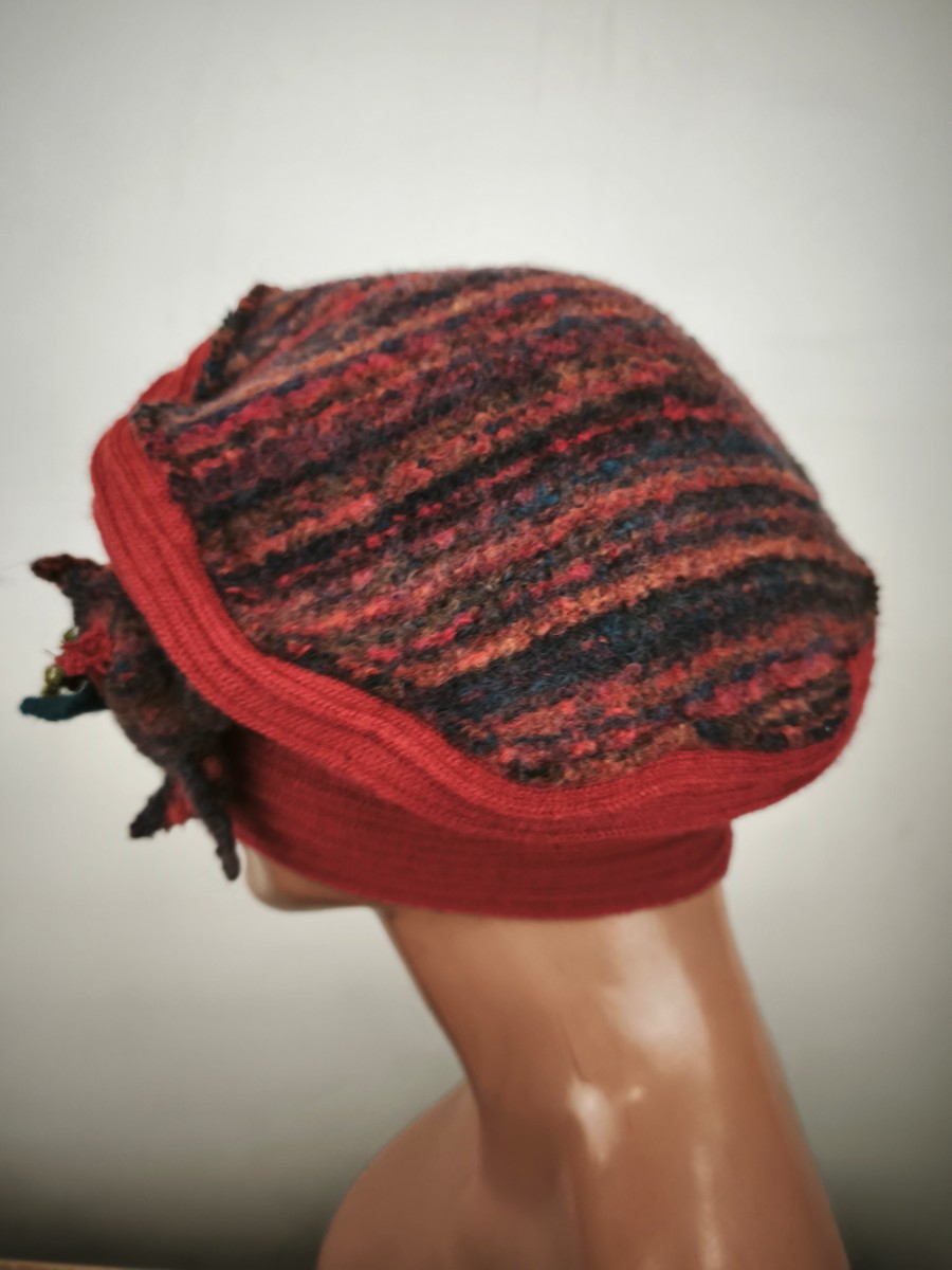 czapka damska - wełna parzona -gotowana lekka plus dzianina wełniana