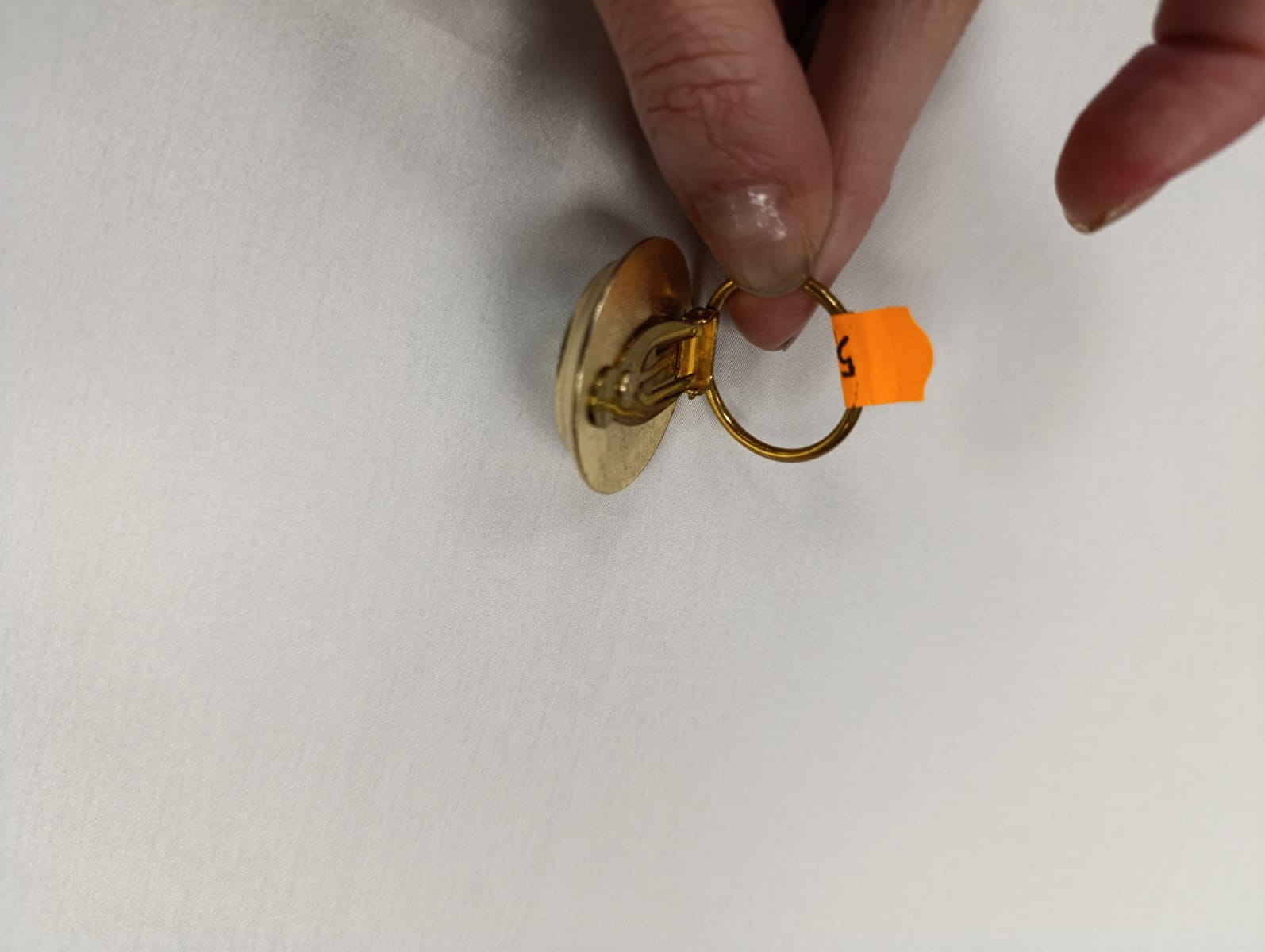 przez kółeczko z tyłu przeciąga się końcówki szala lub apaszki i klika zapina jak klips
