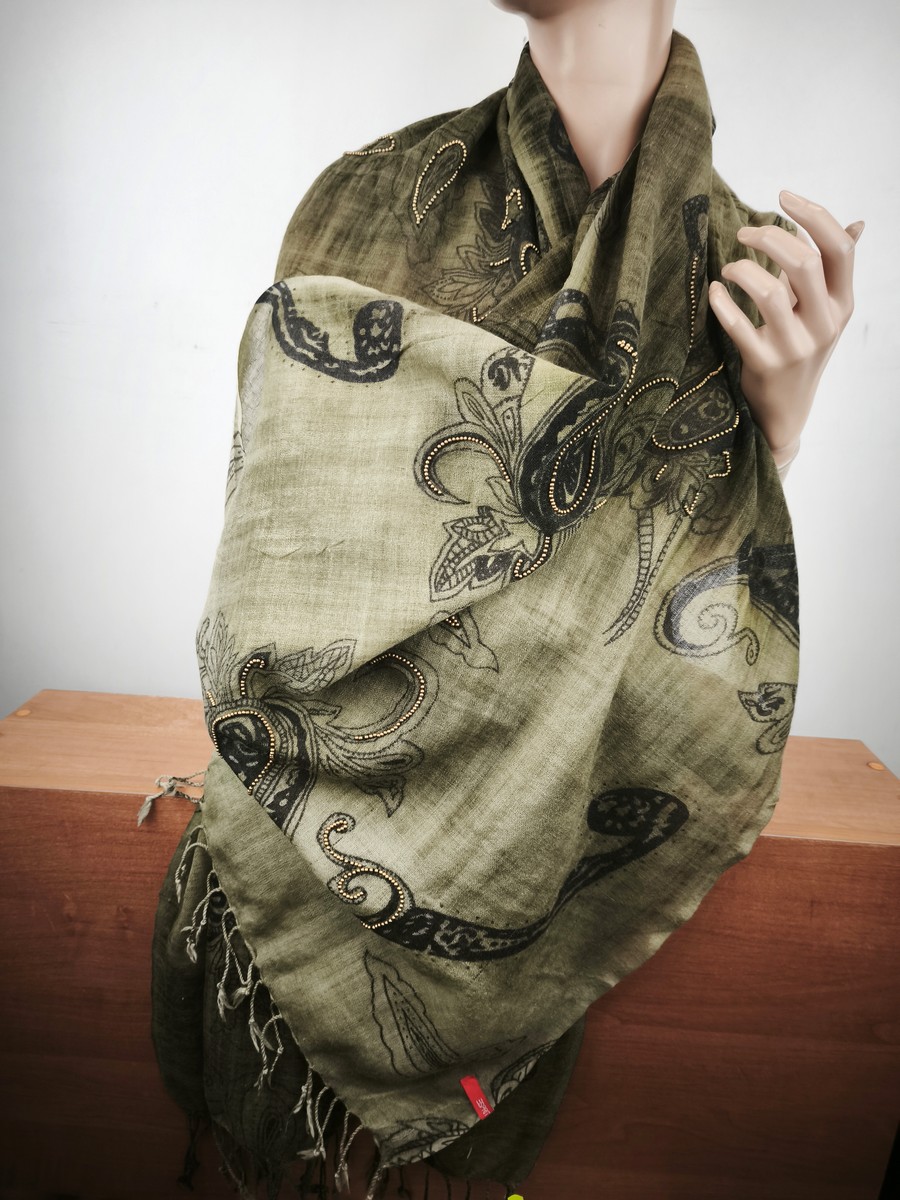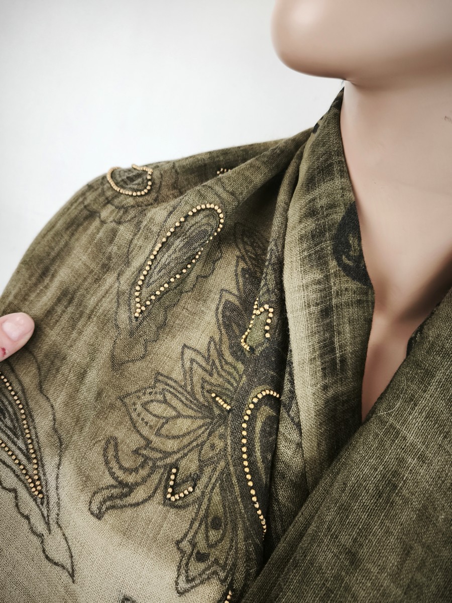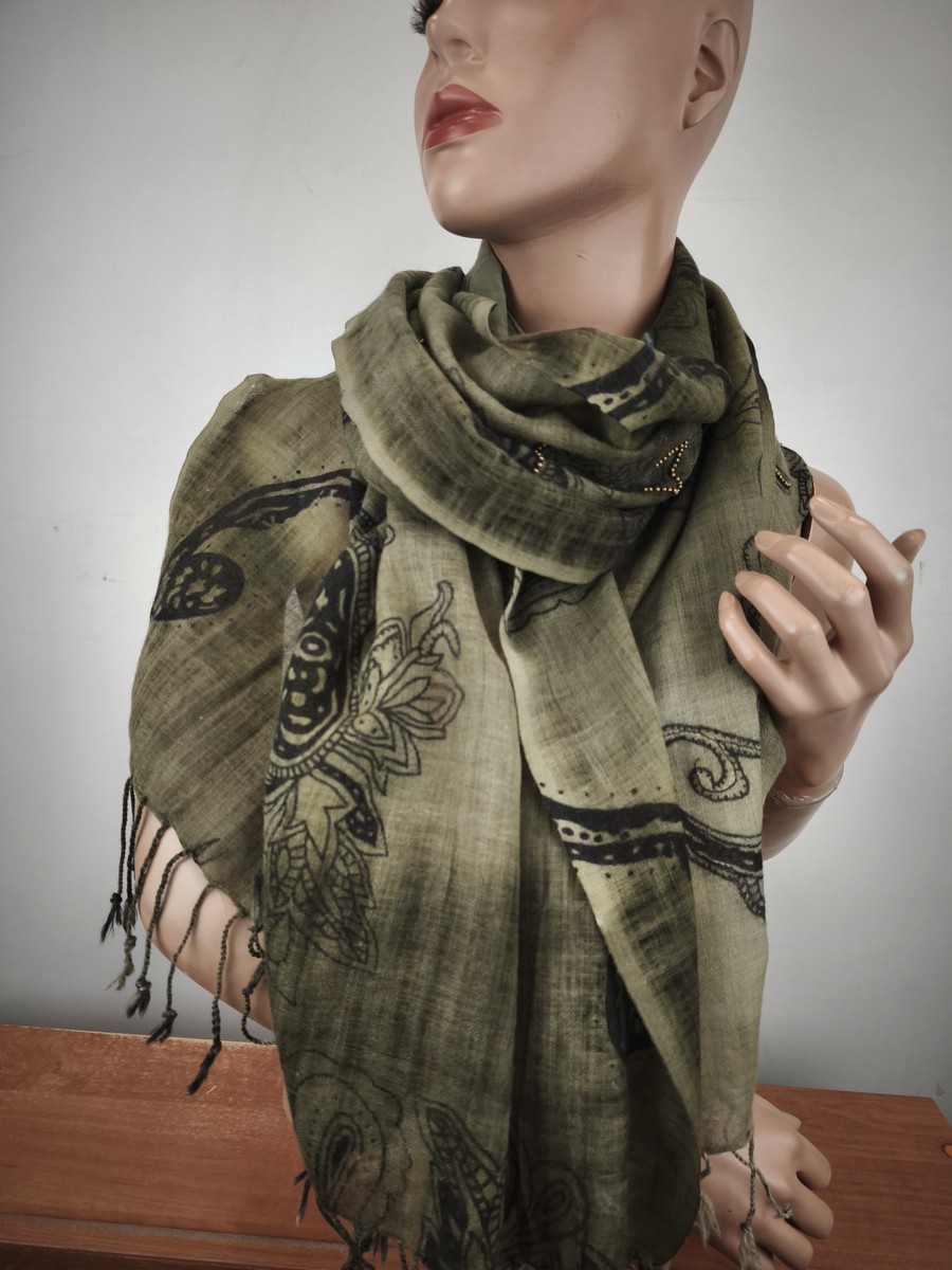 szal cienka wełenka mgiełka ITALY 055544 / 70x180 cm oliwka