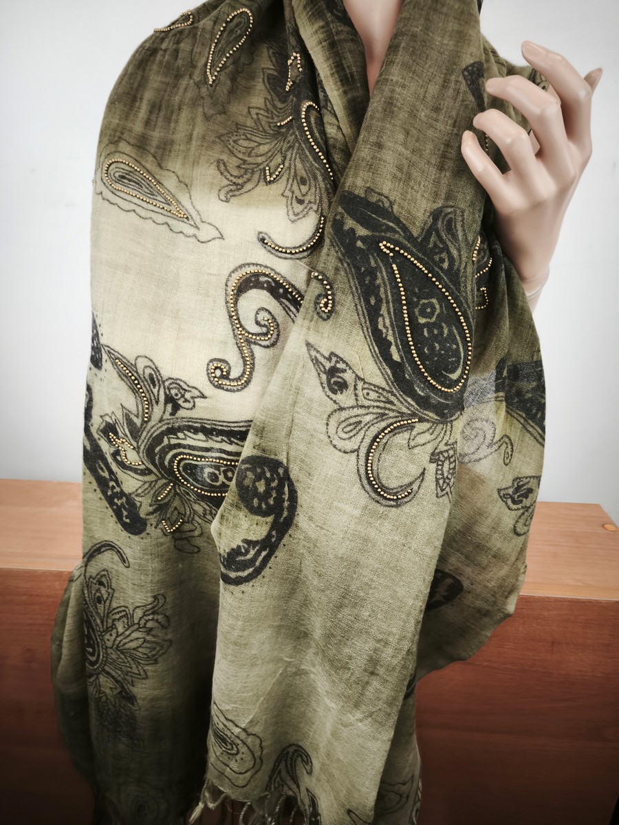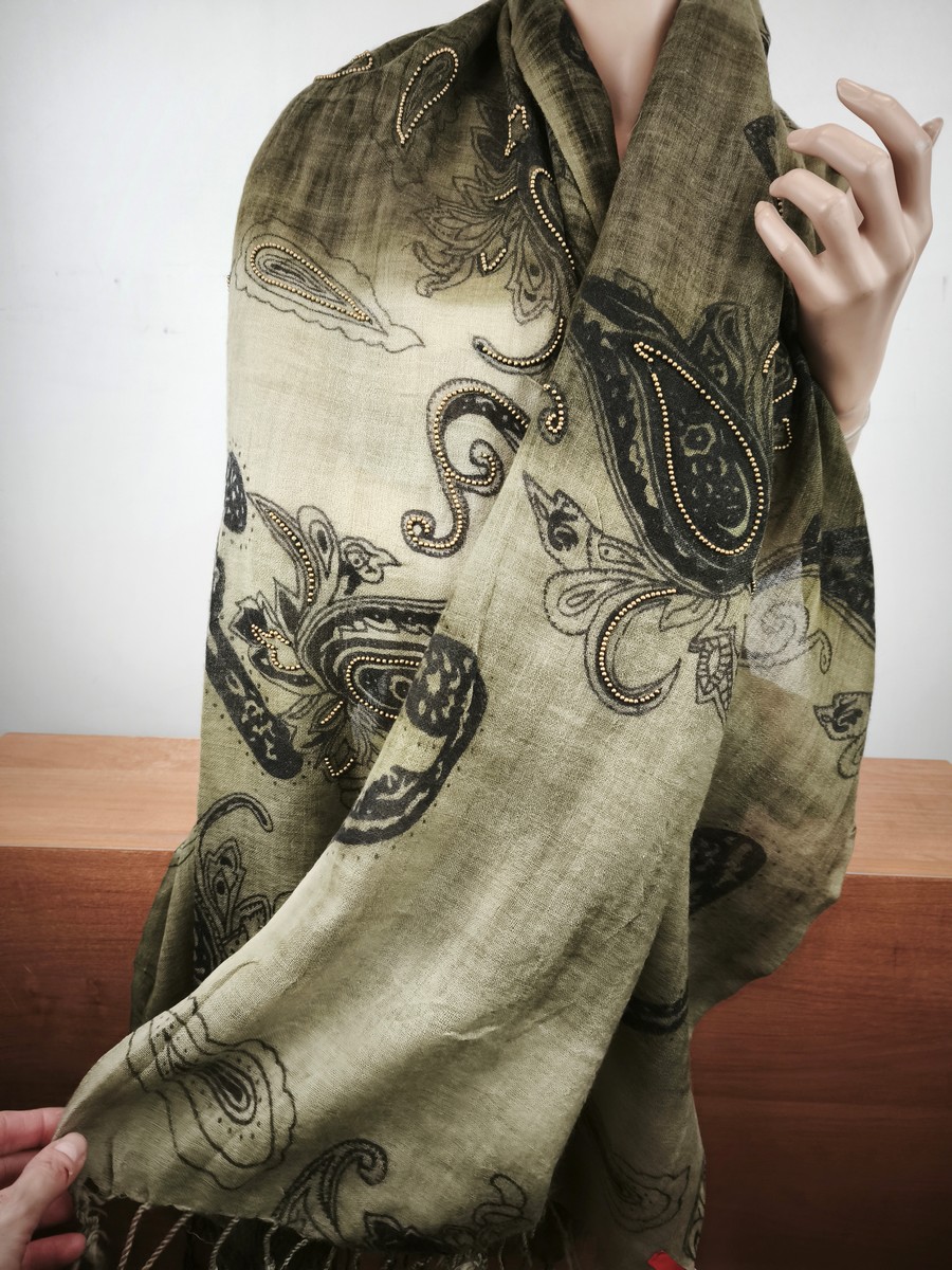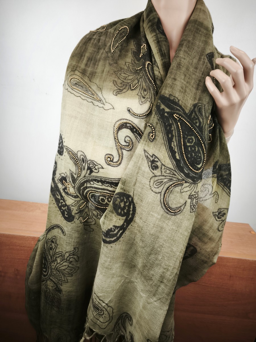 szal cienka wełenka mgiełka ITALY 055544 / 70x180 cm oliwka
