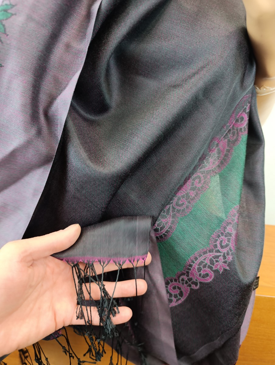 duży - pięknie można drapować ,kryjący-nie przeźroczysty, połysk-opalizujący pięknie się układa , idealny do sukni, wieczorowego stroju