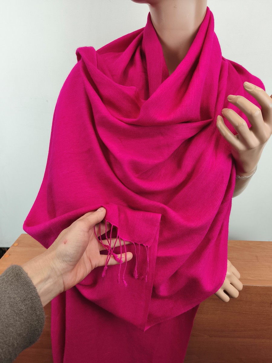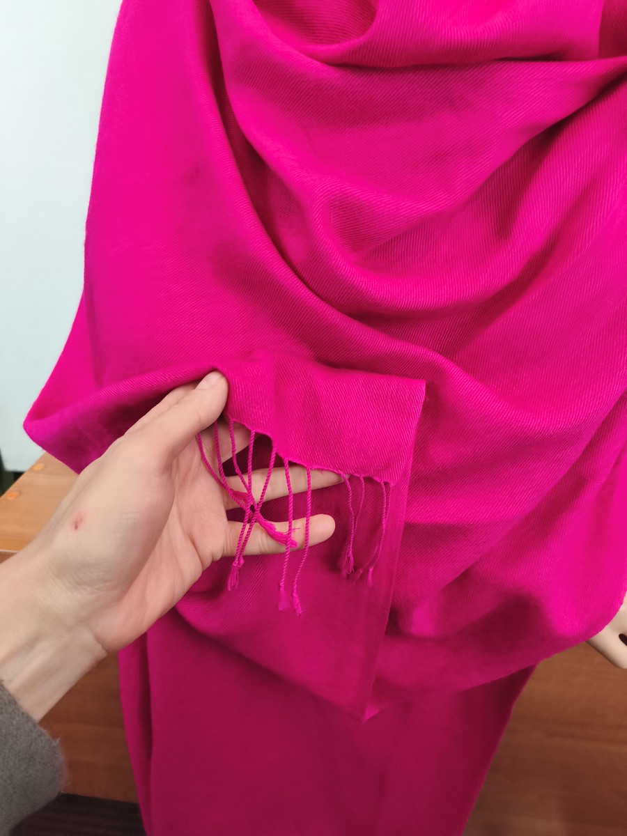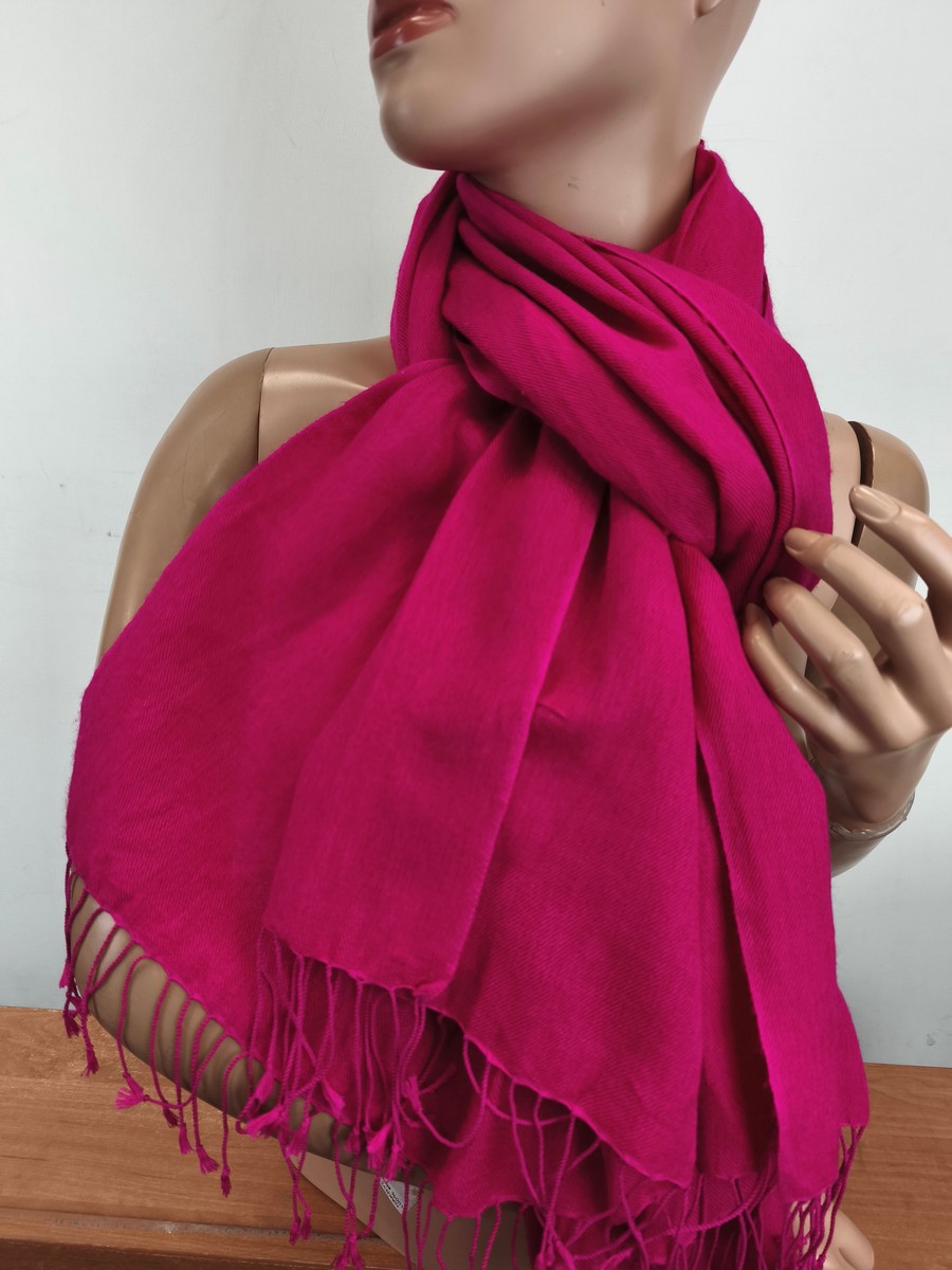 szal jedwab z wełną PASHMINA oryginalna 0055811 fuksja róż