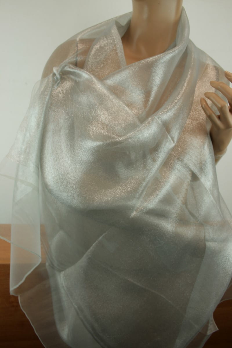 szal jedwabny wieczorowy 2-warstwowy srebro mgiełka LD 0047320
