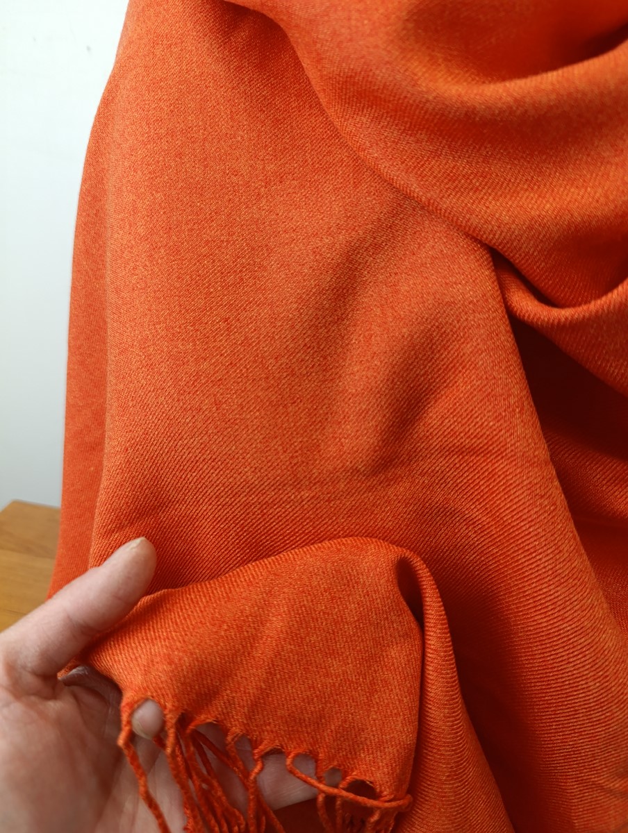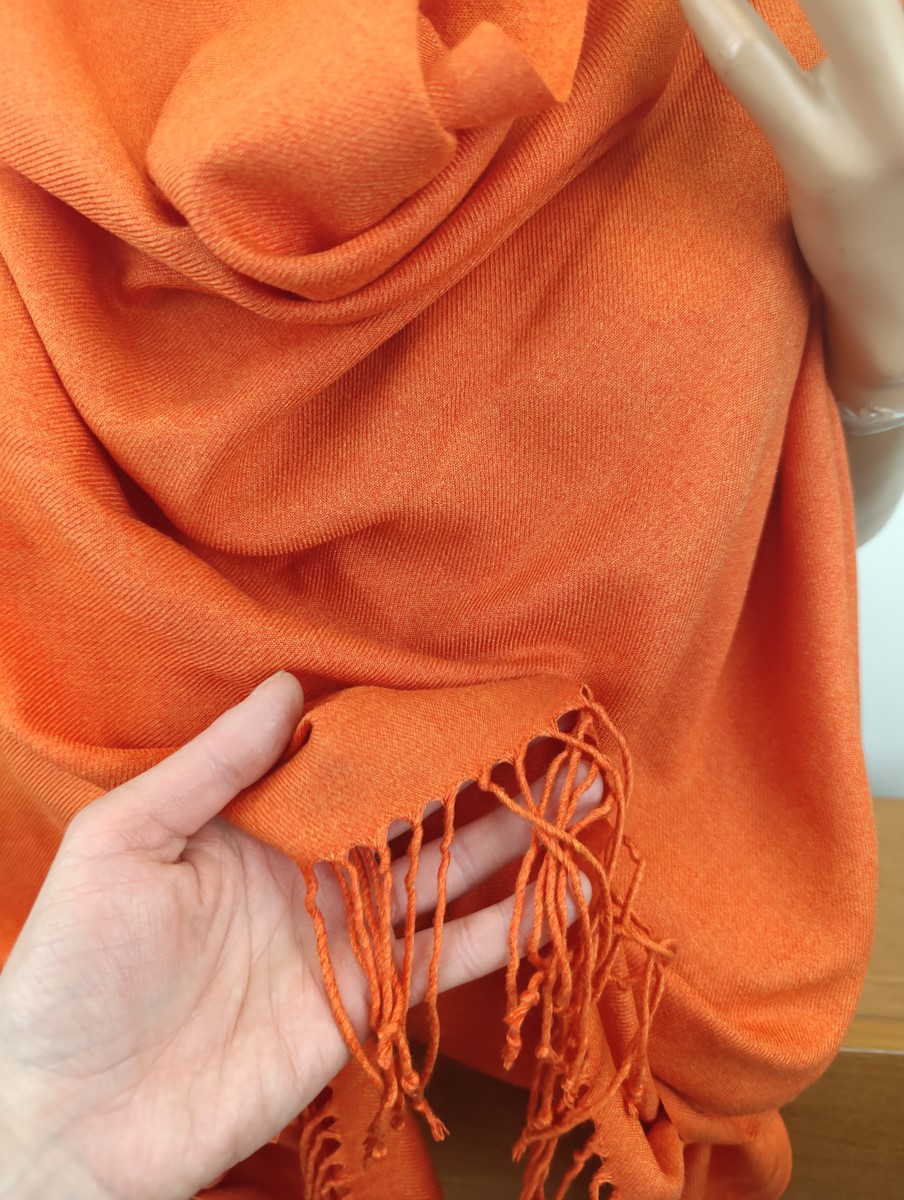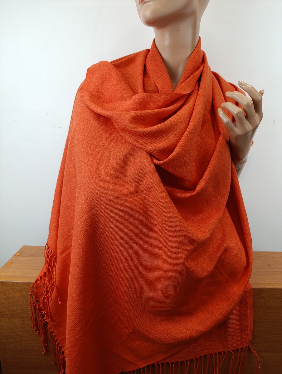 szal kaszmir z wełną PASHMINA 008199 / 75x200 cm oranż