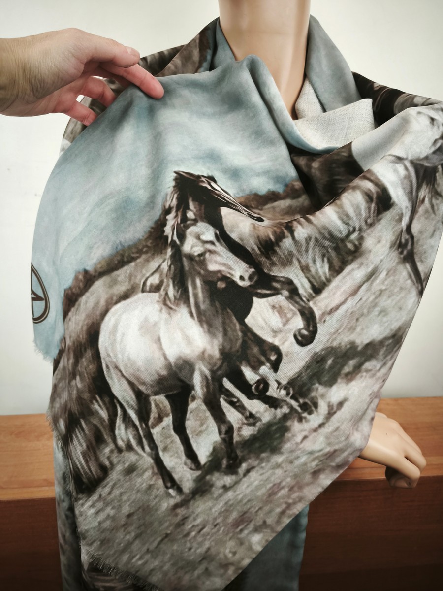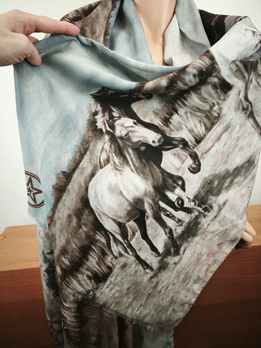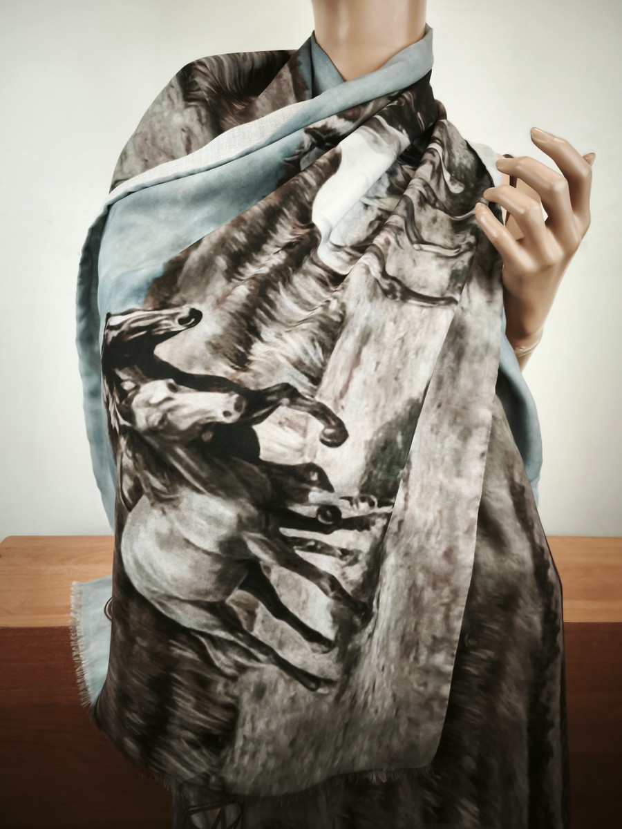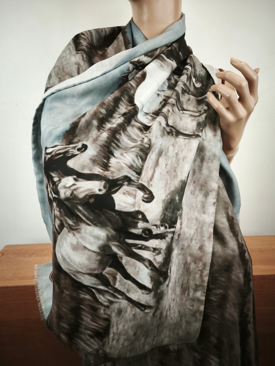 szal lejący jedwab z wiskozą podwójny na ramiona i pod szyję apaszka 005410 konie