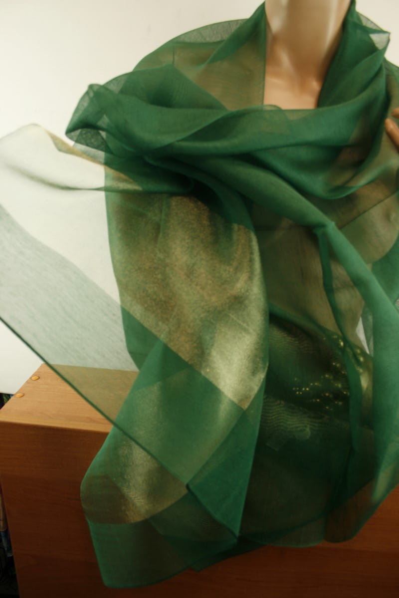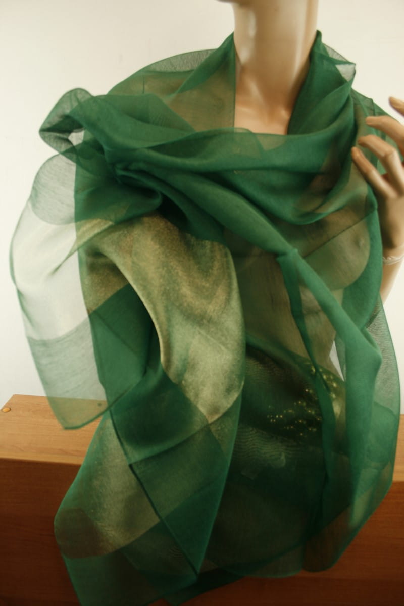 szal wieczorowy do sukienki jedwabny JZ 0077069 zieleń butelka szmaragd