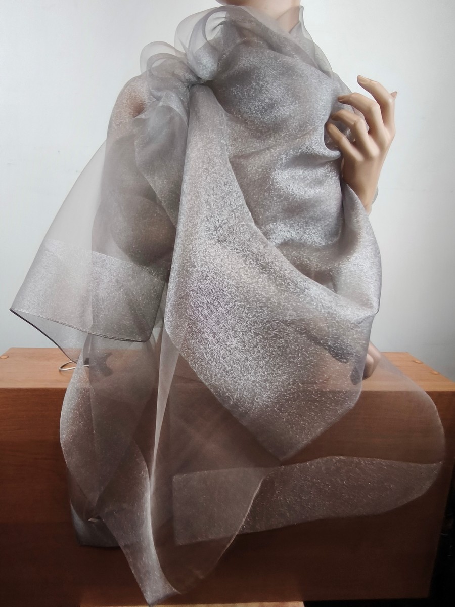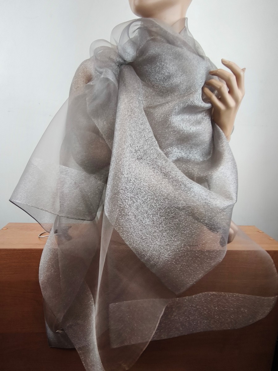 szal wieczorowy jedwabny 2-warstwy LD 094225 popiel kamienny beżowaty ze srebrem