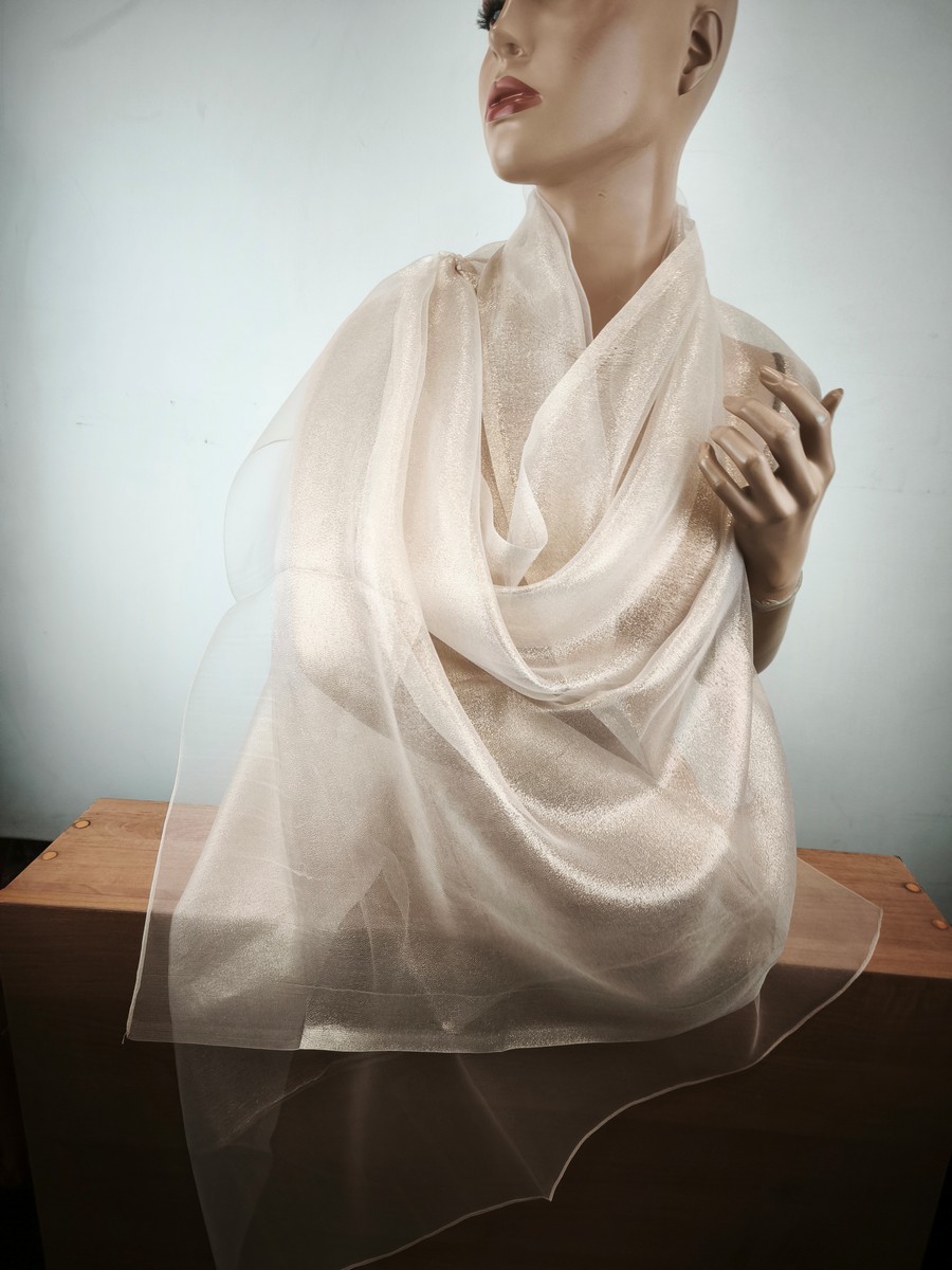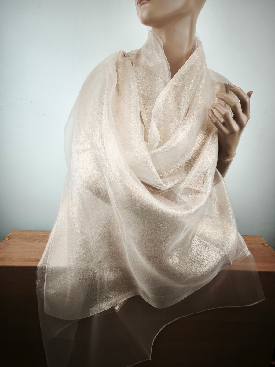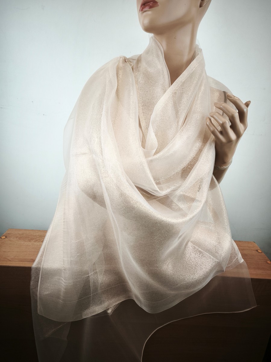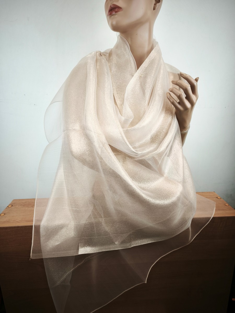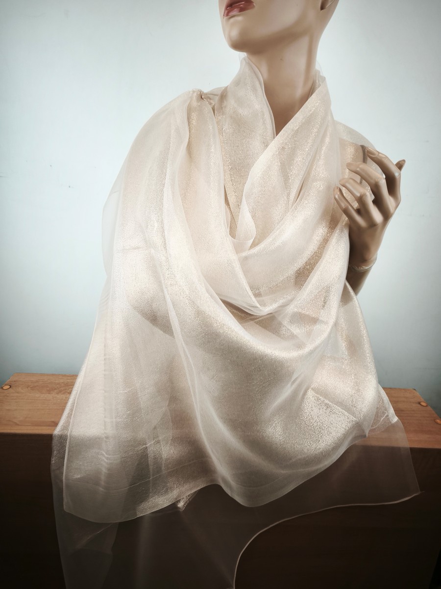 szal wieczorowy jedwabny jasne złoto na bezu cielistym / 2 warstwy LD 037767