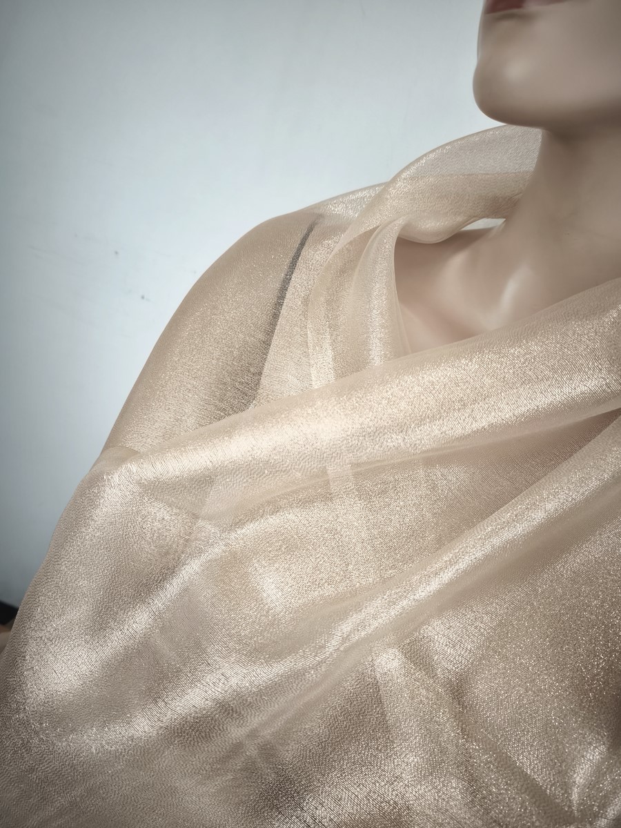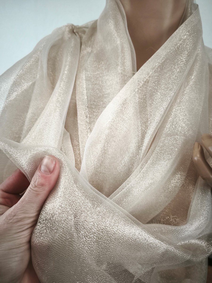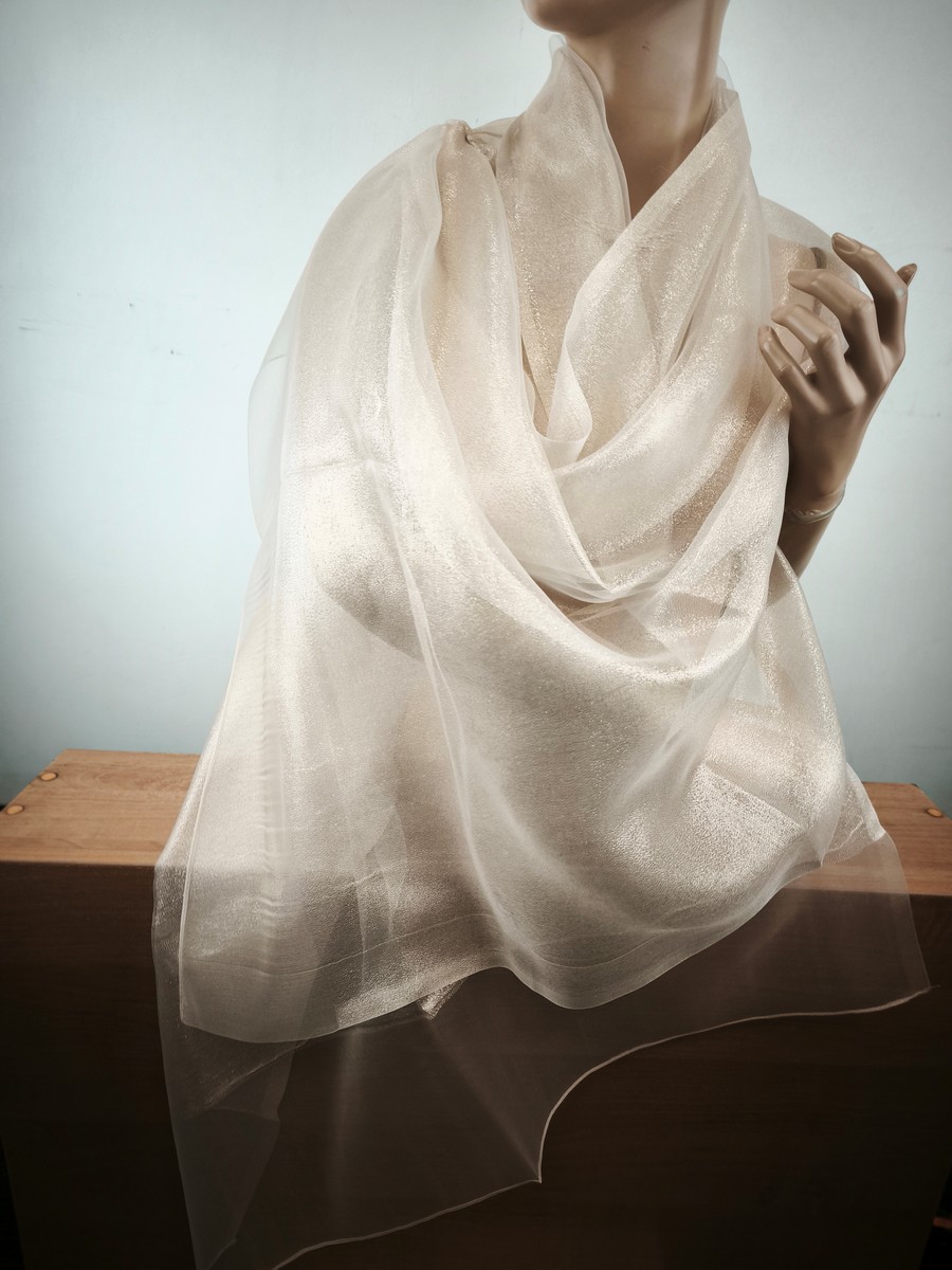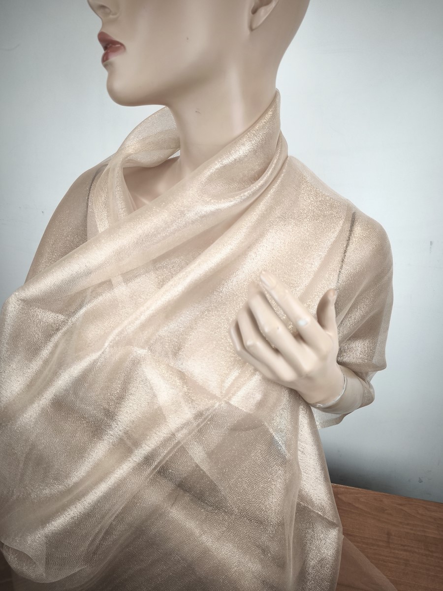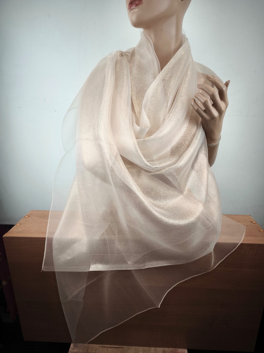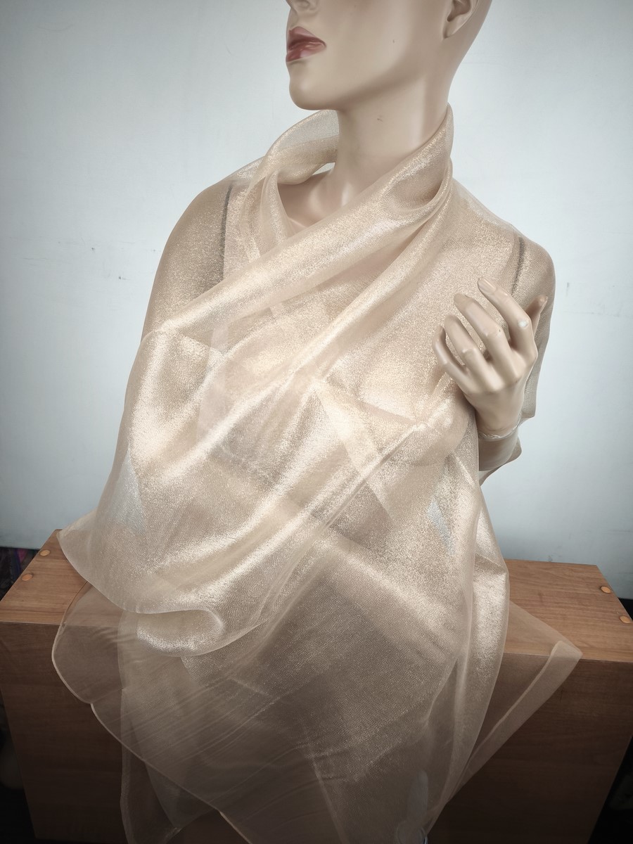 szal wieczorowy jedwabny jasne złoto na bezu cielistym / 2 warstwy LD 037767
