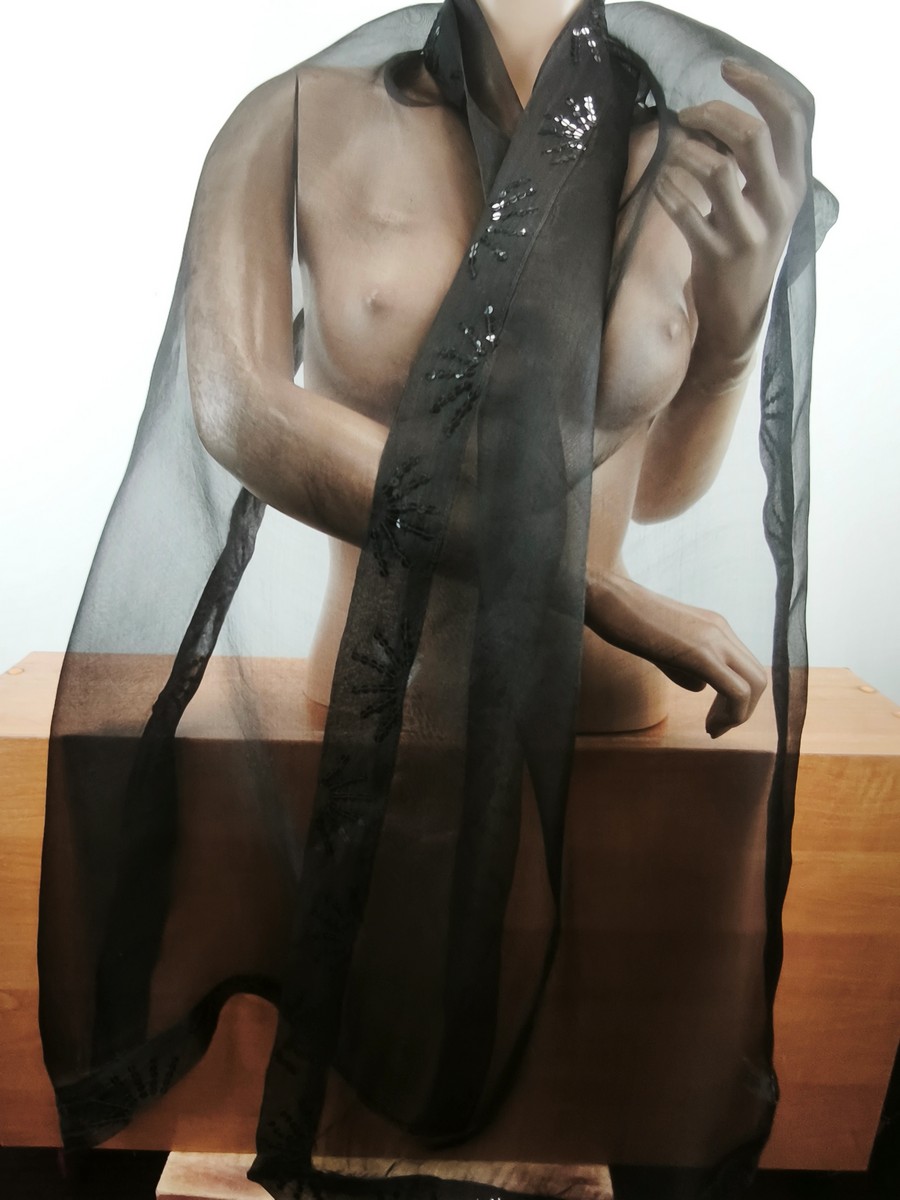 szal wieczorowy jedwabny mgiełka 006981 czarny