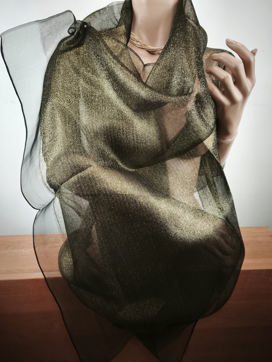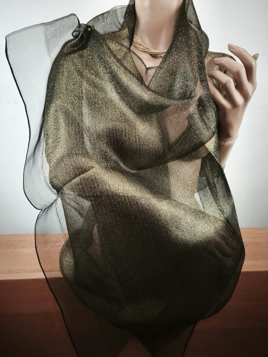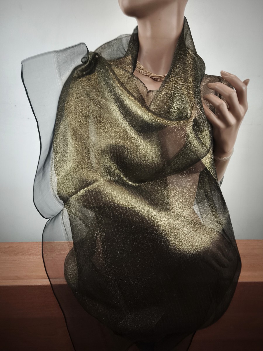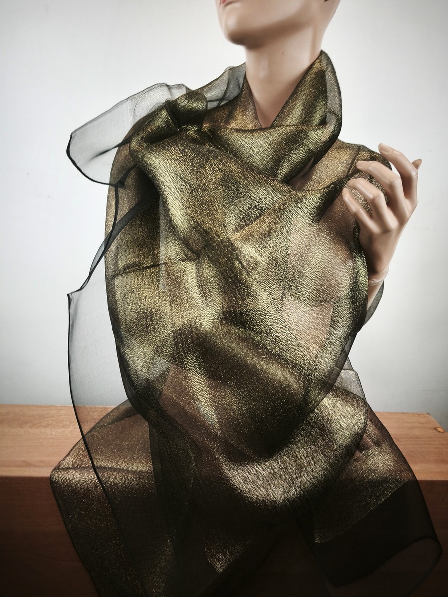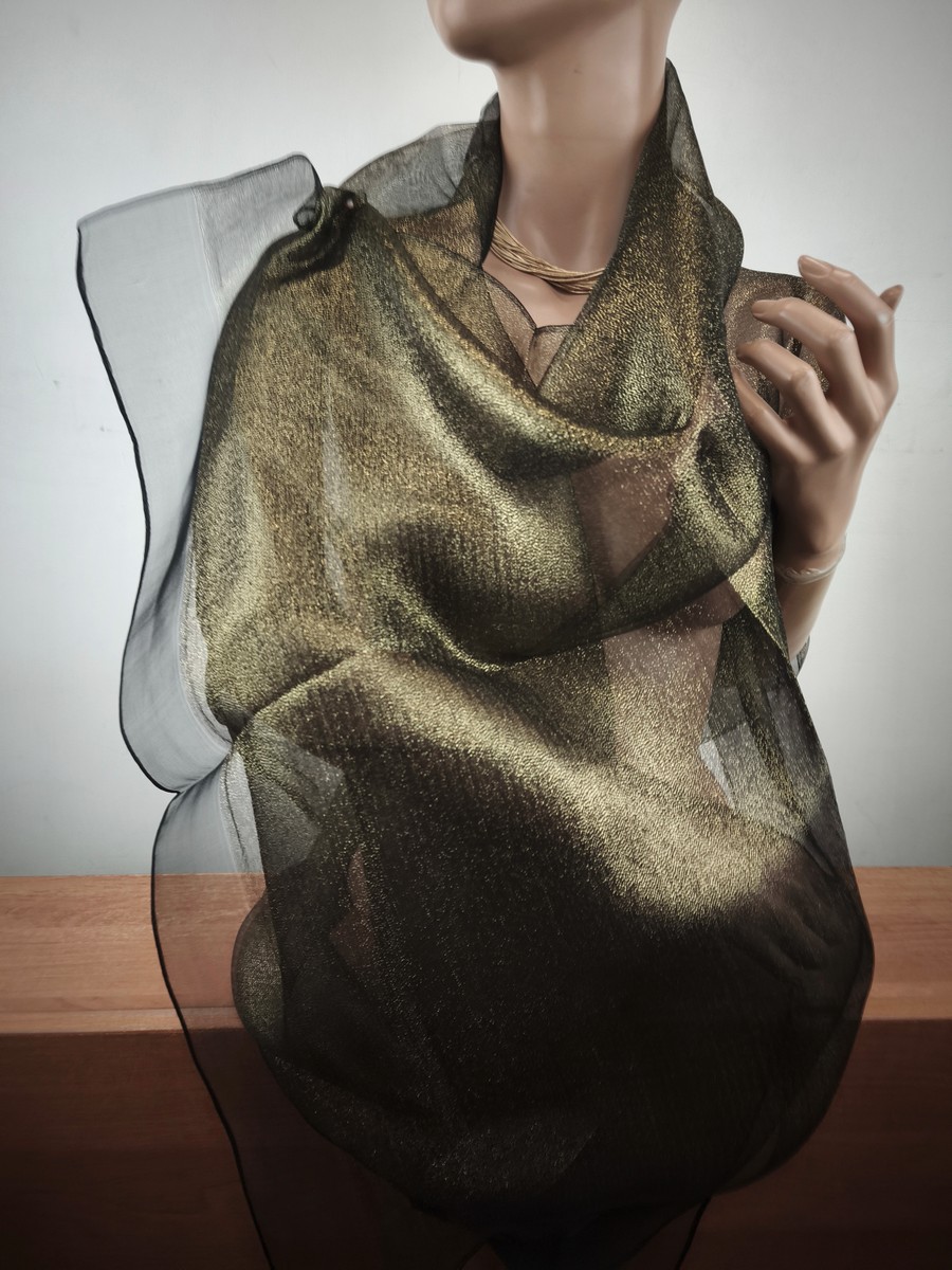 szal wieczorowy jedwabny mgiełka złoto-czarny LD 005273 butikdominiki.pl