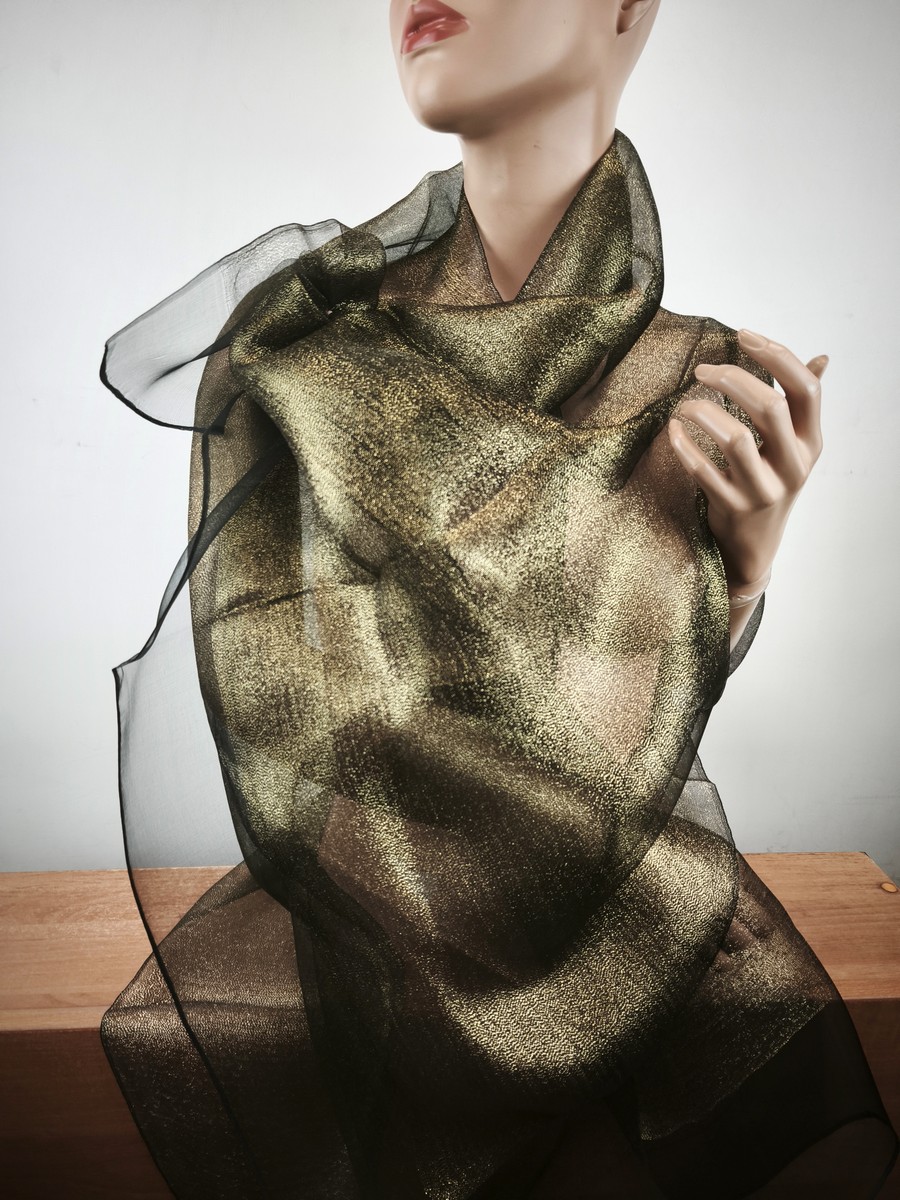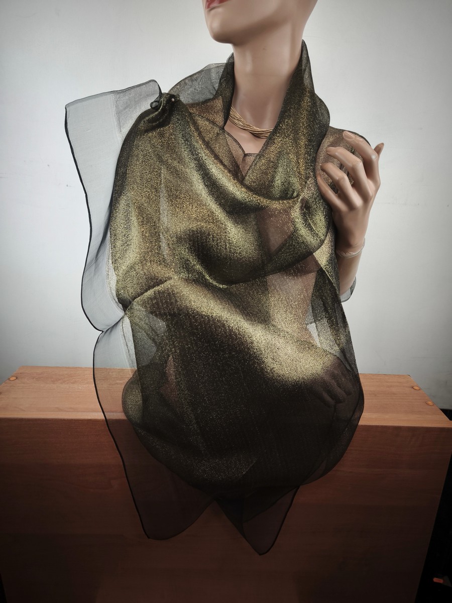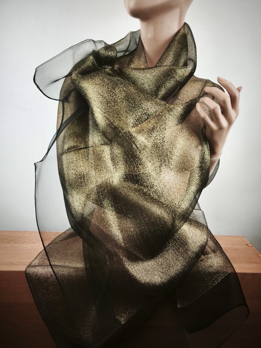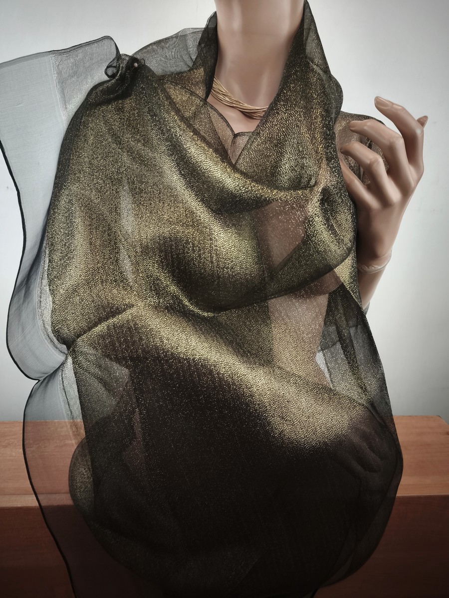 szal wieczorowy jedwabny mgiełka złoto-czarny LD 005273 butikdominiki.pl