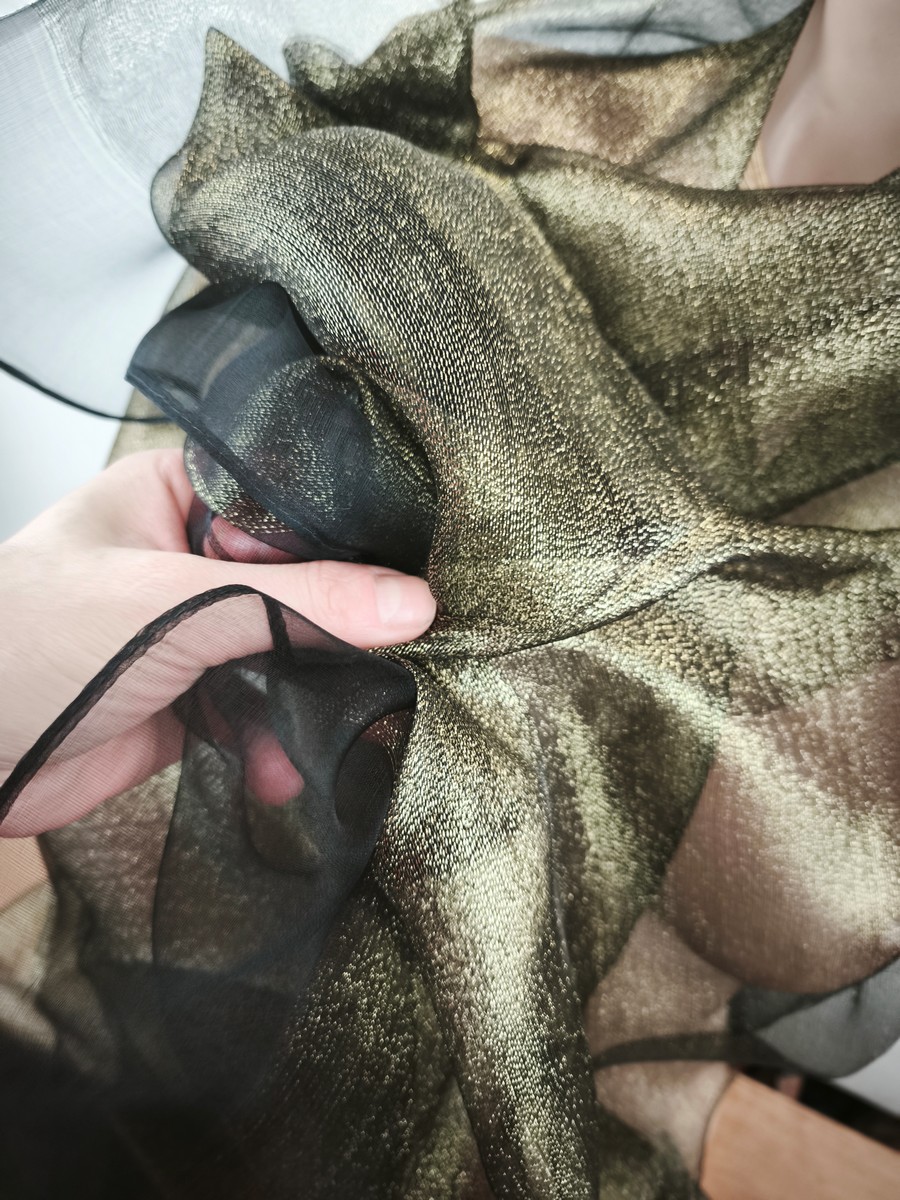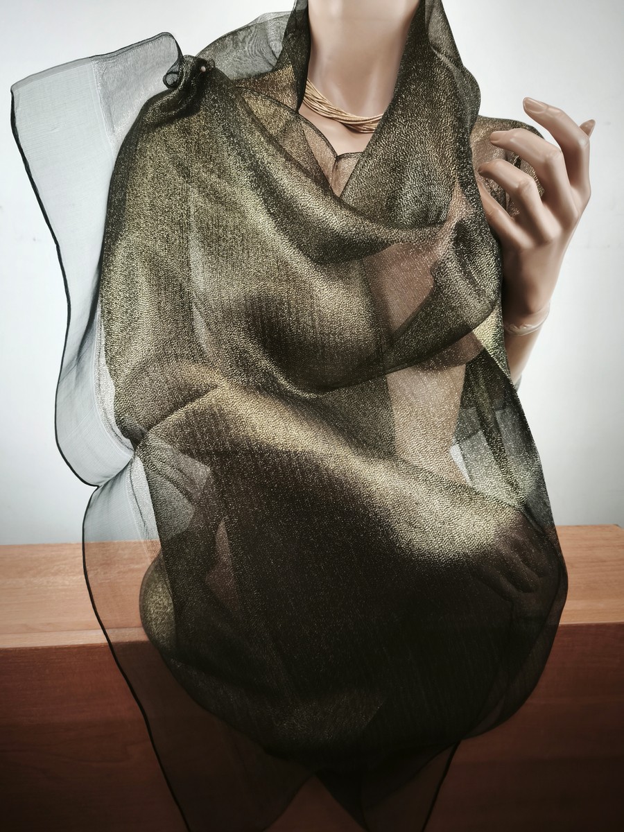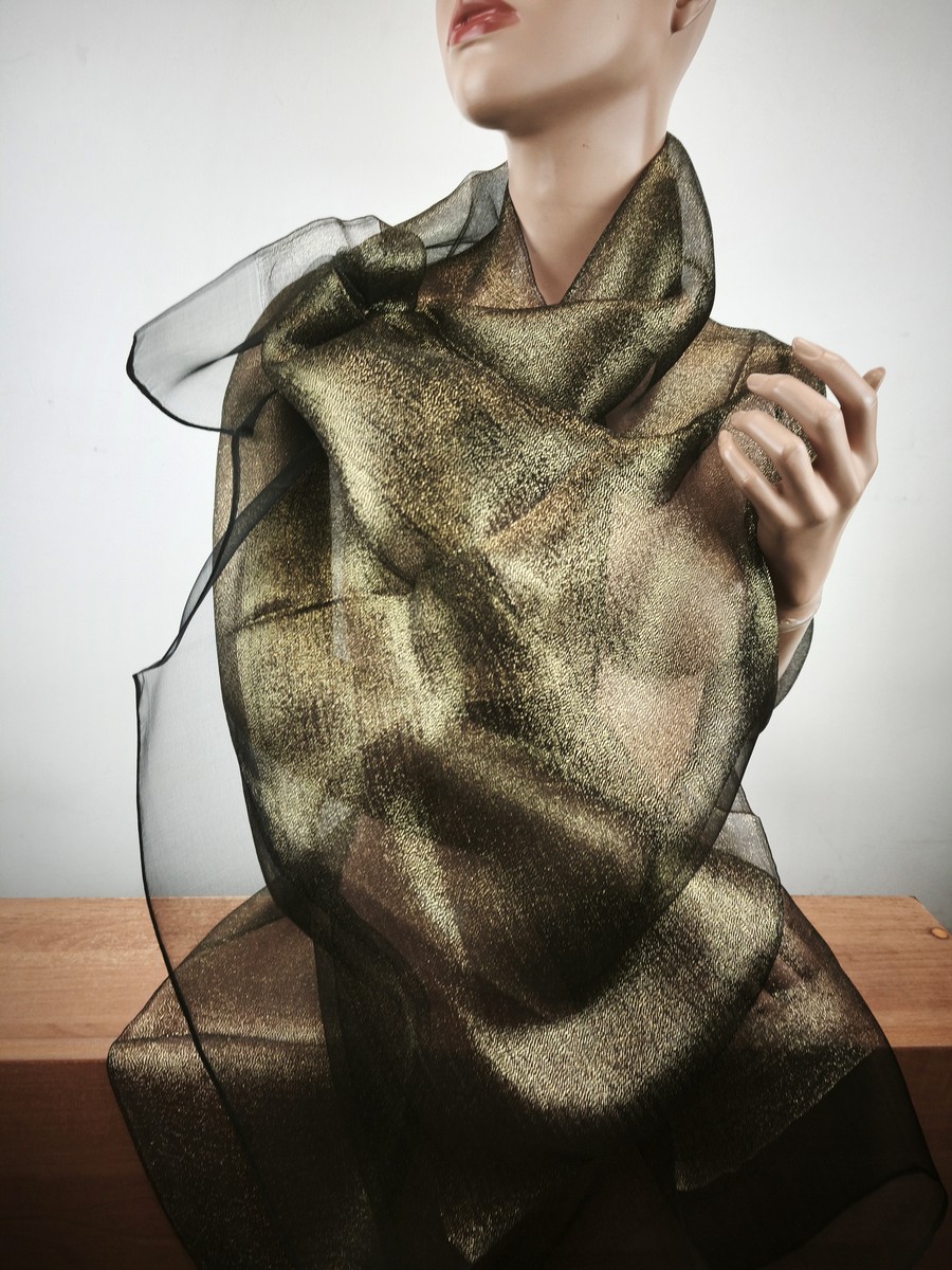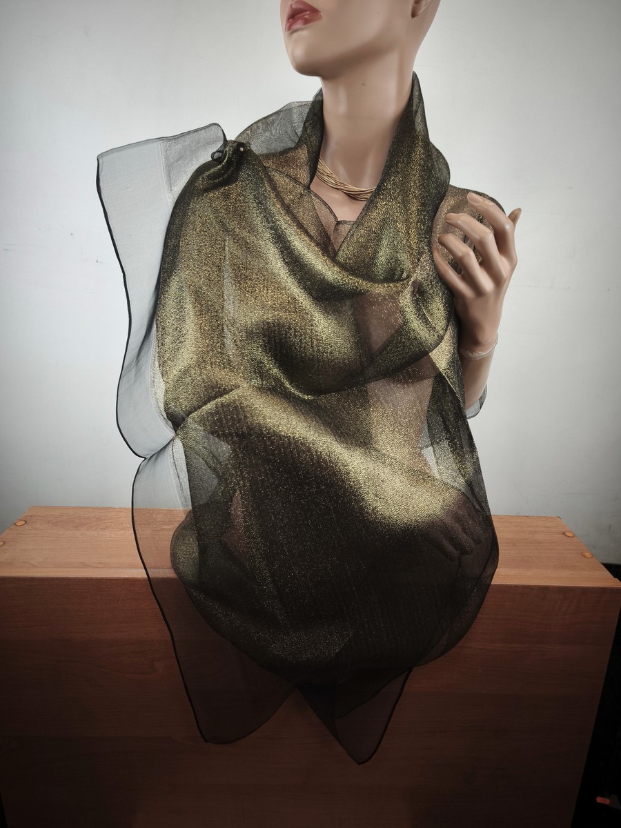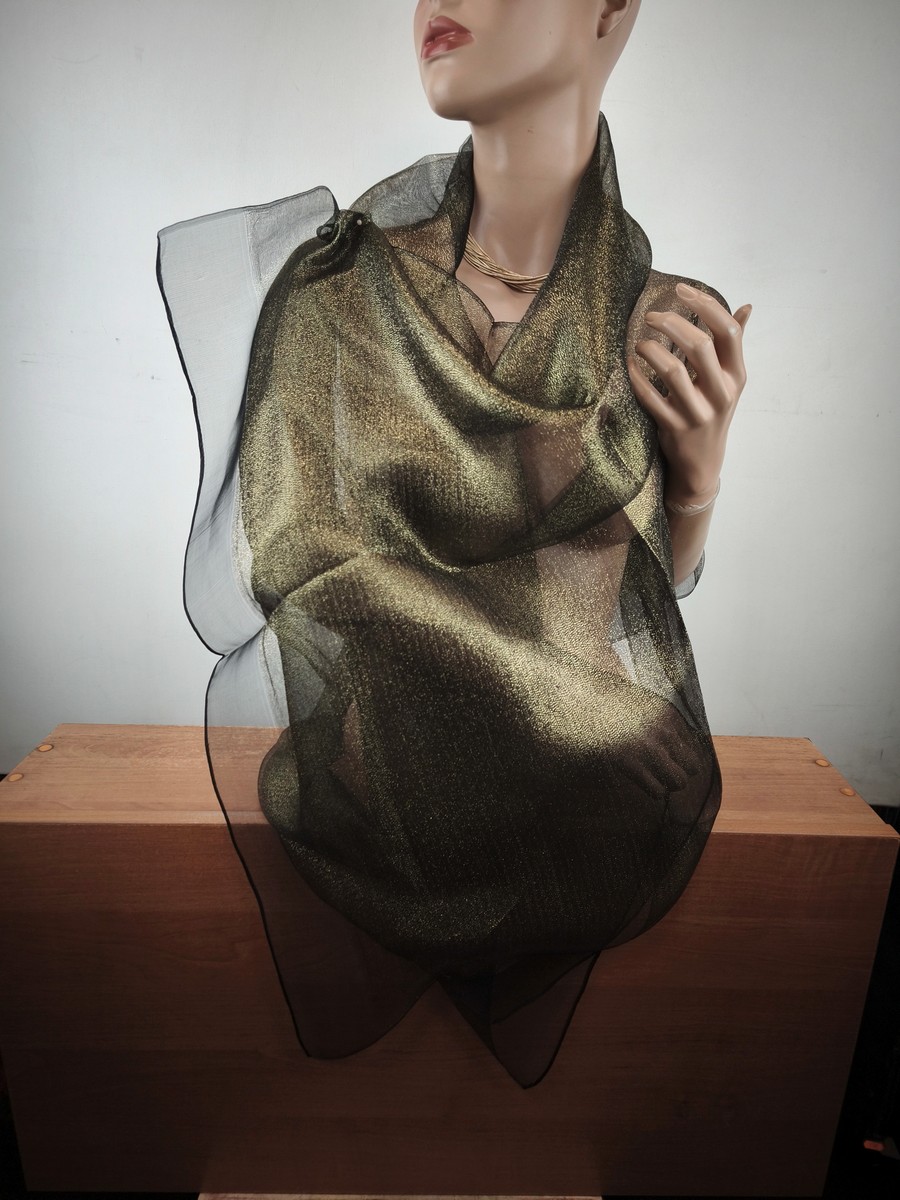szal wieczorowy jedwabny mgiełka złoto-czarny LD 005273 butikdominiki.pl