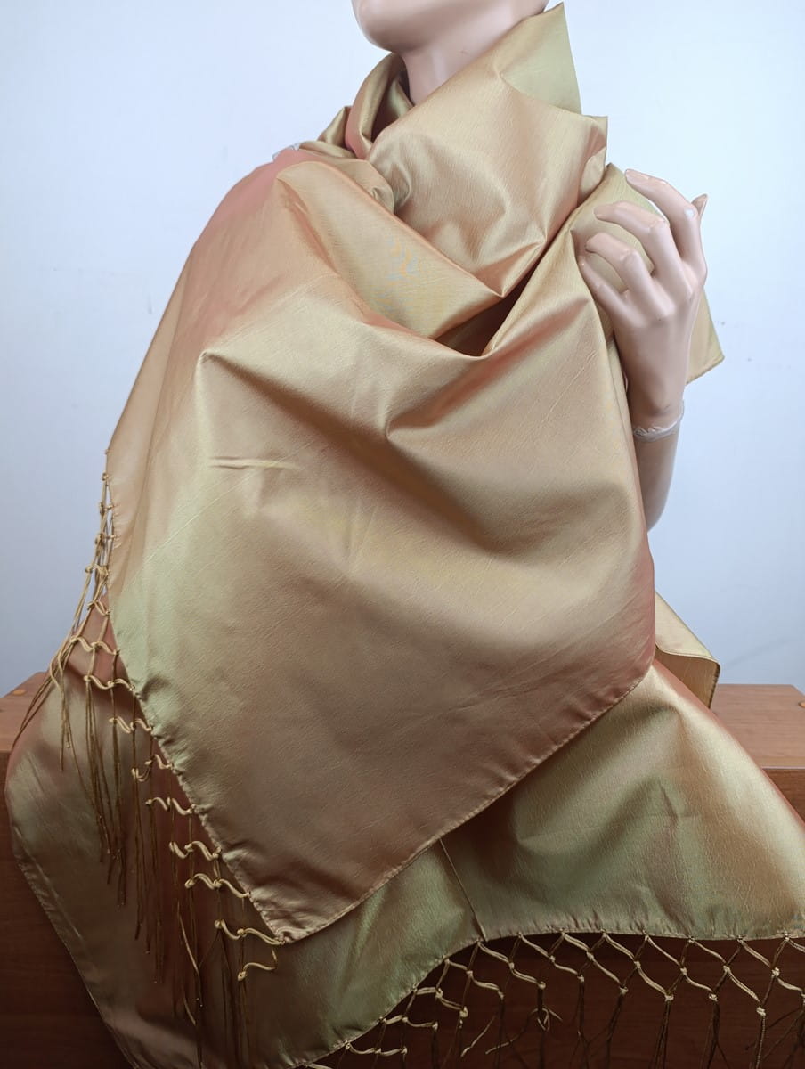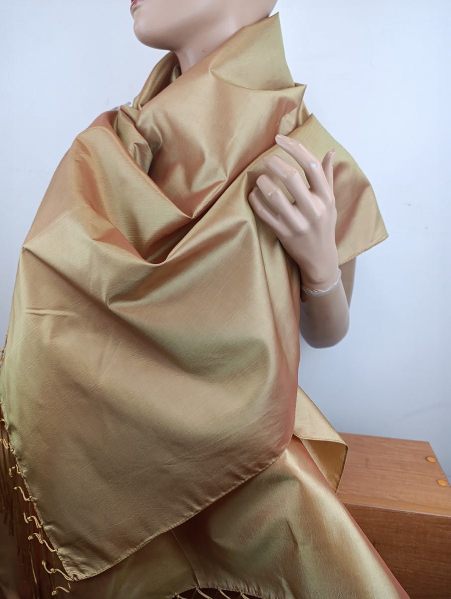 szal wieczorowy wizytowy 12955 duży TAFTA miodowy