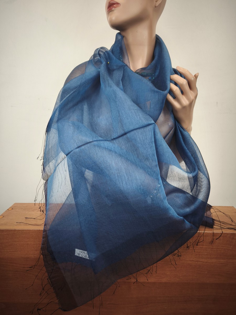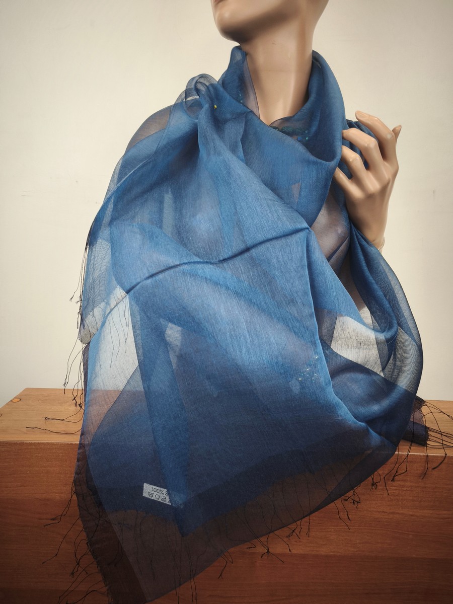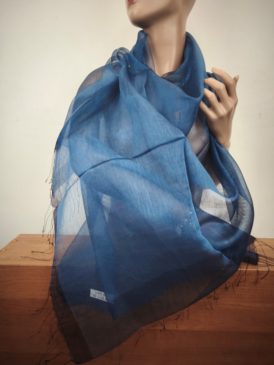 szal 100% jedwab surowy jedwab mgiełka, duży, pół przeźroczysty, lekki i delikatny (matowy)