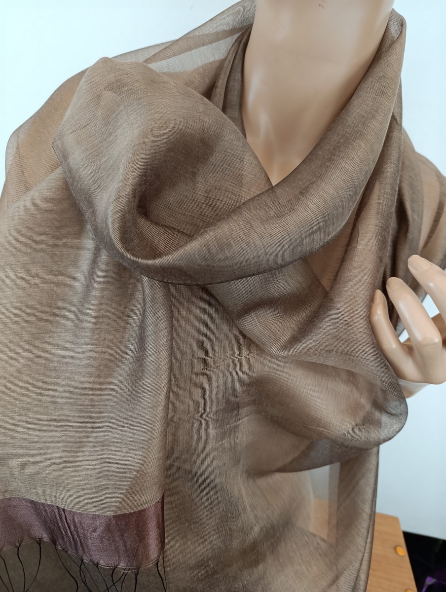 szal 100% jedwab surowy jedwab mgiełka, duży, pół przeźroczysty, lekki i delikatny (matowy)