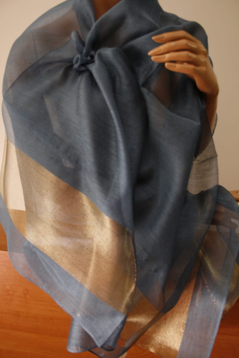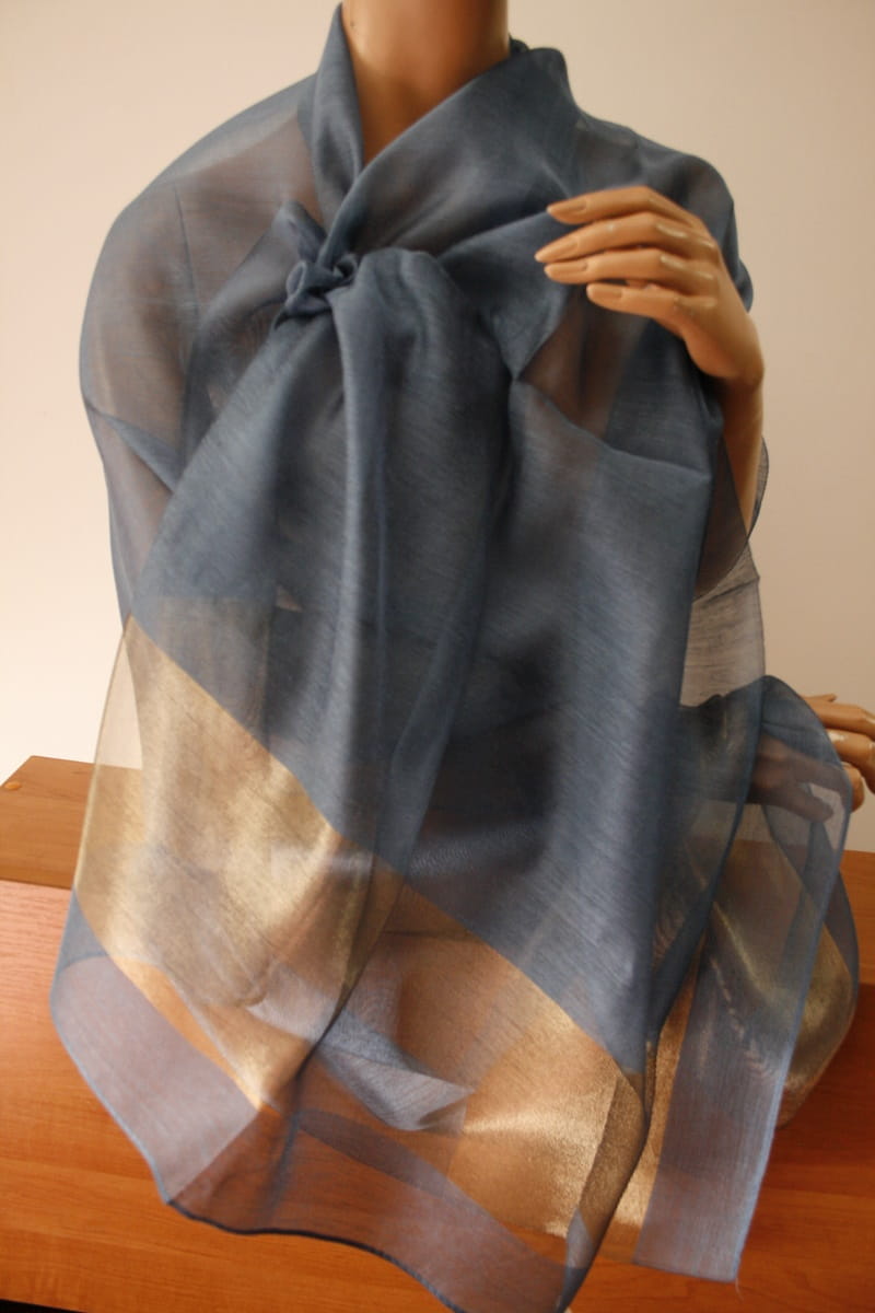 szal wizytowy niebieski-jeans JZ 9971 jedwabny szal butikdominiki.pl