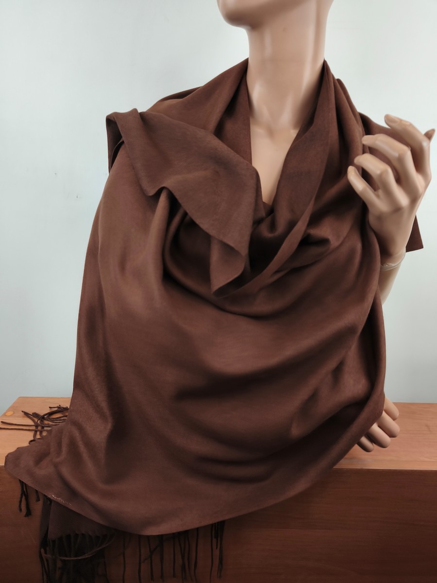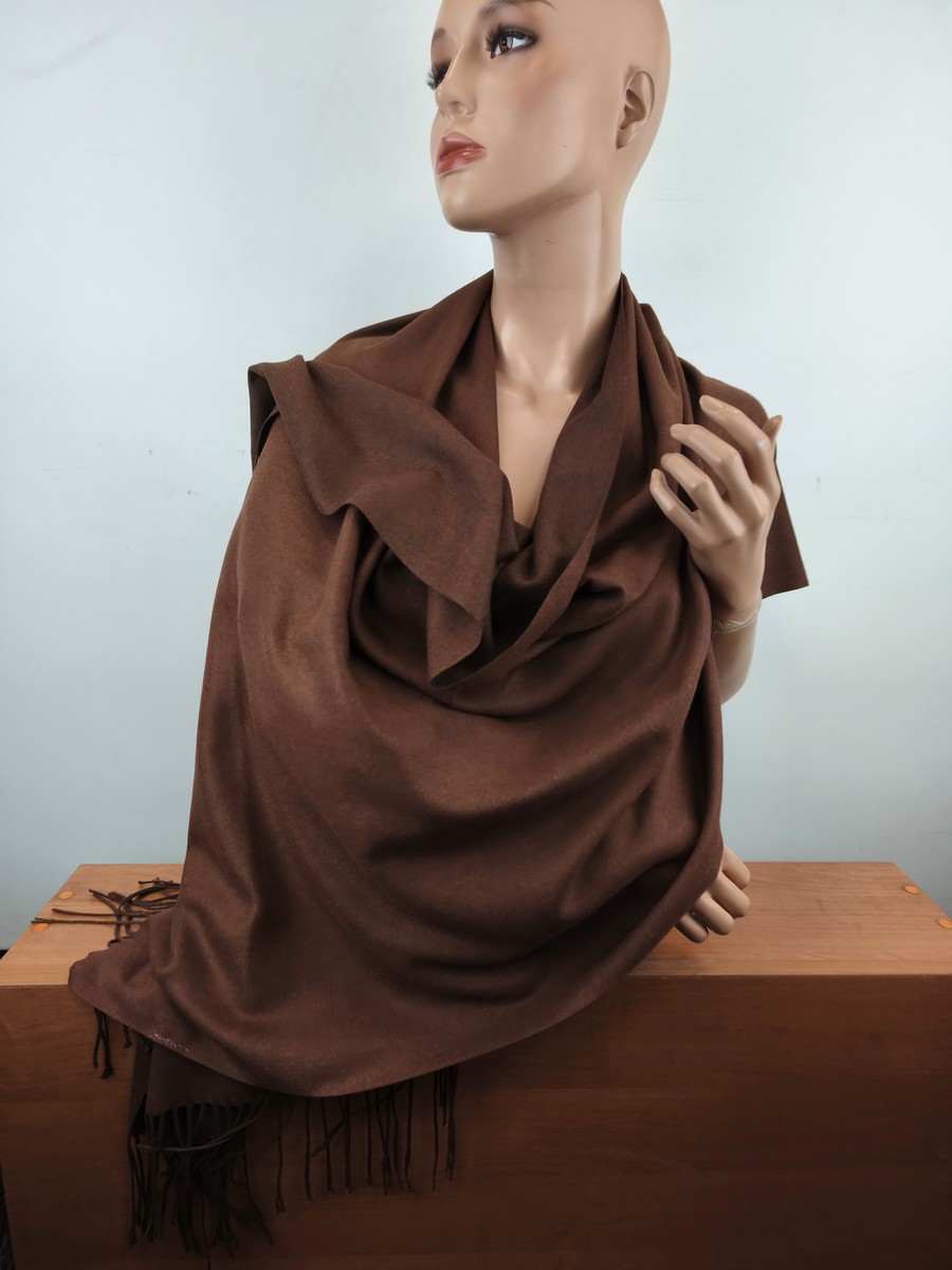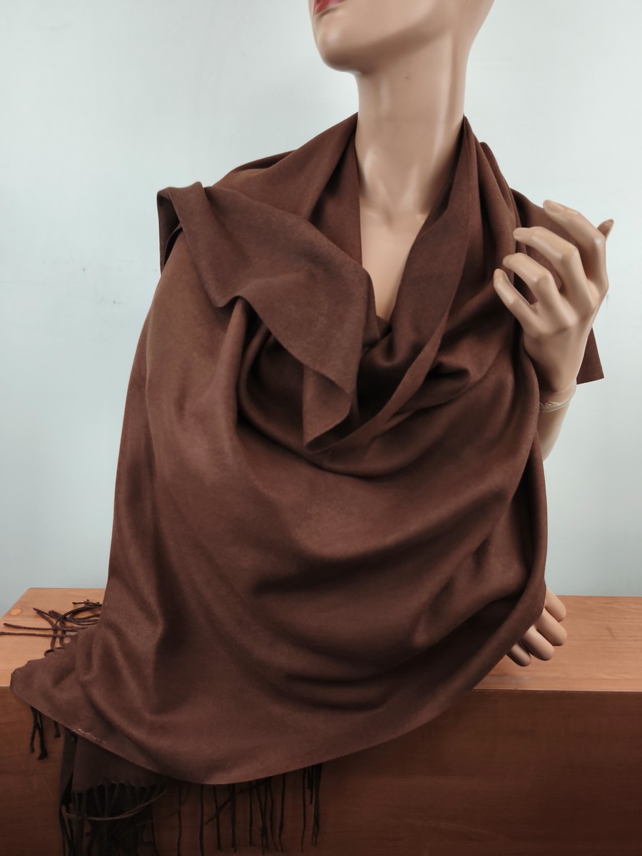 szal z kaszmirem brąz czekoladowy 2 stronny 0123701